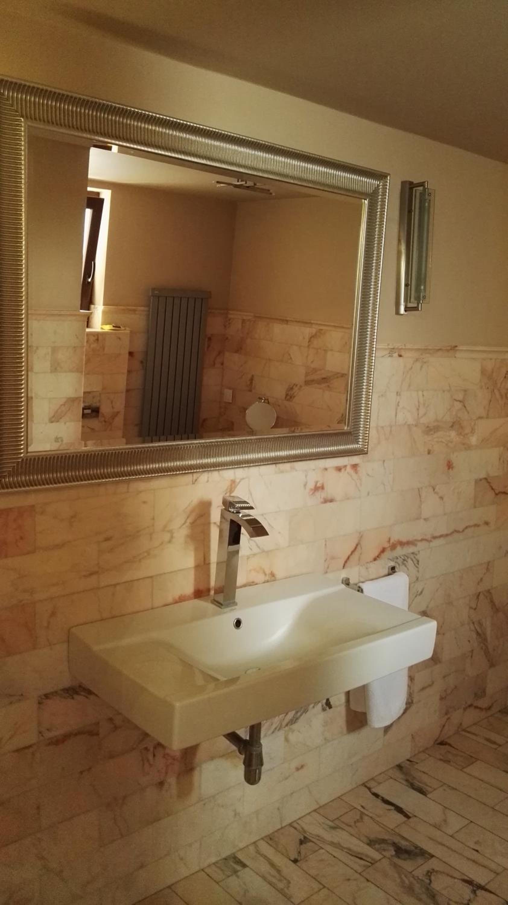 Restauracja - pyszne jedzenie i było co zjeść . Nocleg , nie mam zastrzeżeń dobrze się spało i bliżej stacji kolejowej nawet 1 minutka , czysto i zadbany pokój . Właściciele i obsługa pomocni i przemili a pomogli nam . Wygodne łóżka , łazienka czysta i zadbana . Woda ciepła. Ceny są w miarę porządku a najważniejsze że miałam w co zjeść na kolację czy na śniadanie . Wystrój hotelu i restauracji przepiękny że aż mi się chce tam powrócić na drugi raz .