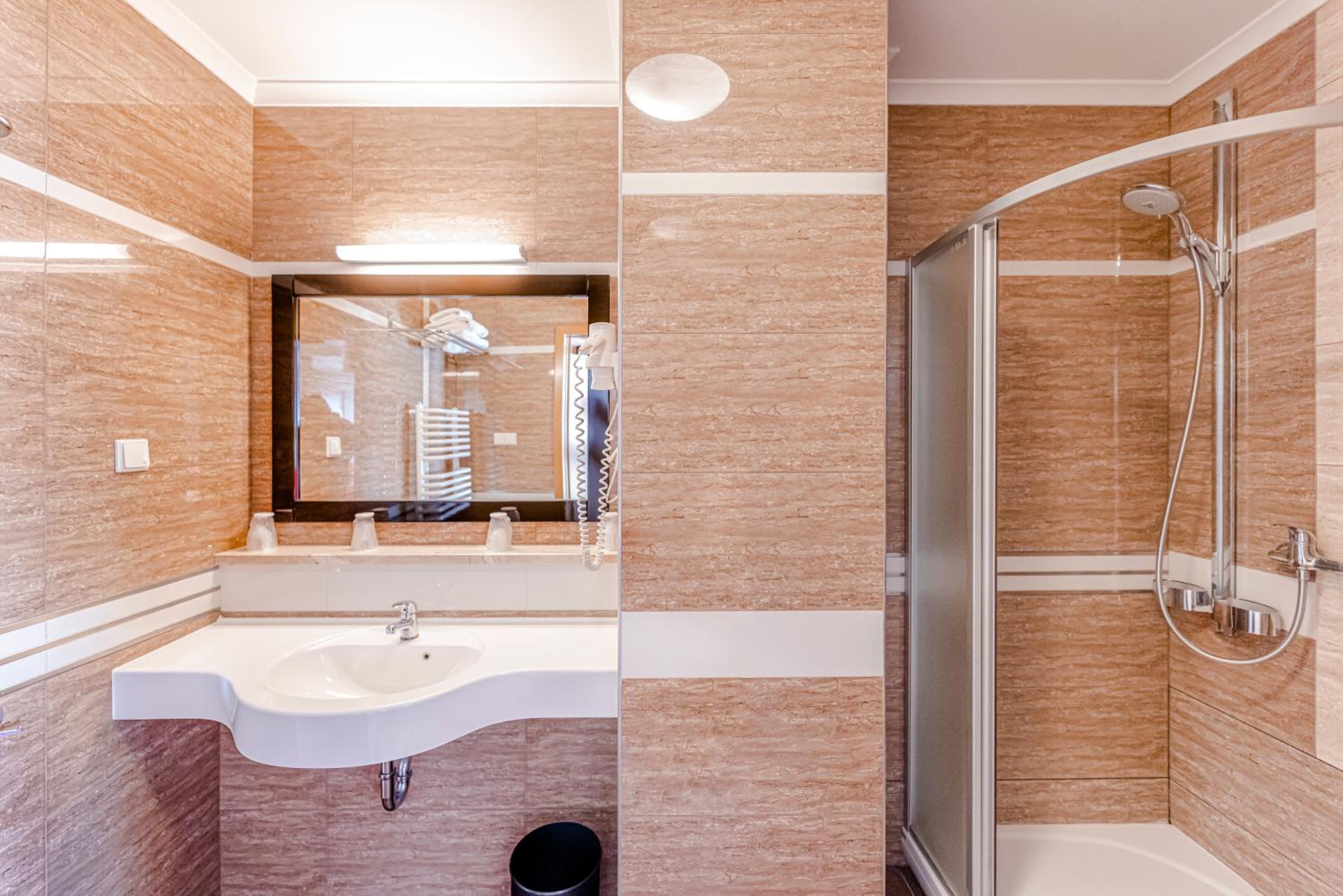Hotel Panorama offers spacious rooms with modern amenities such as free Wi-Fi, flat-screen TVs, and comfortable work desks. The property also boasts extra-long beds and stylish bathrooms with complimentary toiletries, ensuring a comfortable stay for all guests.