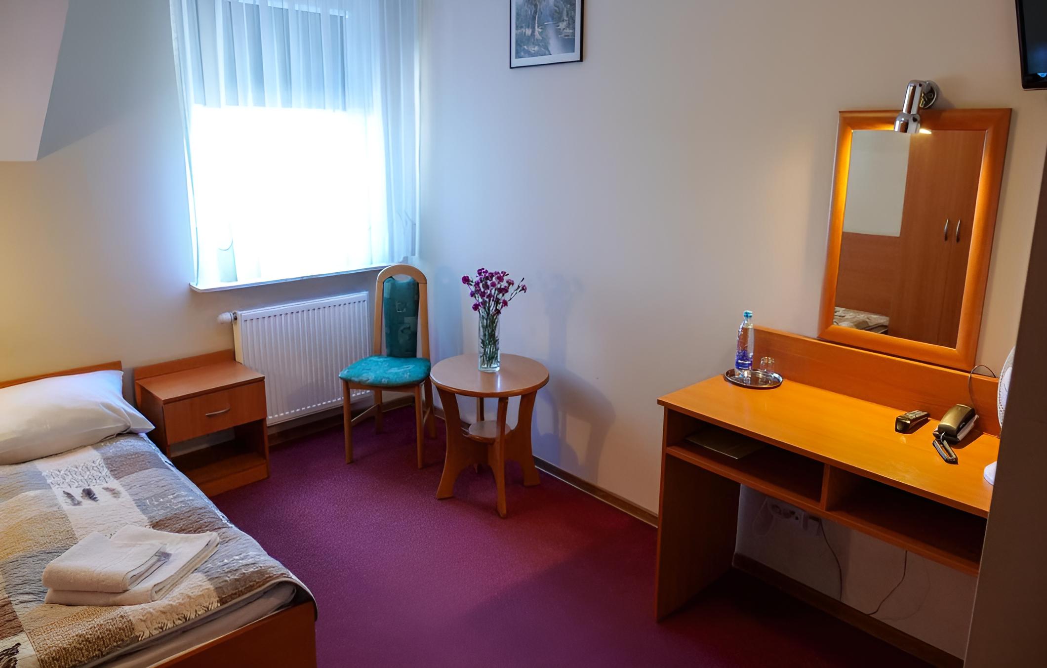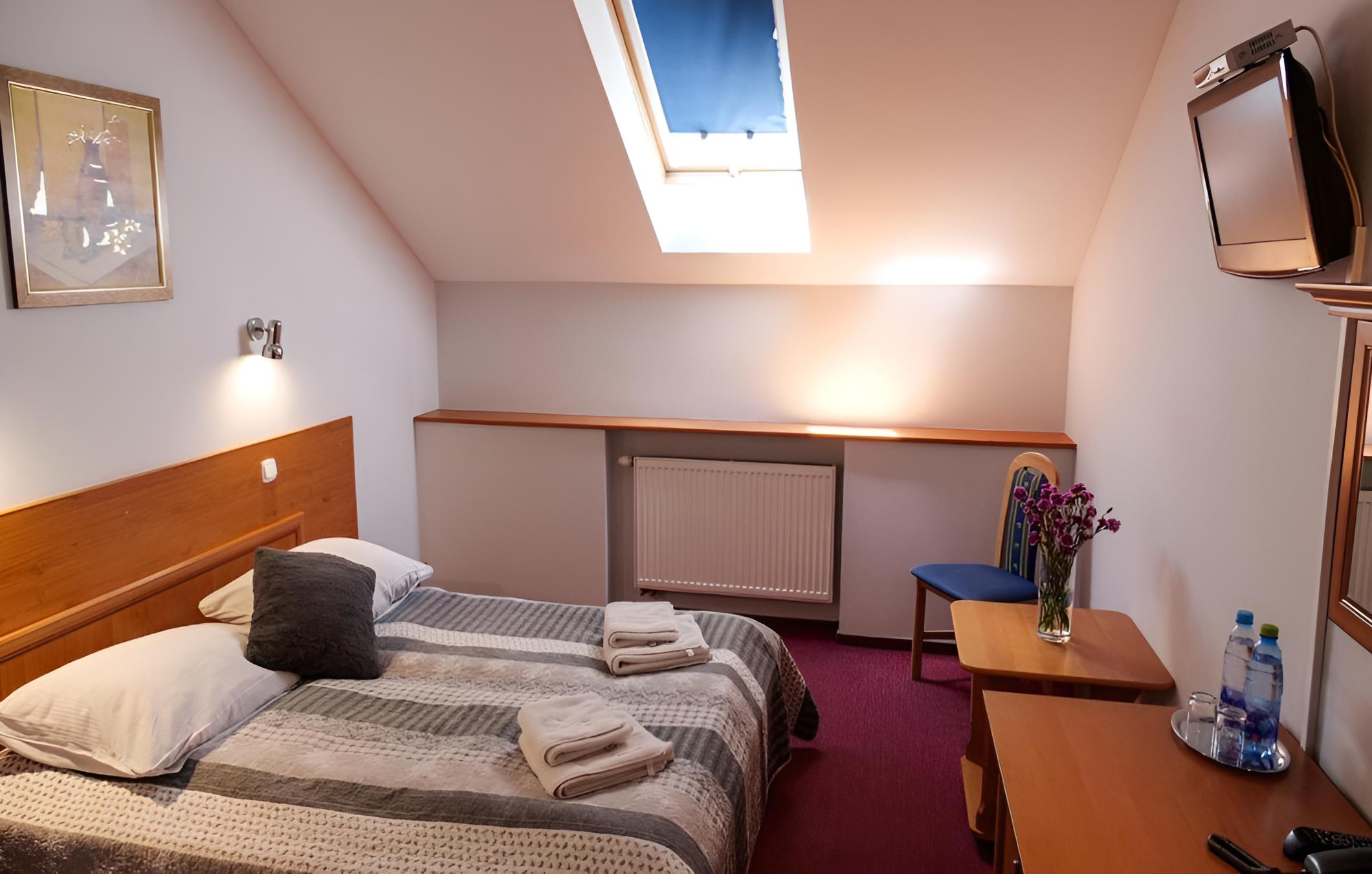 Hotel Duet in Chełm offers elegantly furnished rooms with modern amenities, including flat-screen TVs and private bathrooms. Enjoy stunning city or garden views from your room, ensuring a comfortable stay.