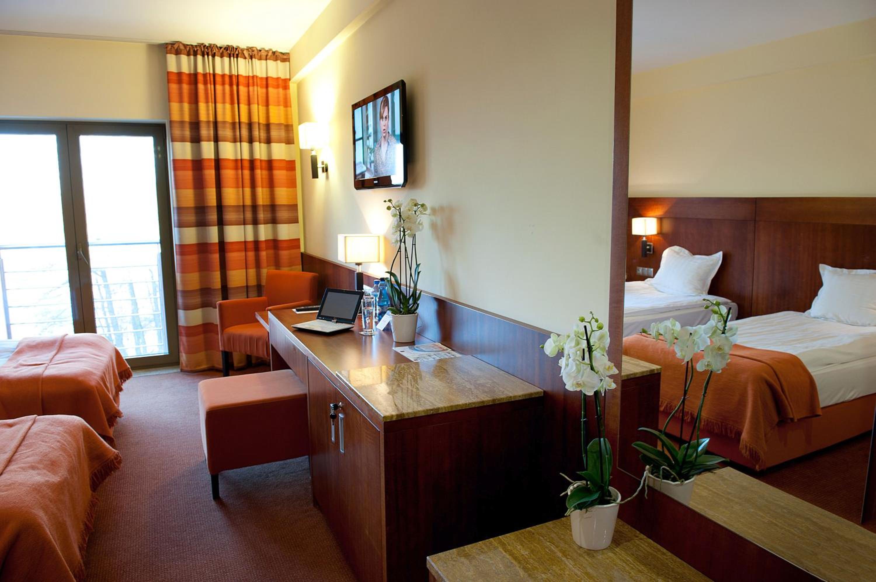 Indulge in a buffet breakfast at the Amadeus restaurant, offering Old Polish and European dishes. Unwind in the mini-spa, sauna, or salt cave arranged by the 24-hour front desk. In the evening, relax at the bar or dance floor.