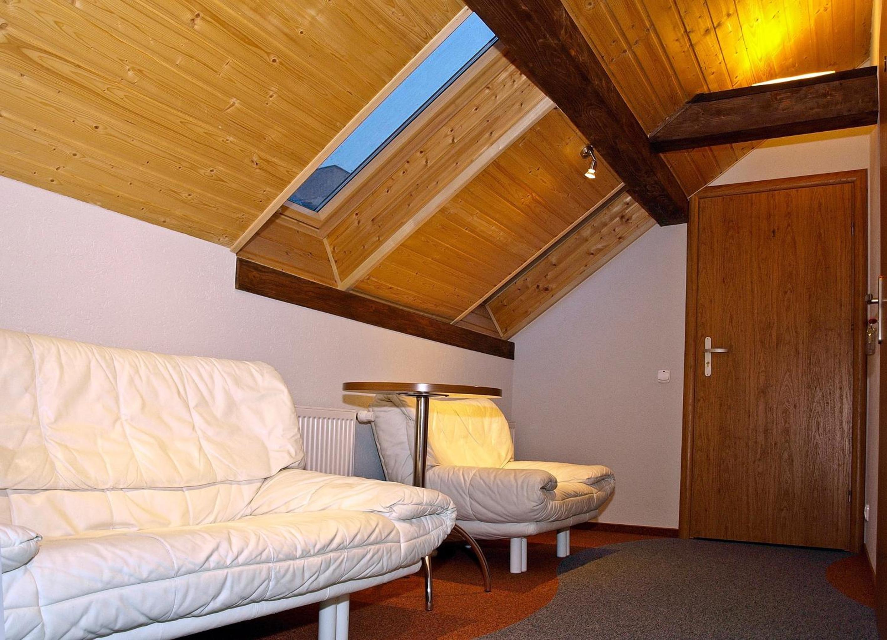 Має безкоштовну парковку. Господар привітно зустрів і показав можливі варіанти розміщення. Це була мансарда. Зручні односпальні ліжка. Гарний вид на гори. Тихі номери.