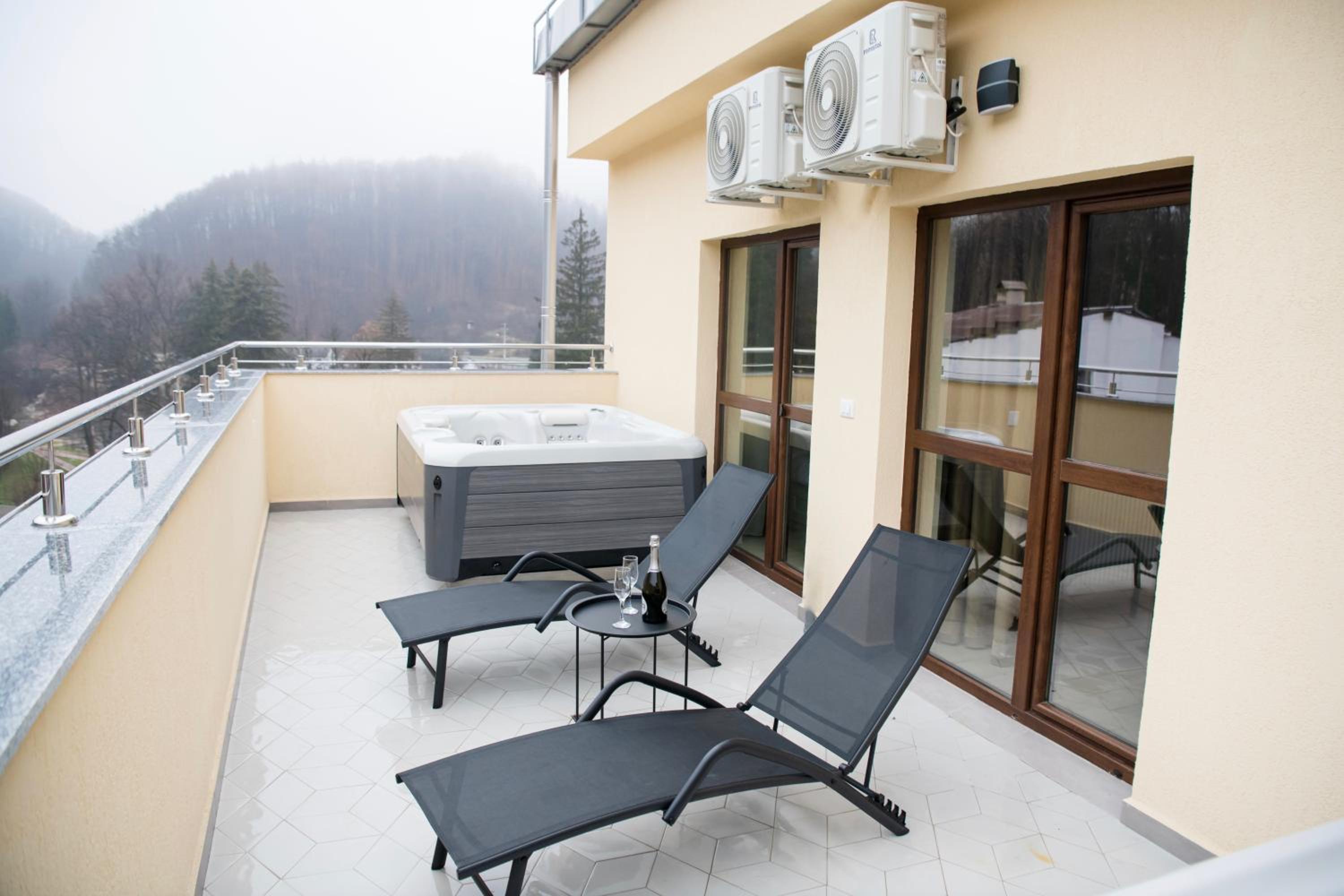 Imperial Hotel&Spa - Baile Olanesti offers a luxurious stay with well-appointed rooms featuring modern amenities like flat-screen TVs, air conditioning, and private balconies in selected rooms. The safety deposit box in each unit ensures a worry-free experience for guests.