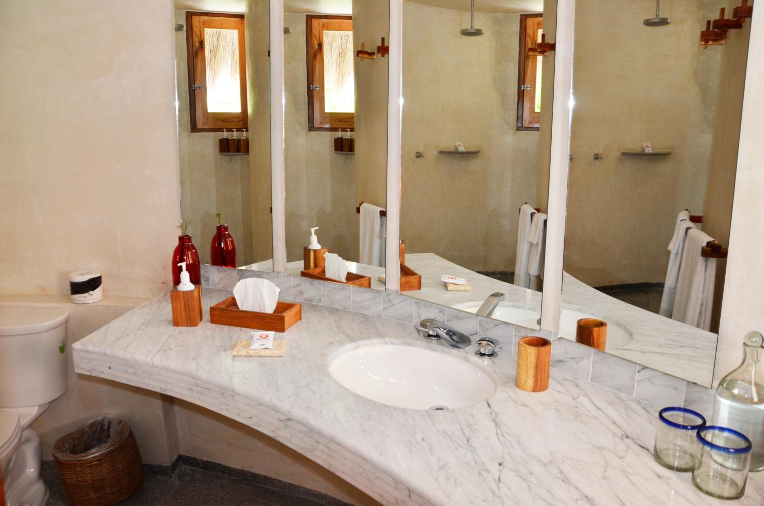 Es ist ein wunderschönes Strandhotel mit verwinkelten Wegen und versteckten Dschungel Häuschen. Sehr schoen gestaltet. Es gibt einen Pool und man kann Yoga machen morgens. Leider waren viele Braunalgen da als wir dort waren. Zum Glück hatten wir den Pool zum schwimmer. Raucher durften auf dem Balkon rauchen. Plastikflaschen dürfen nicht in den Nationalpark mitgenommen werden. Das Fruehstueck war etwas wenig, da man nur eine Sache wählen darf und es kein Buffet gibt. Wir mussten noch etwas nachzahlen als wir kamen.