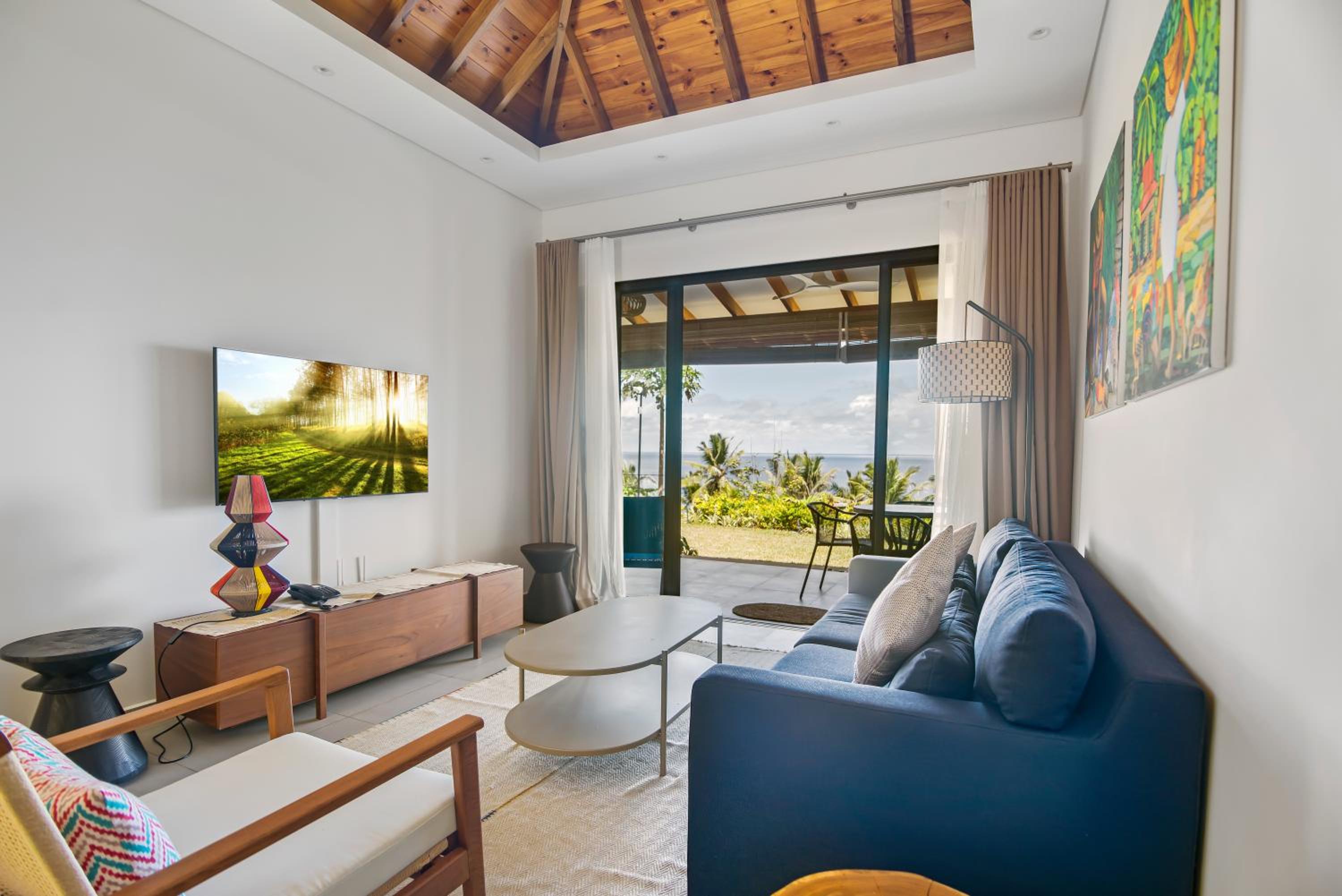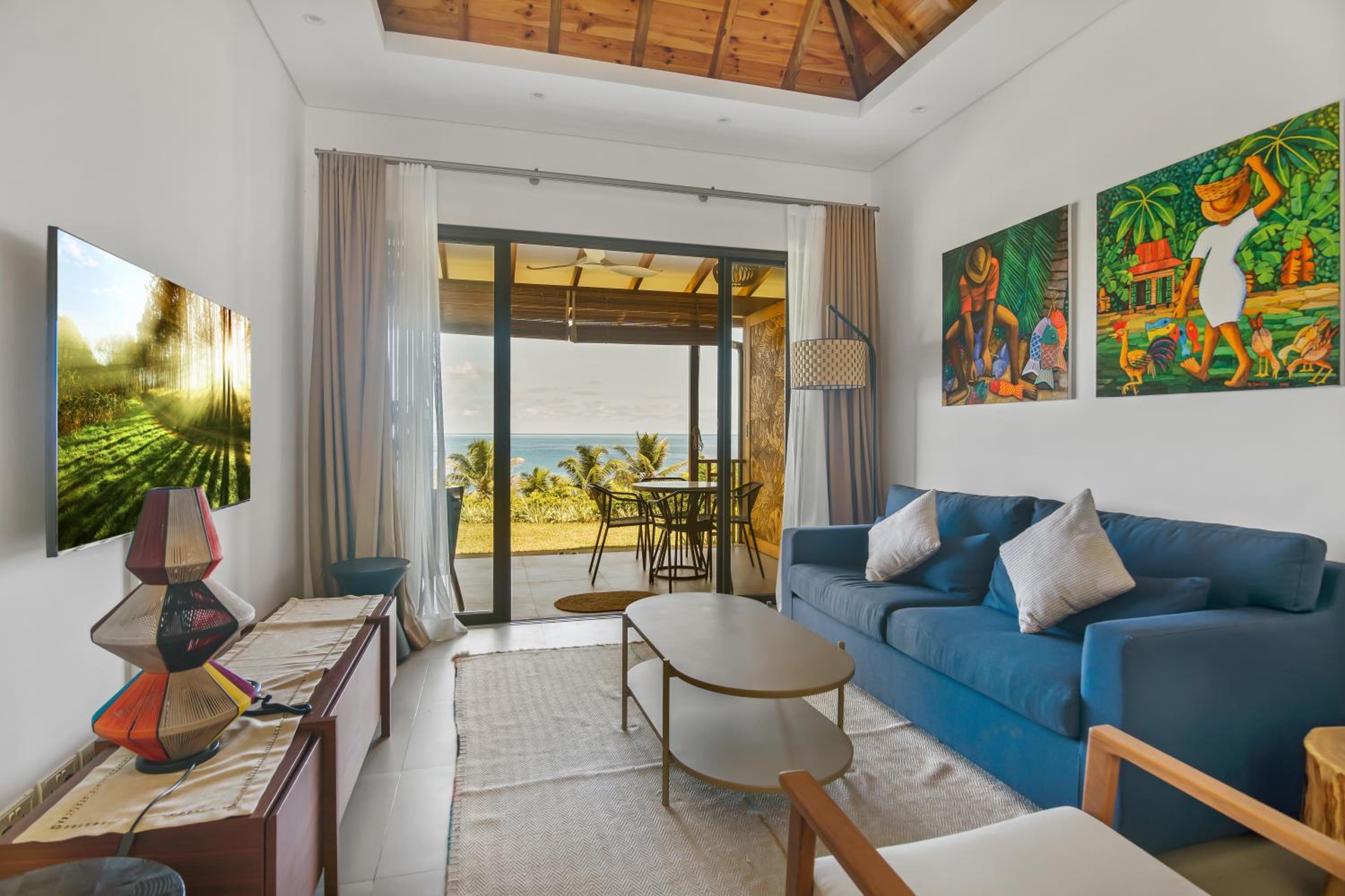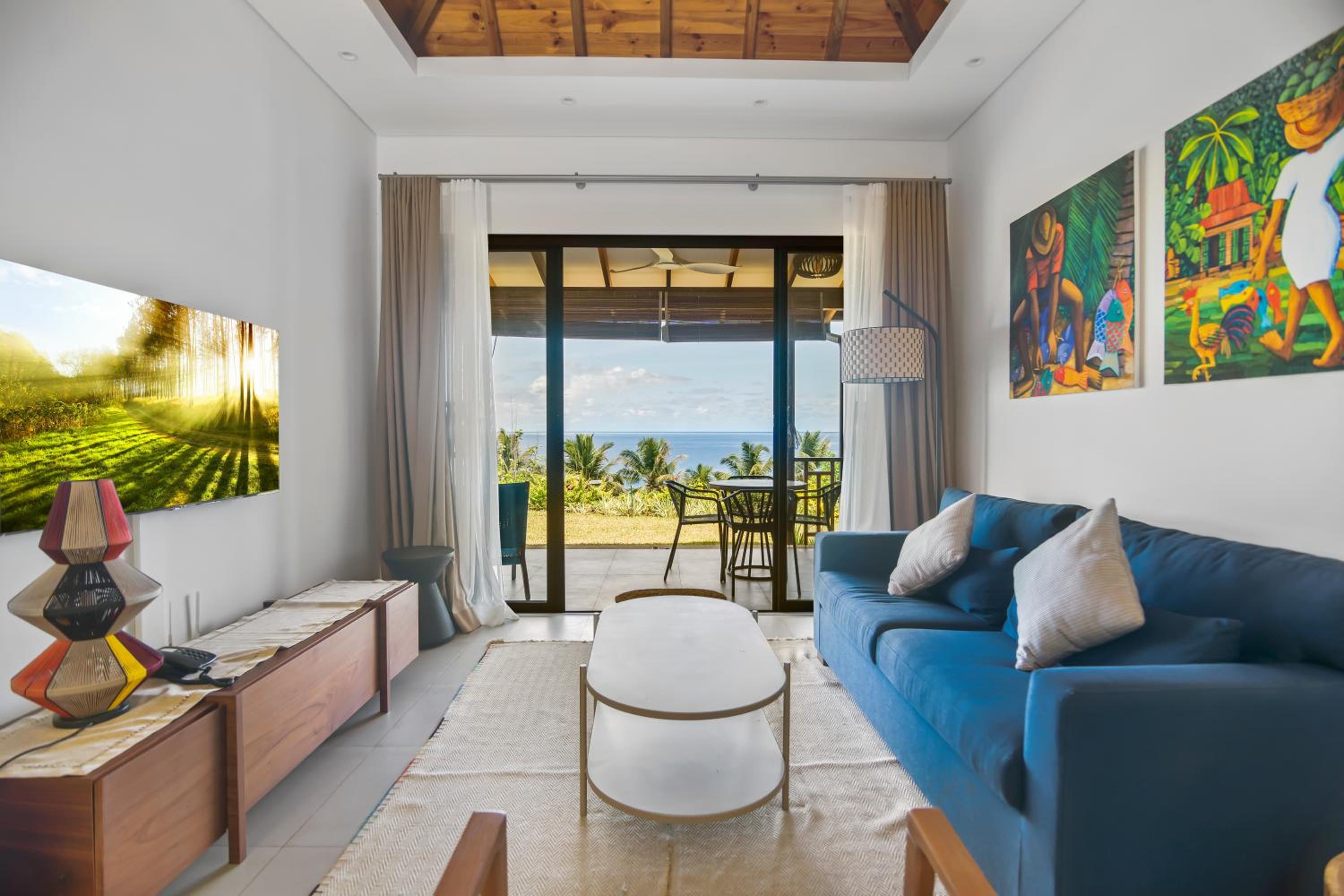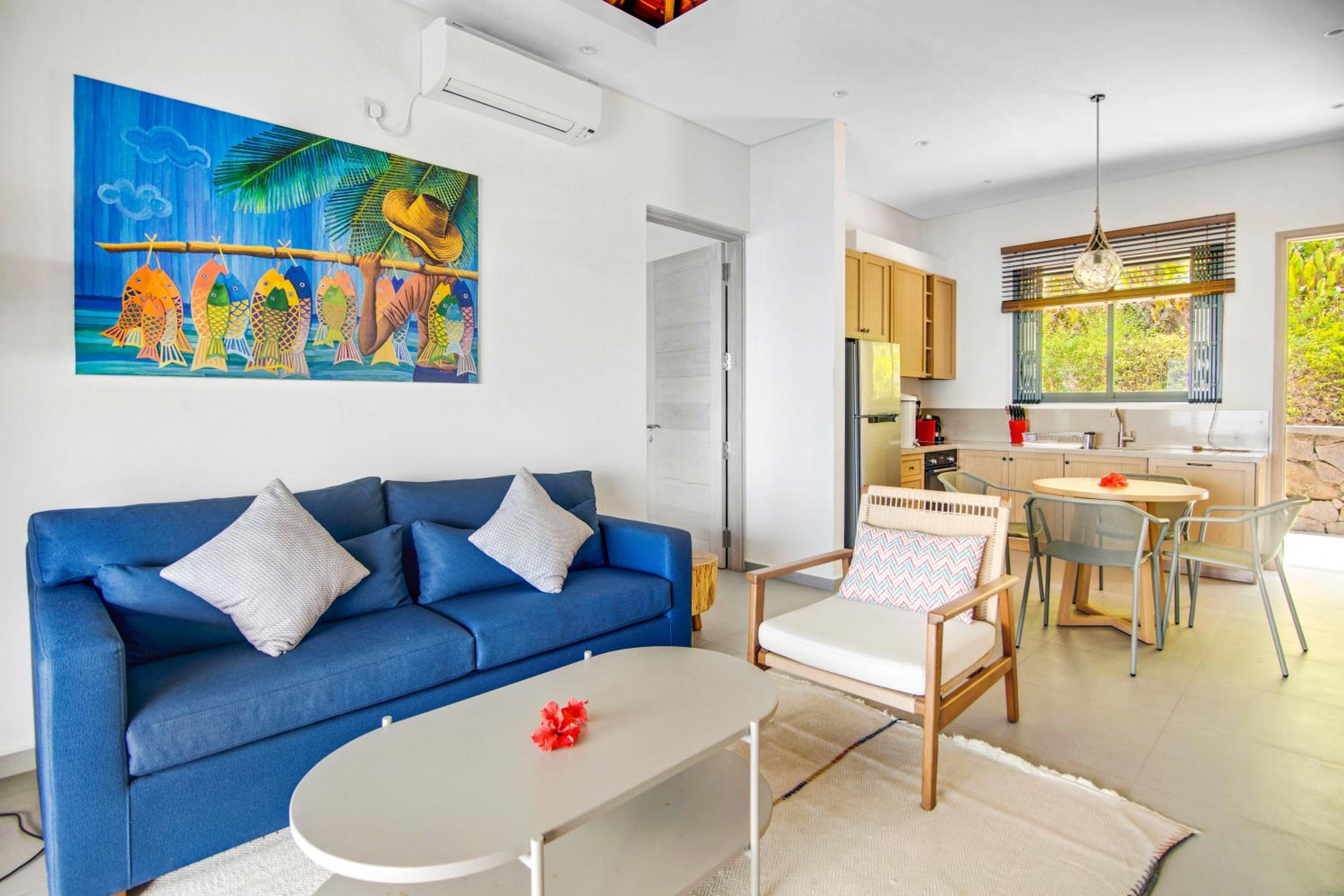 Paradise Chalets Yoga & Wellness in Takamaka offers air-conditioned rooms with modern amenities like a coffee machine, fridge, and flat-screen TV. Some units even boast pool views and balconies for a touch of luxury.
