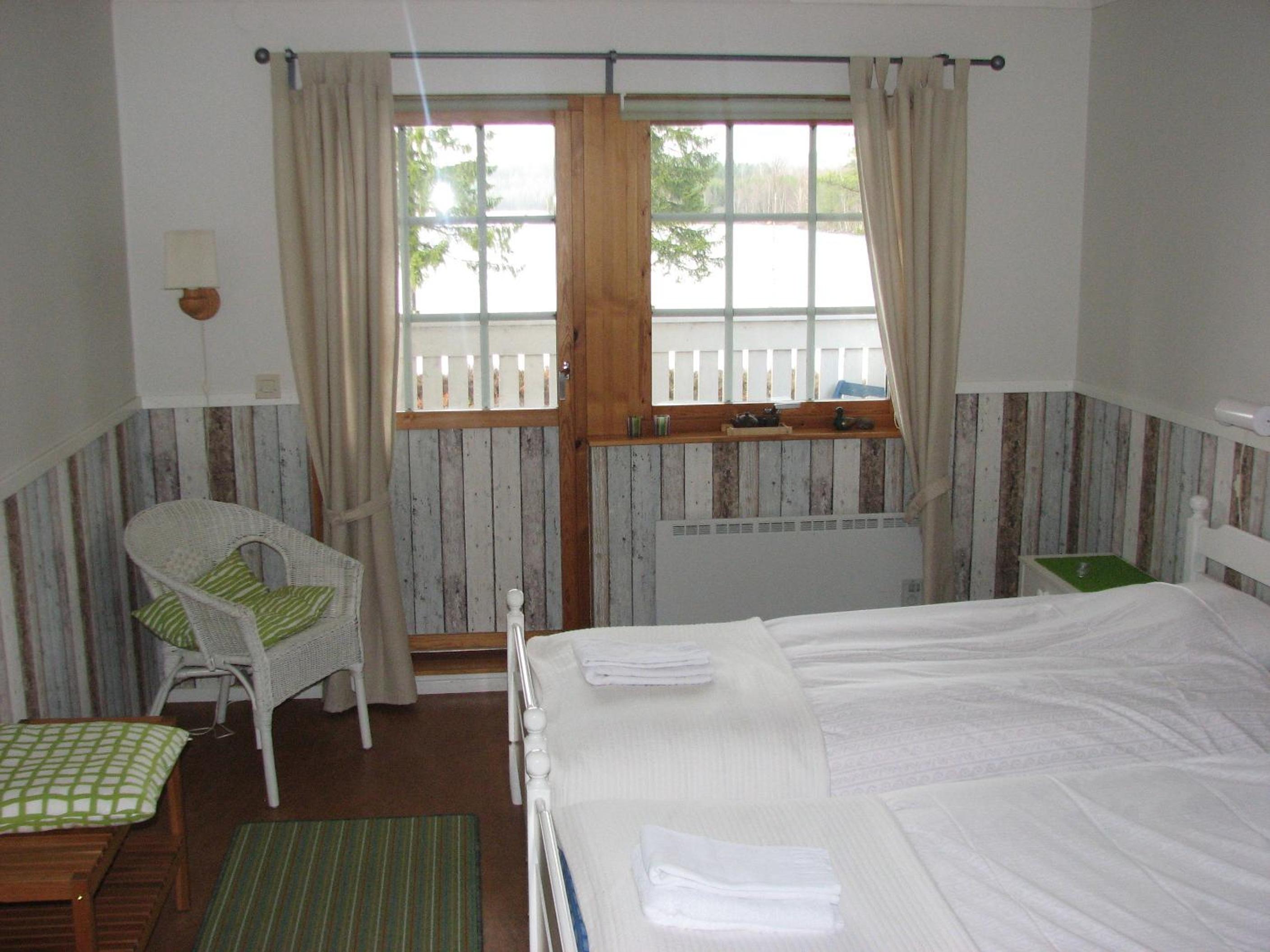 Supertrevlig service! Läget helt fantastiskt vid sjön. Vi satt ute på kvällen på balkongen och drack deras egengjorda calvadal o tittade ut över sjön, jättemysigt. Tog ett dopp i sjön innan frukost. Frukosten hade lagom mycket att bjuda på. Vi bodde nära Bengtsfors där vi skulle åka dressin,smidigt!