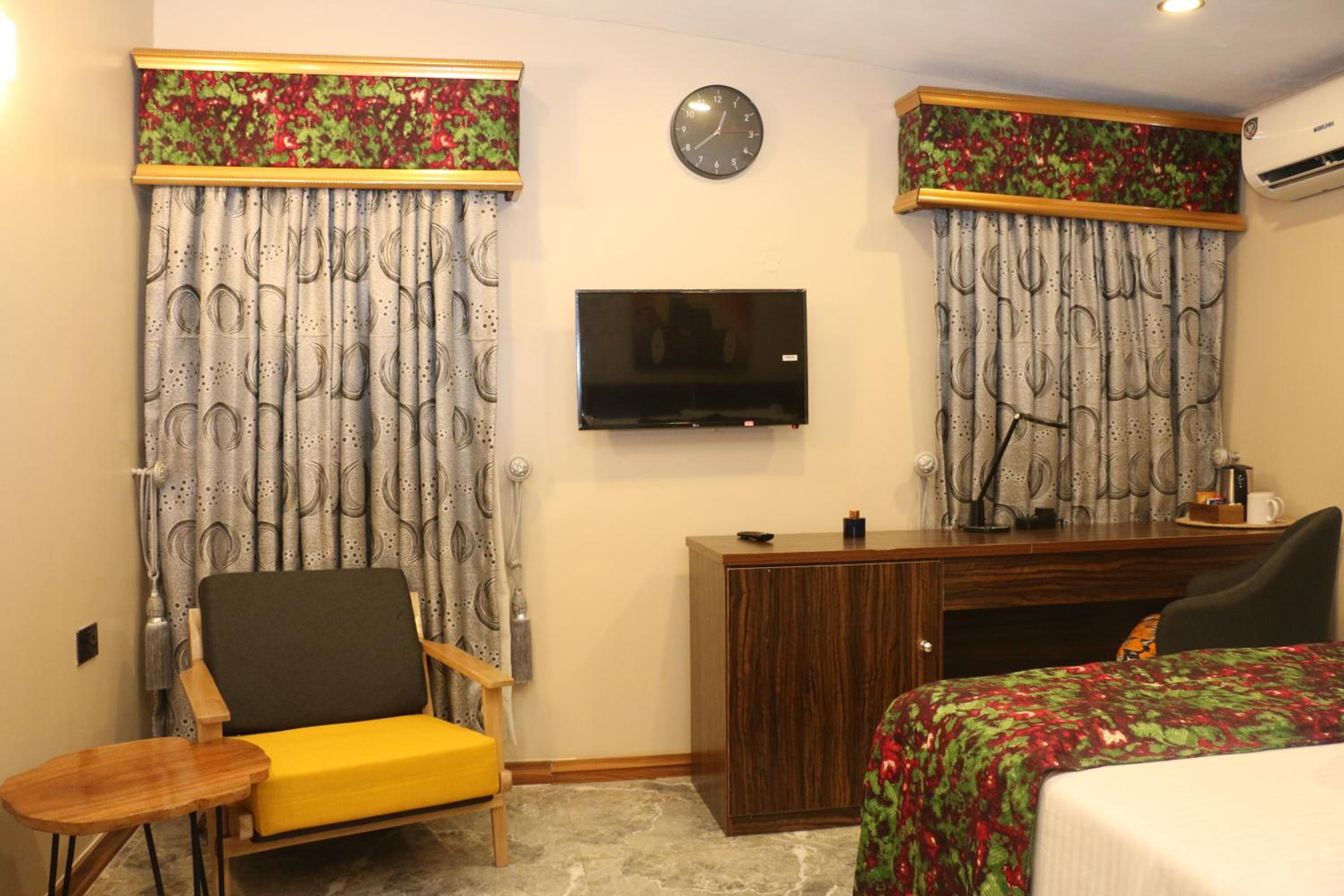 Saire Hotels Ibadan, located just 11 km from IITA Forest Reserve, offers a luxurious stay with air-conditioned rooms, modern amenities, and a welcoming atmosphere. Each room is equipped with a desk, kettle, safety deposit box, flat-screen TV, and a private bathroom for utmost comfort.