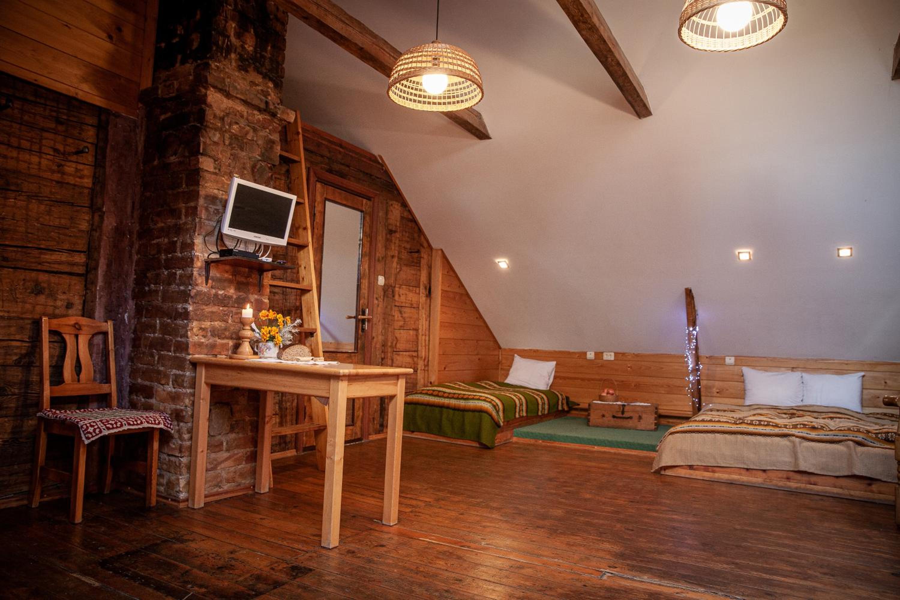 Duże podwórko, urok skansenu, czysta pościel i ręczniki.
