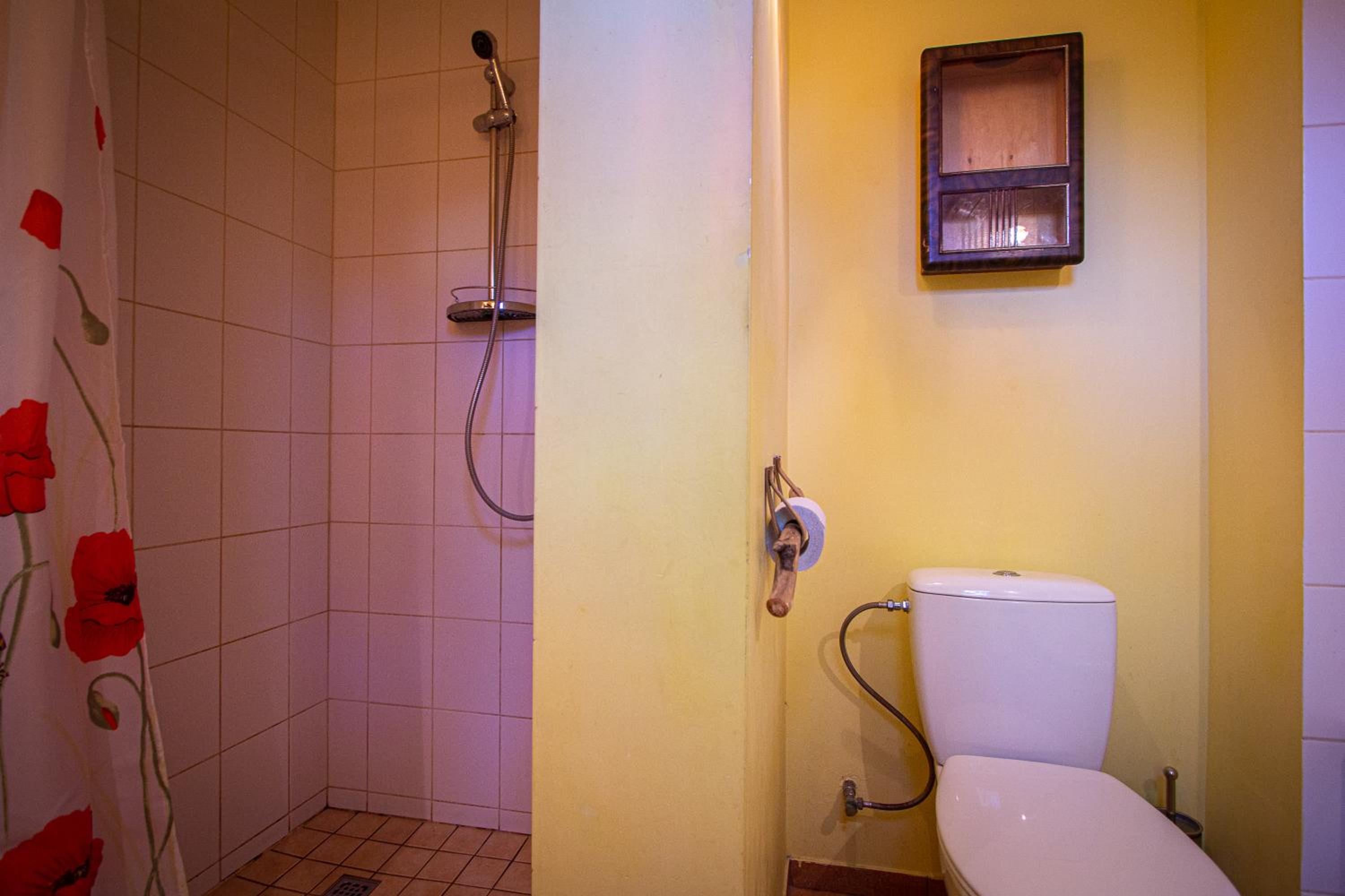 В комнате тонкая стеклянная дверь в туалет, которая хорошо просвечивает. Пришлось навесить на нее полотенце, чтобы было комфортнее. Также в комнате можно было бы добавить несколько крючков для одежды: если приедете больше, чем на несколько дней, может не хватать места для одежды.