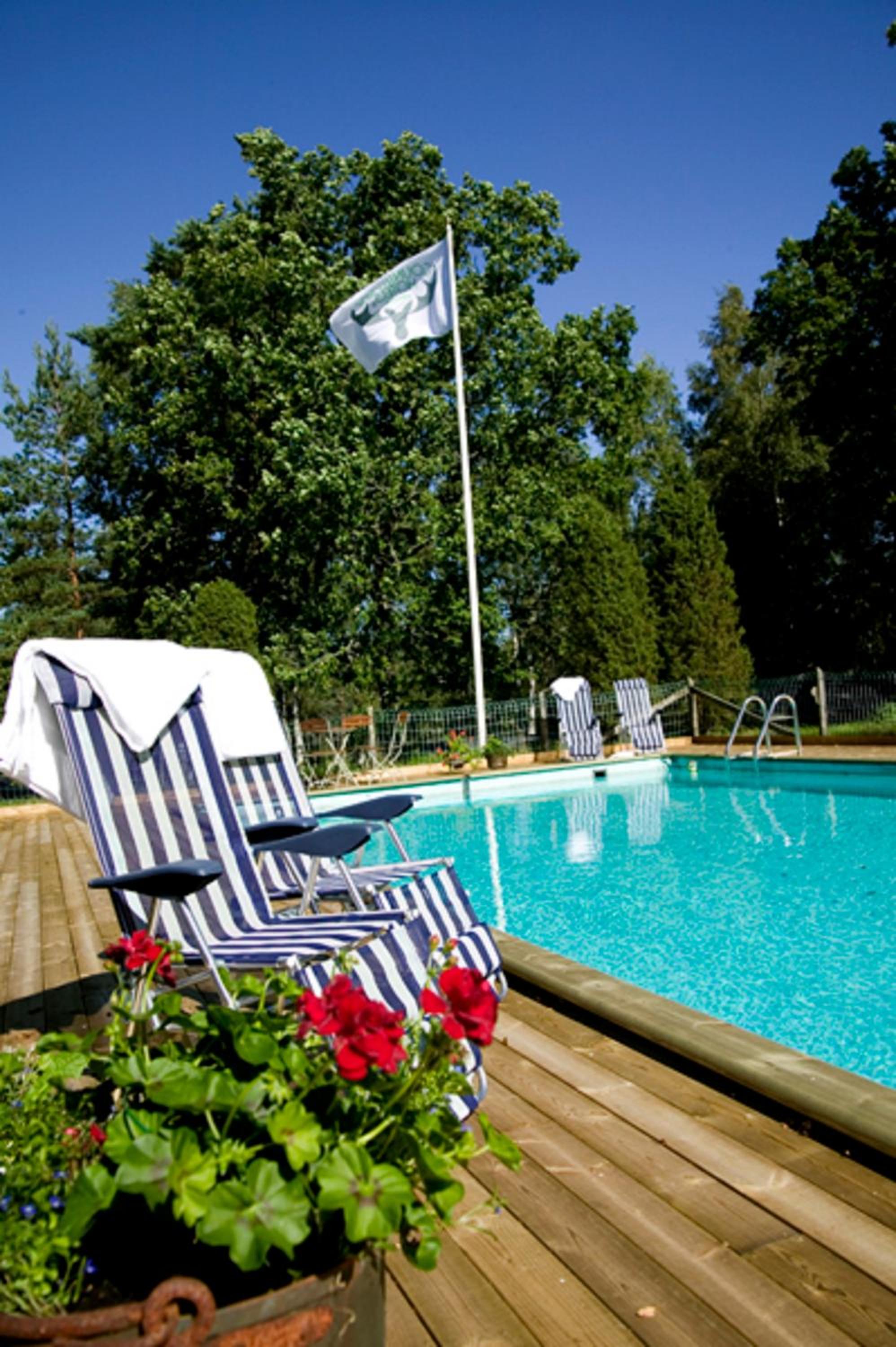 Unwind in the sauna or take a refreshing dip in the outdoor pool. Enjoy the cozy rooms and wooden cottages, each equipped with modern amenities for your comfort.