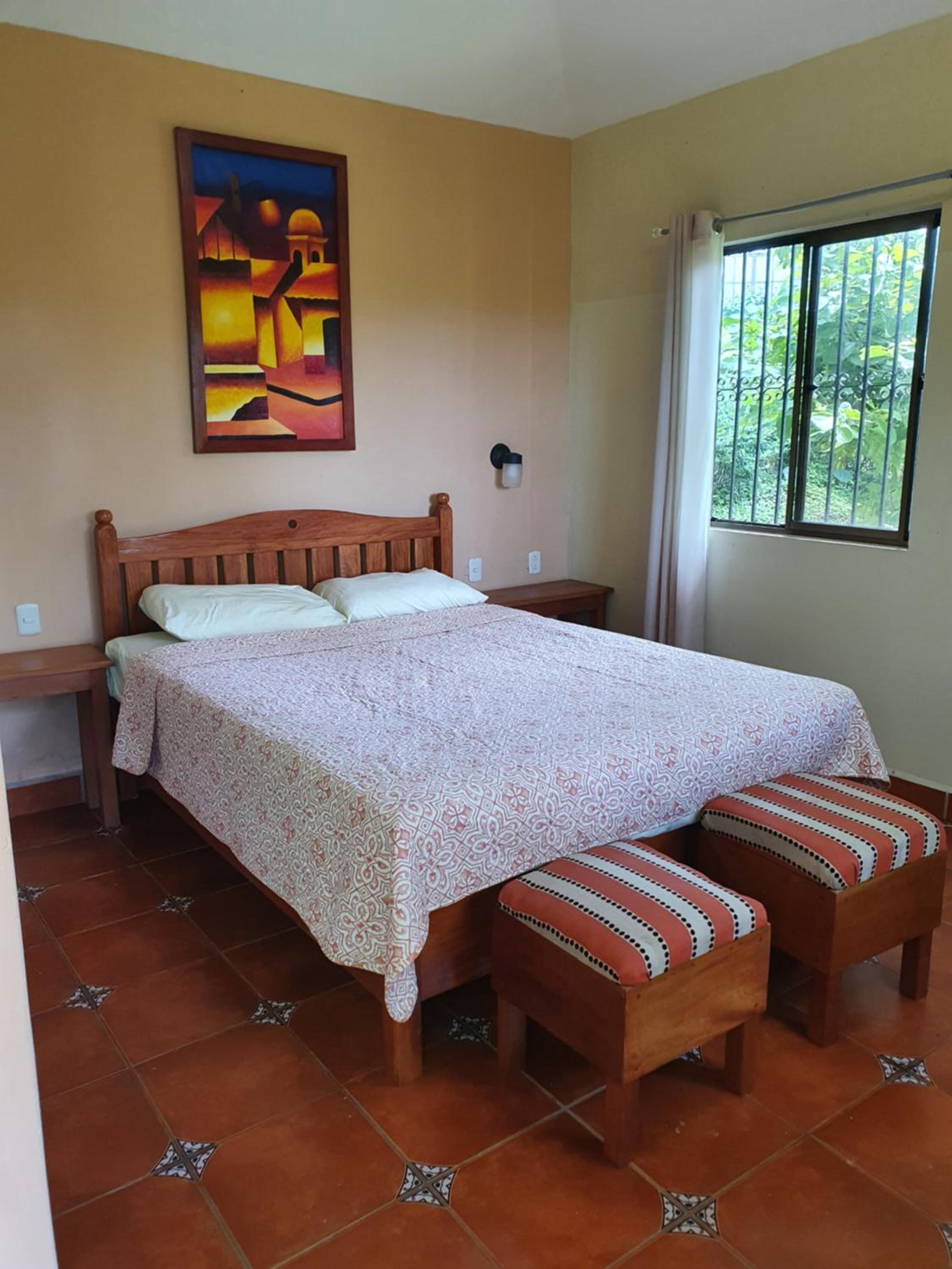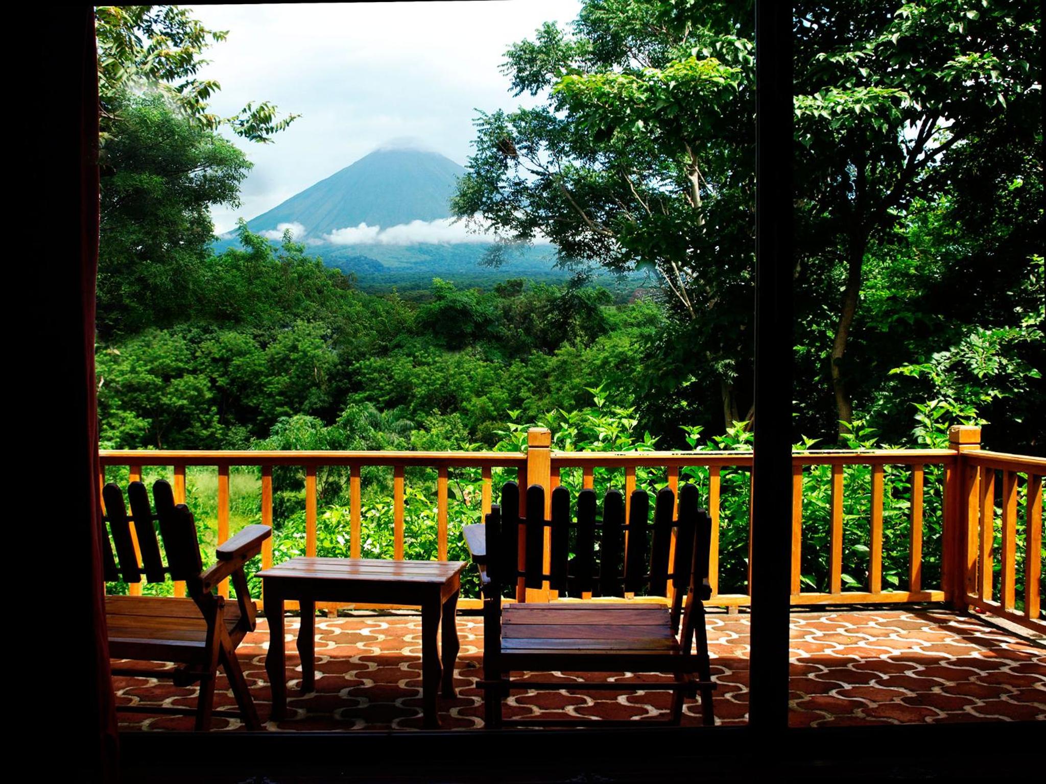 One of our rooms had 2 beds. couple rocking chairs, terrace, and a stellar view of the volcano. Highly recommended. We ate breakfast and dinner there most days (very convenient with good prices). The customer service provided by Lucy as well as owner Carlos was superb. We felt well looked after.