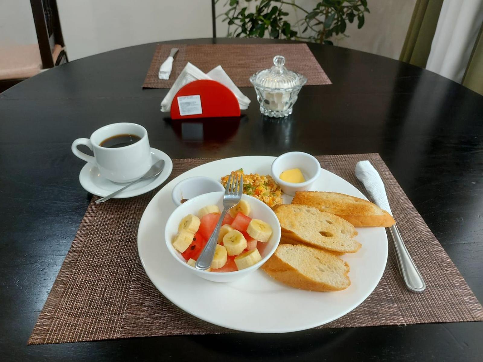Hôtel propre, style clinique sans âme. Personnel réservé, mais serviable. L’hôtel est situé sur le bord d’une route où la circulation est dense et difficile à traverser comme piéton. Il est à distance de marche du centre. Très apprécié. Déjeuner standard de ceux que l’on retrouvent dans les autres hôtels au Nicaragua: gallo Pinto , œufs brouillés et pain ou crêpes avec bol de fruits ou encore bol de céréales granula avec yogourt et fruits.
