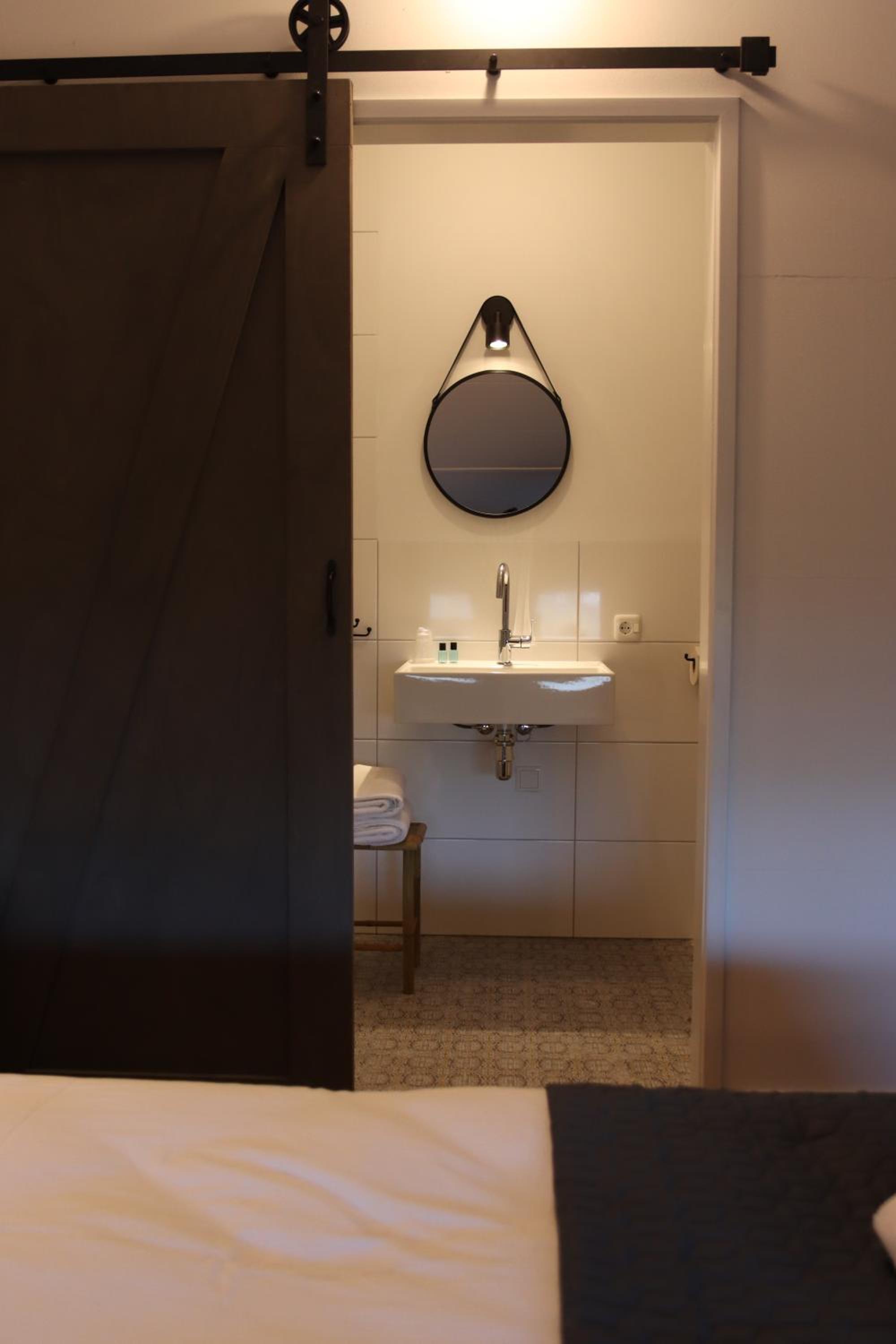 Unique accomodation with rooms built on the side of a pig barn. You can watch the happy pigs from the common area and hallway, but don't worry, there's no smell or noise. Spacious room with modern bathroom, AC and very comfortable beds. Friendly owners and staff. Located in quite nature, but not far from Eindhoven. Can definitely recommend!