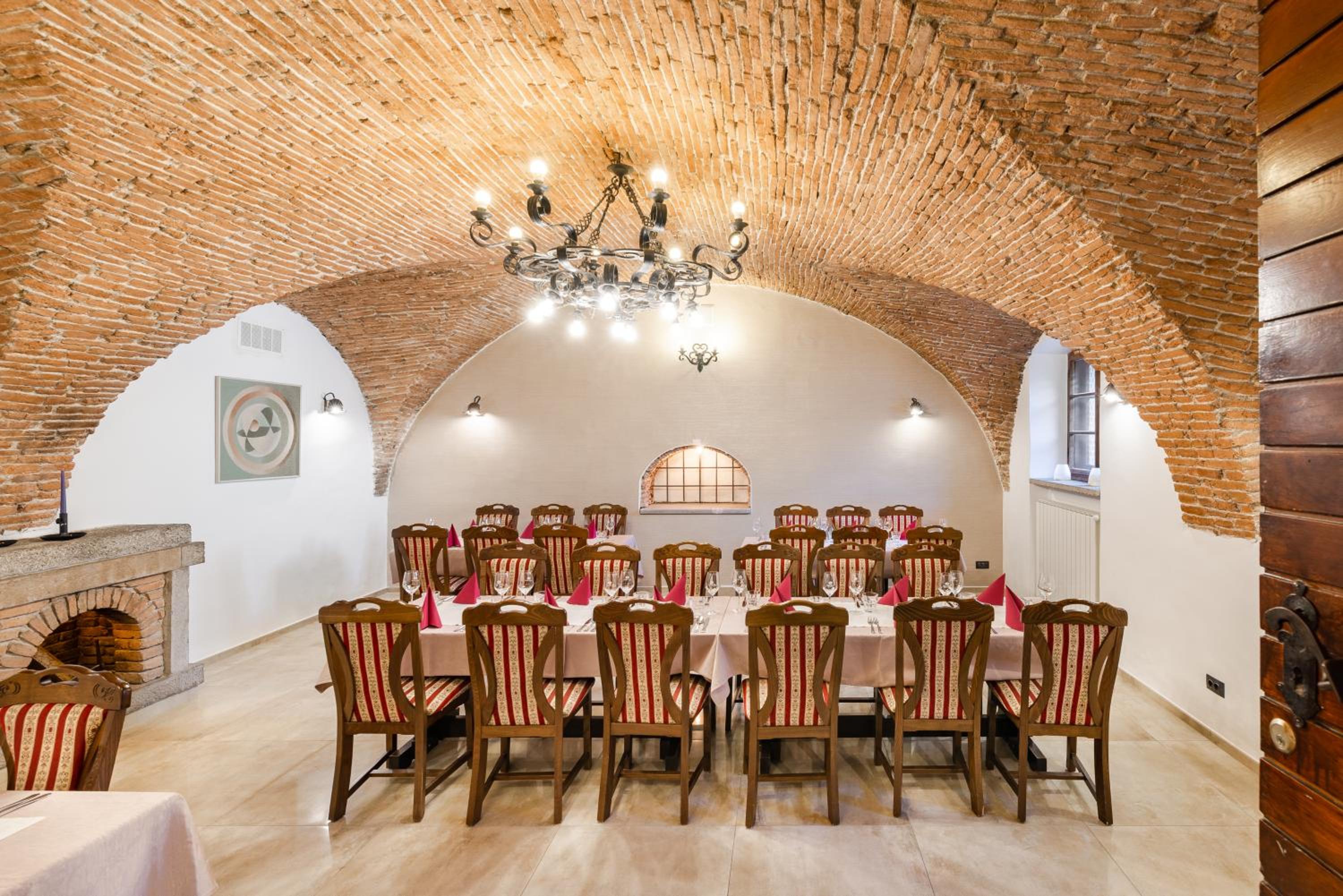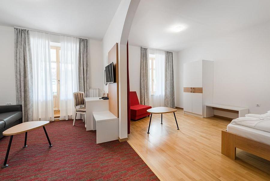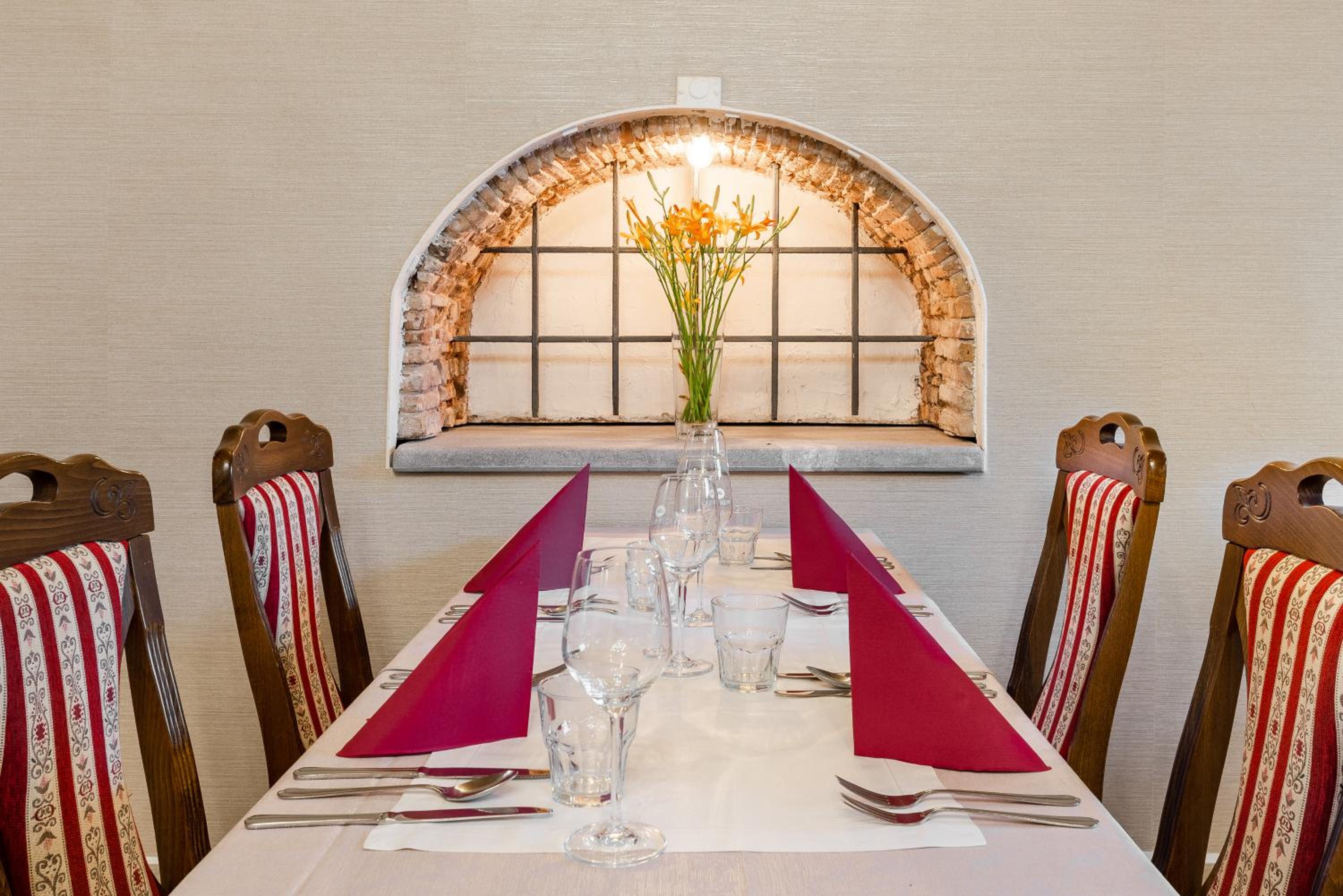 Hotel Dvorec, nestled in the heart of Tolmin, boasts a rich history and modern amenities. The 17th-century arched wine cellar adds a touch of old-world charm, while the free WiFi and flat-screen TVs ensure a comfortable stay.