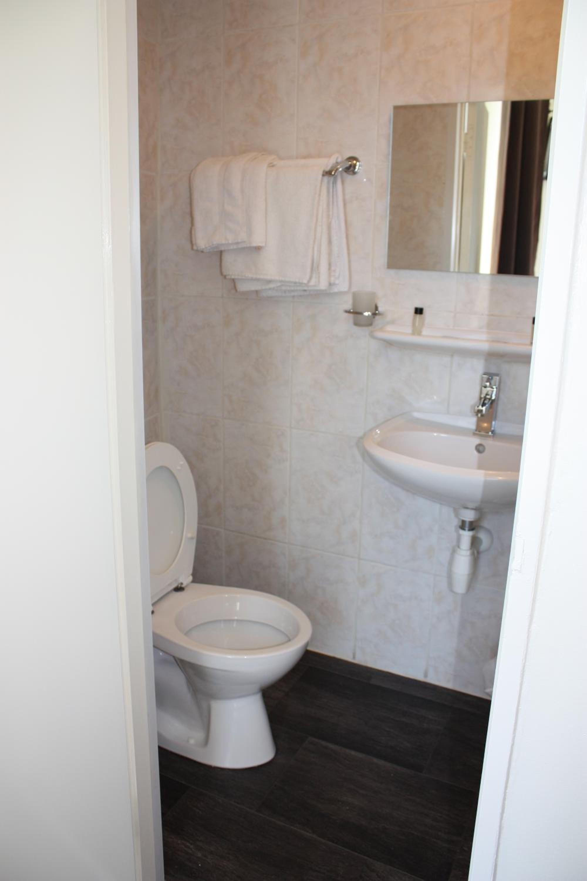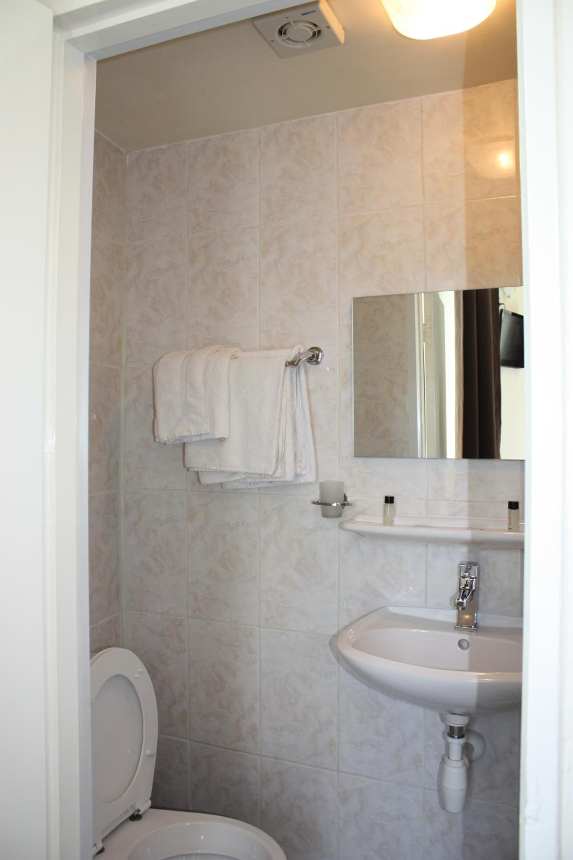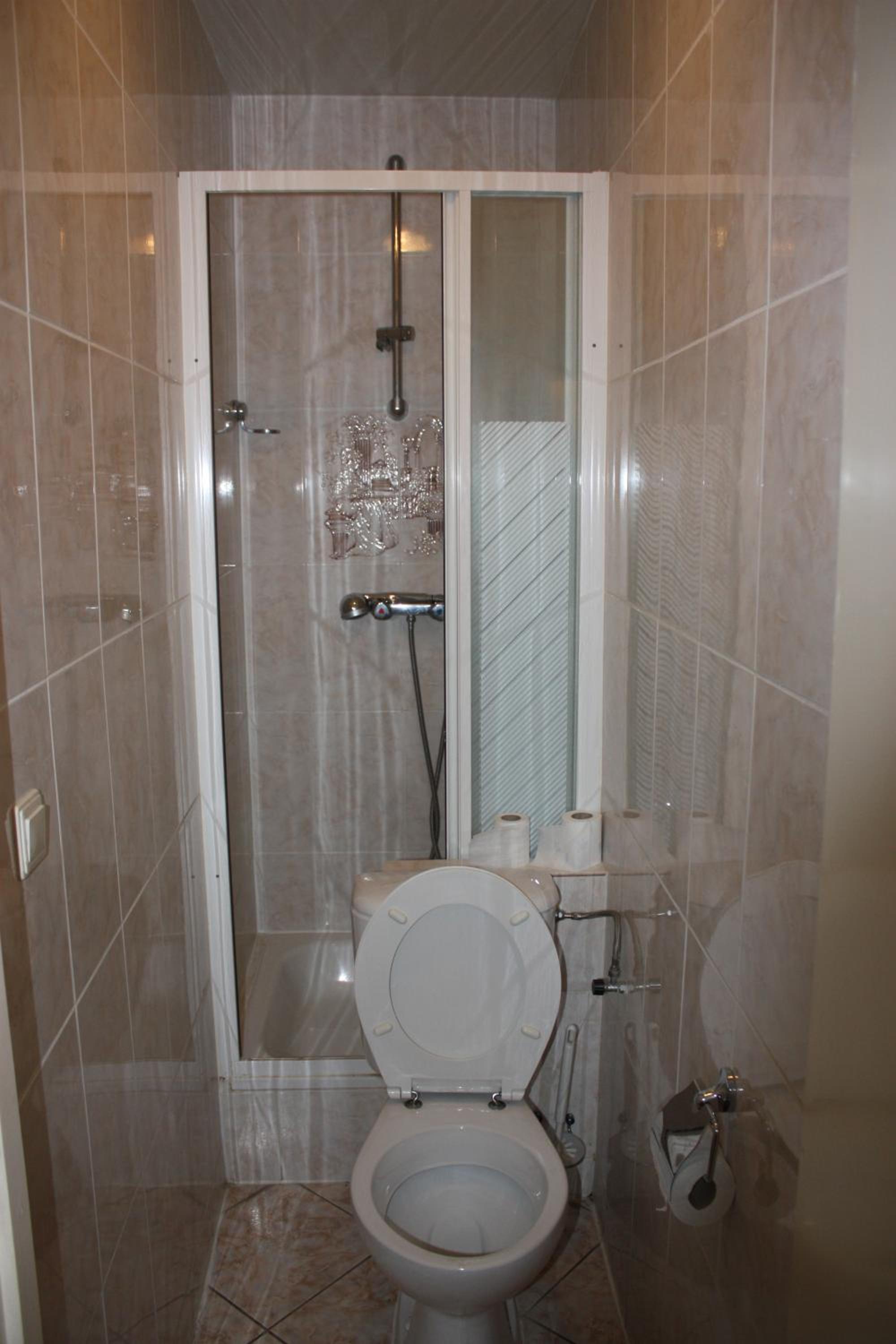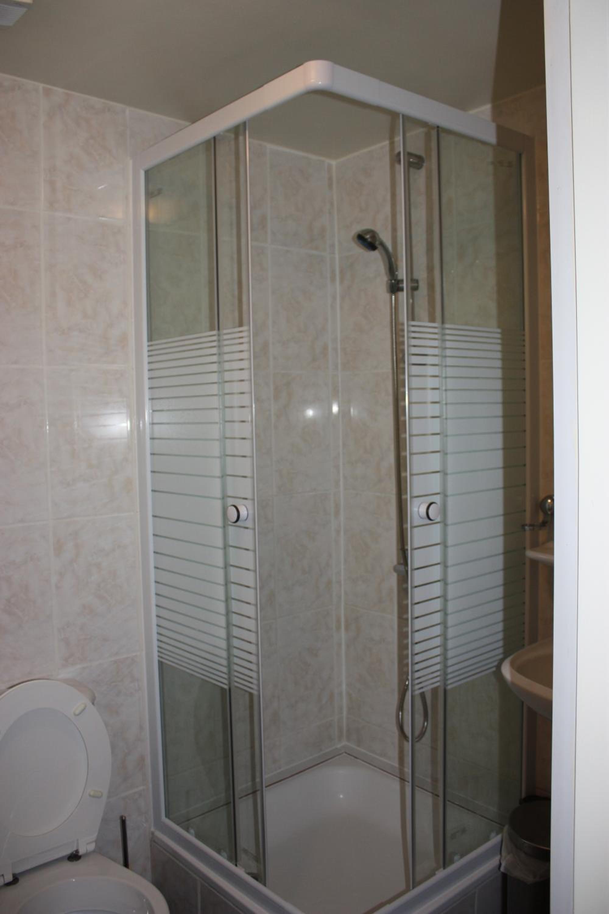 Heel erg basic en de douche was achter de wc. De wasbak was onafsluitbaar en je was zichtbaar vanuit de gang. Geen privacy.