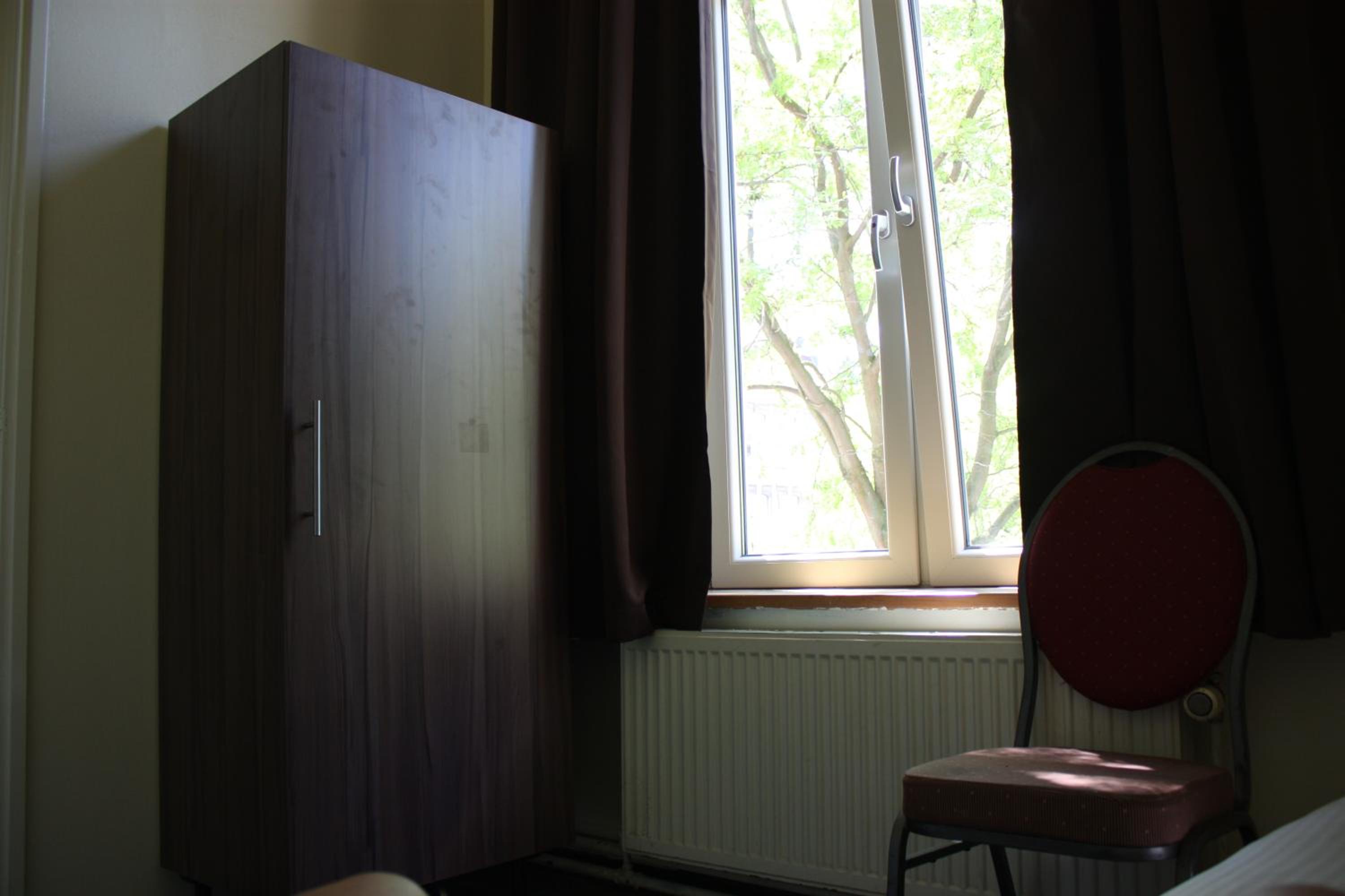 Het was een vrij warme kamer, dus het raam moest echt wel open bij ons.