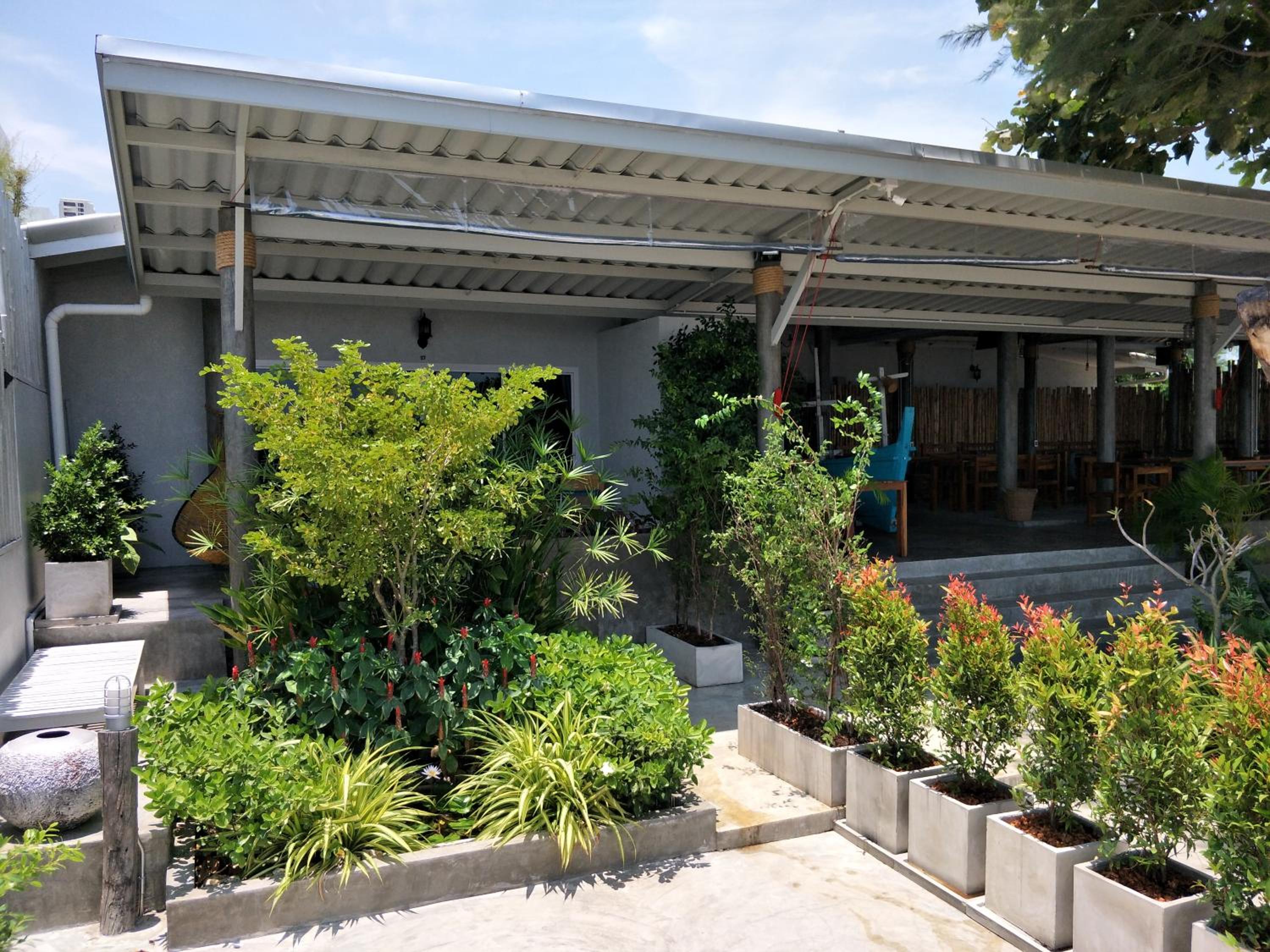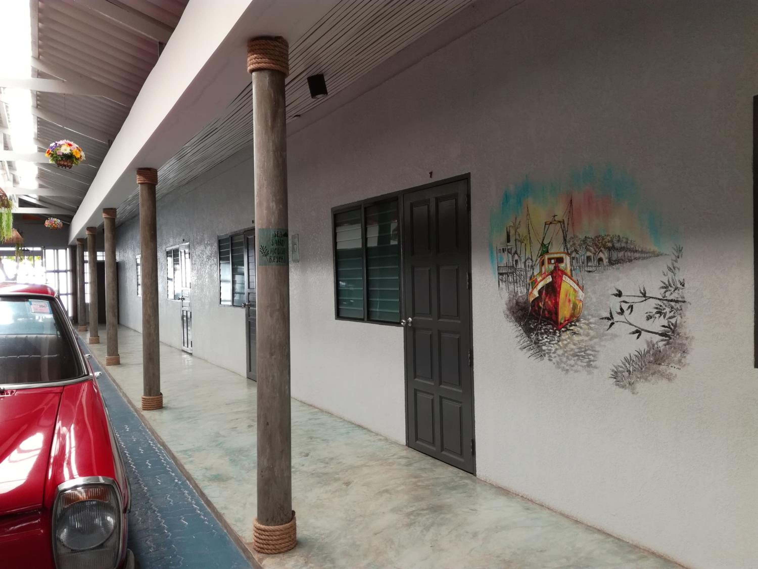 Sea Sand House Resort boasts an inviting outdoor swimming pool and a lush garden, providing a serene environment for guests to relax and unwind.