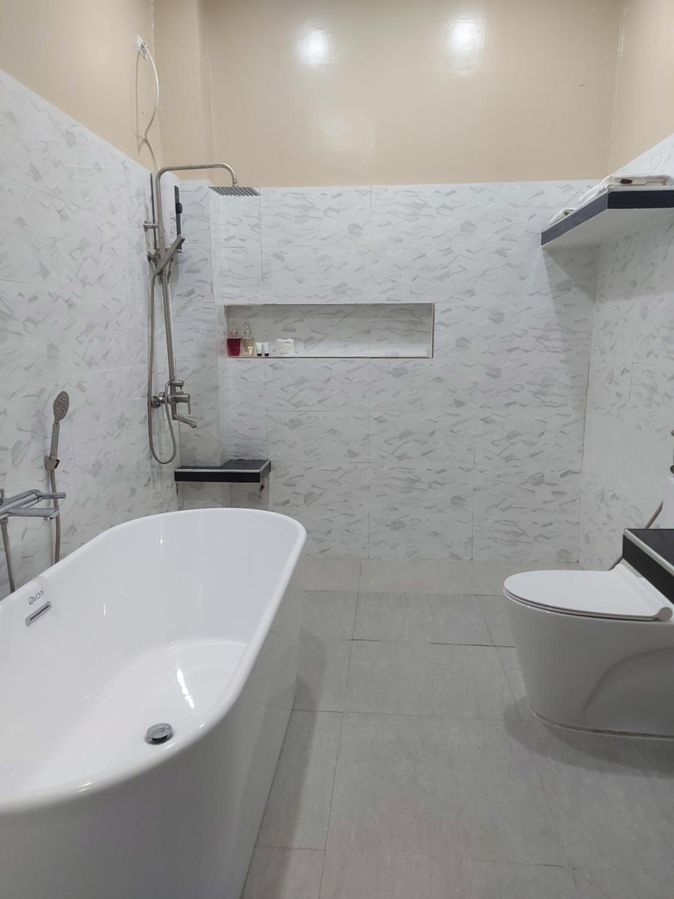 First impression was simple but clean, but once you entered the bathroom there were roaches crawling around. They also didn't prepare enough towels and toilet tissue. There was also no nightstand to put your phone, and there was only a single working outlet for a whole family to charge their phone over night. That outlet was even hidden behind the bed, so needed to move that bed away from the wall.