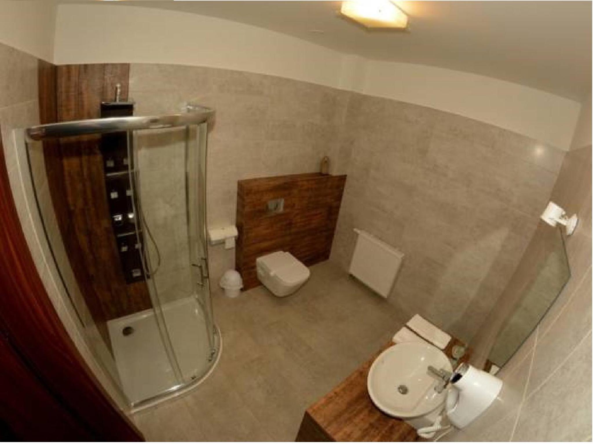 Duży schludny i przestronny pokój w pełni wyposażony w podstawowe sprzęty, Ładna duża łazienka, bardzo czysta. Klimatyzacja w pokoju. Bardzo miła i pomocna obsługa. Podróżowaliśmy z psem, który był mile widzianym i pełnoprawnym gościem hotelu. Smaczne i obfite śniadanie. Możliwość skorzystania z restauracji hotelowej do godziny 21. Dobra relacja ceny do jakości.