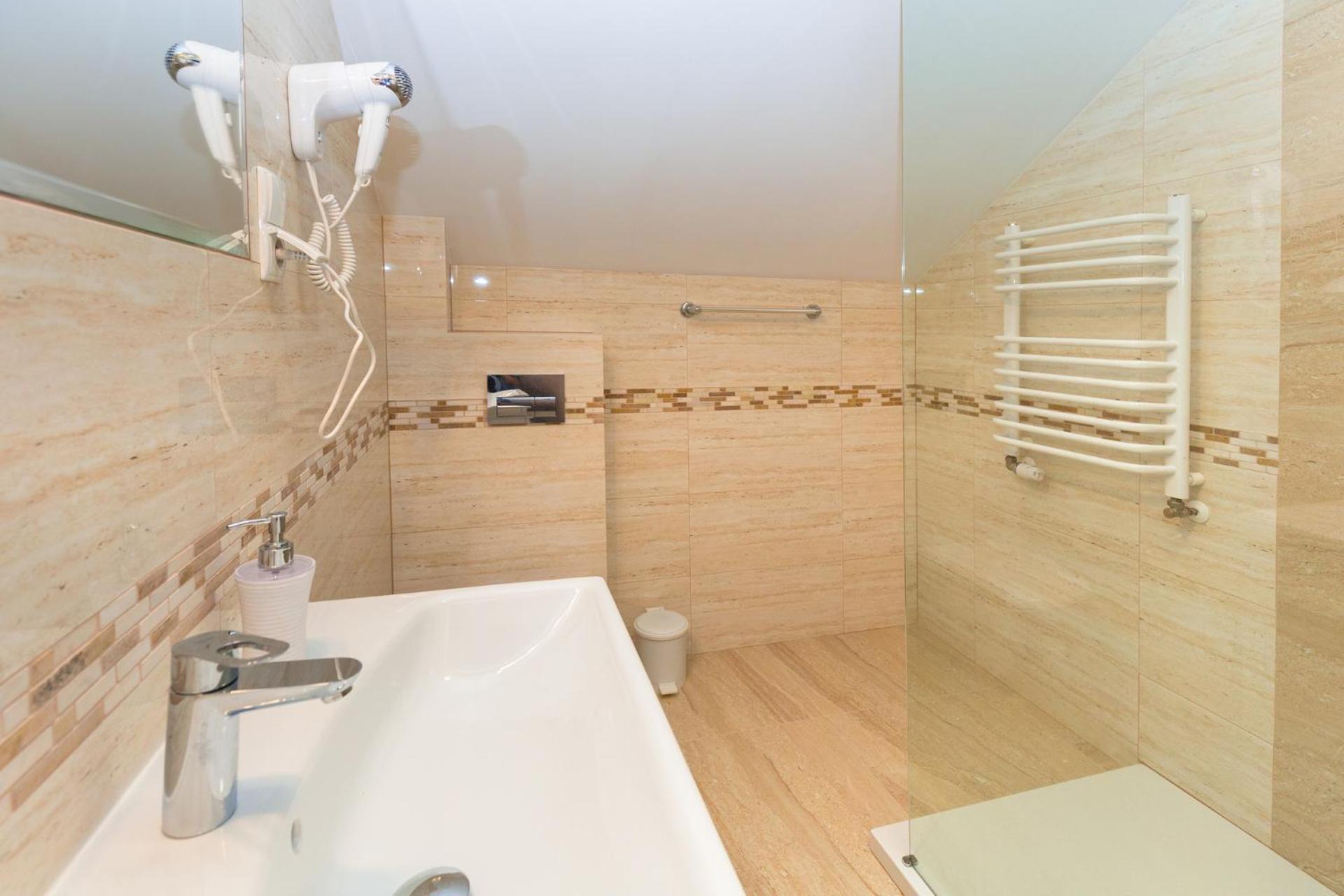 W łazience włosy na ścianie, bardzo sprane cienkie ręczniki, dziurawe prześcieradła
