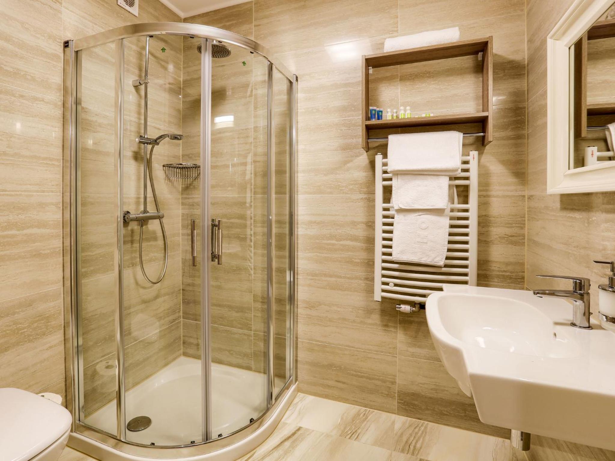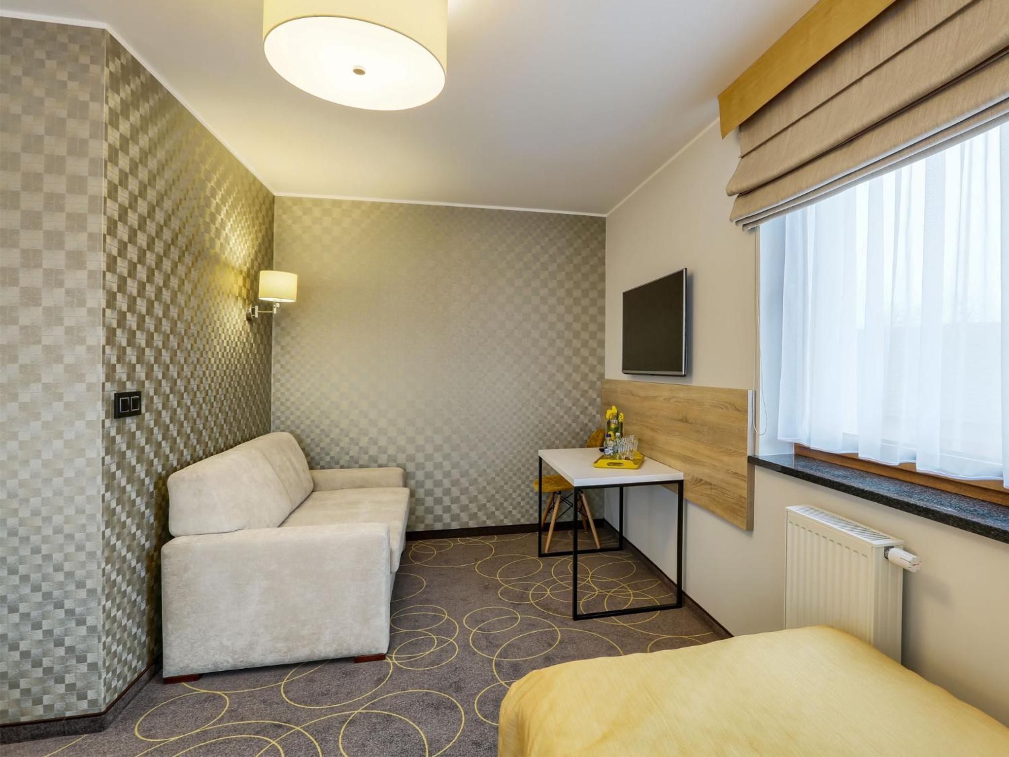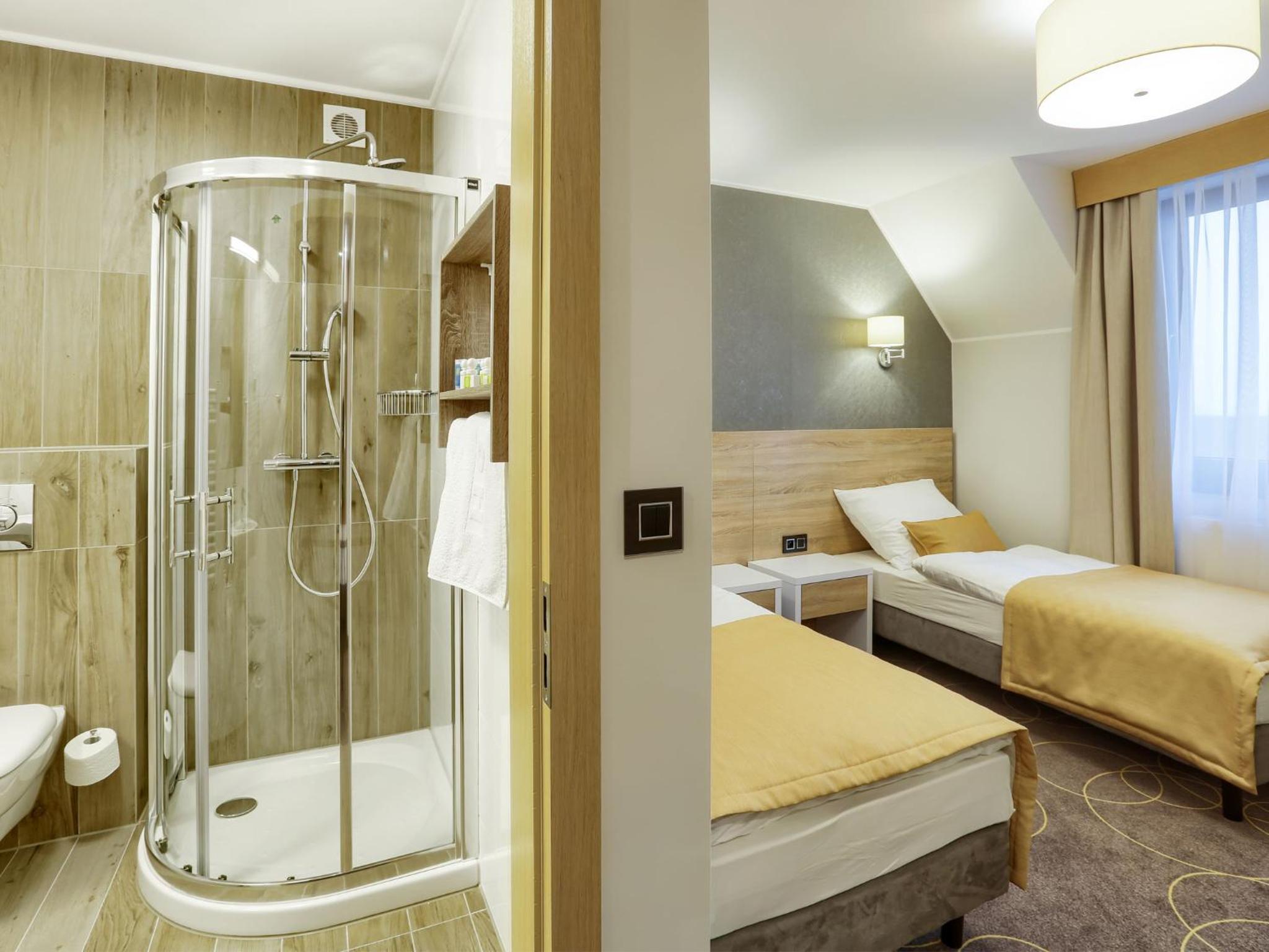 W pokoju było ciepło i cicho. Dostępna jest woda, czajnik, kawa, herbata. W łazience mini produkty do kąpieli. Rano, już od godziny siódmej w cukierni hotelu serwowane jest bardzo smaczne śniadanie. Na życzenie przygotowywana jest jajecznica, lub omlet. Pyszna kawa. Skorzystaliśmy również z okazji i kupiliśmy świeżutkie pieczywo. Można też kupić smakowite kołacze, torty, lub ciastka.