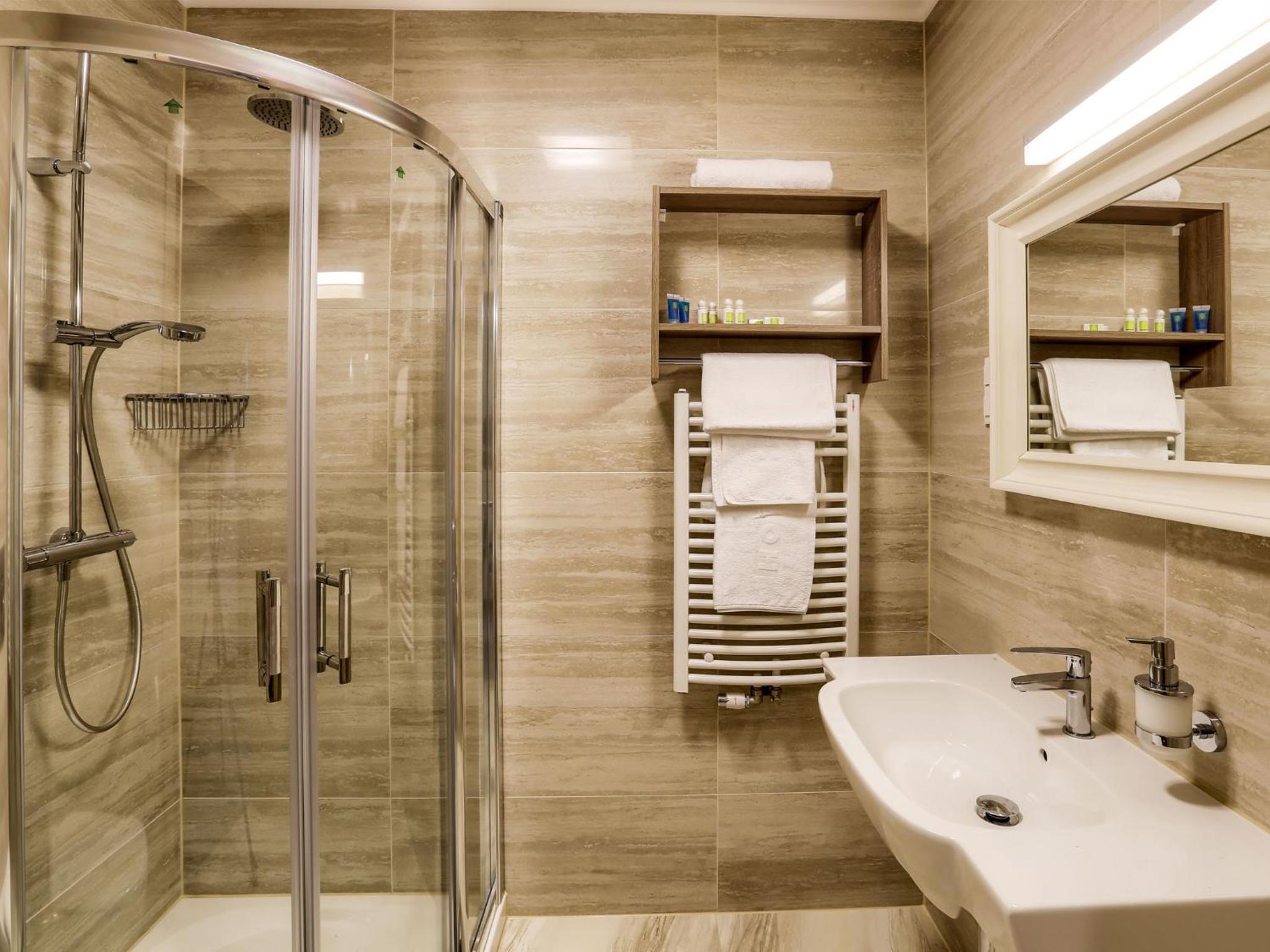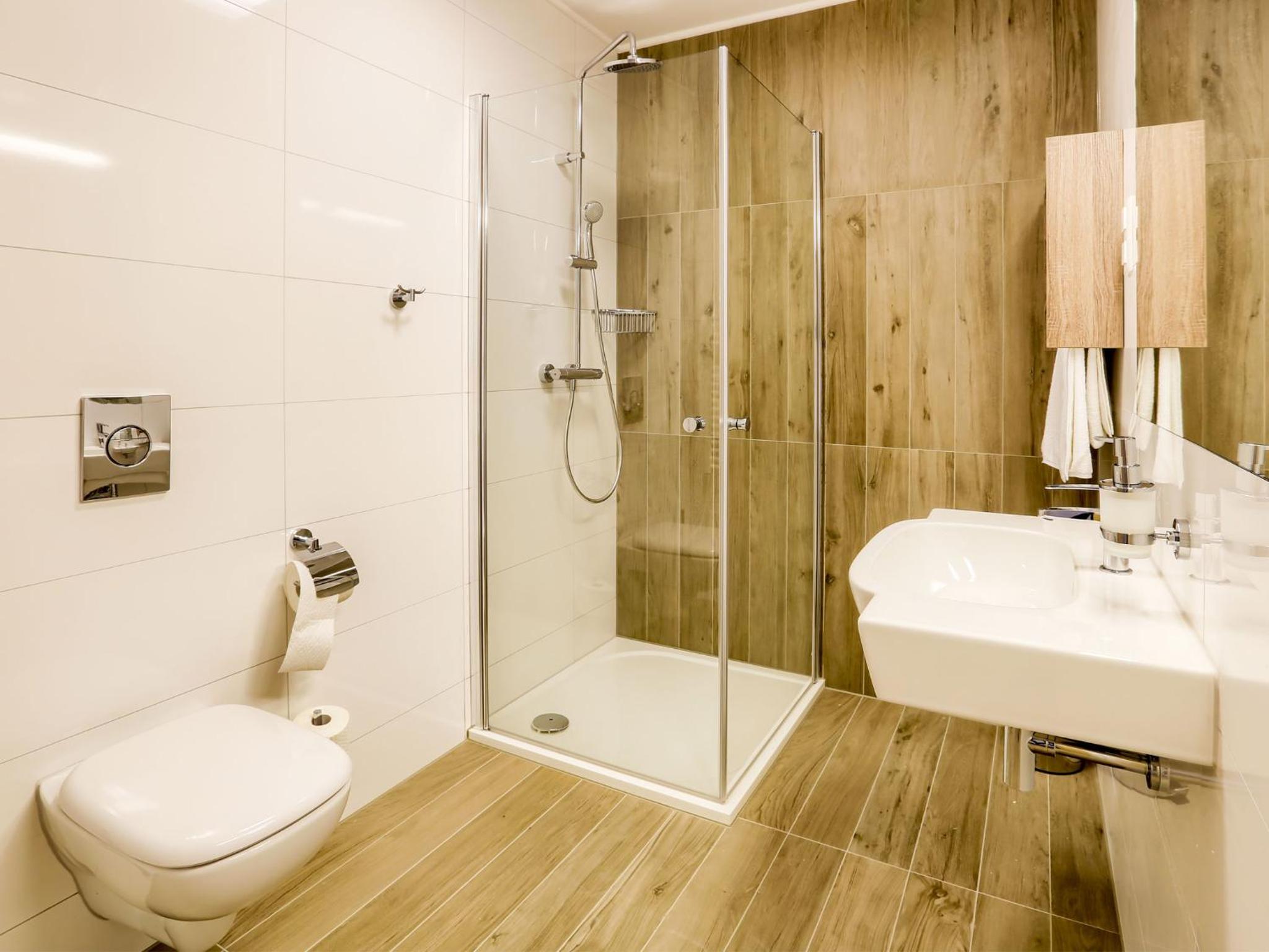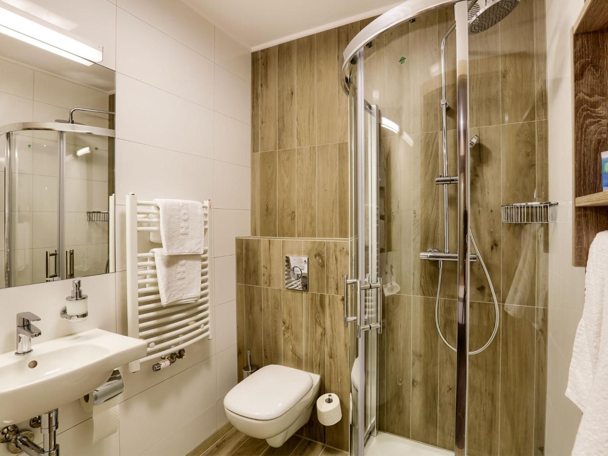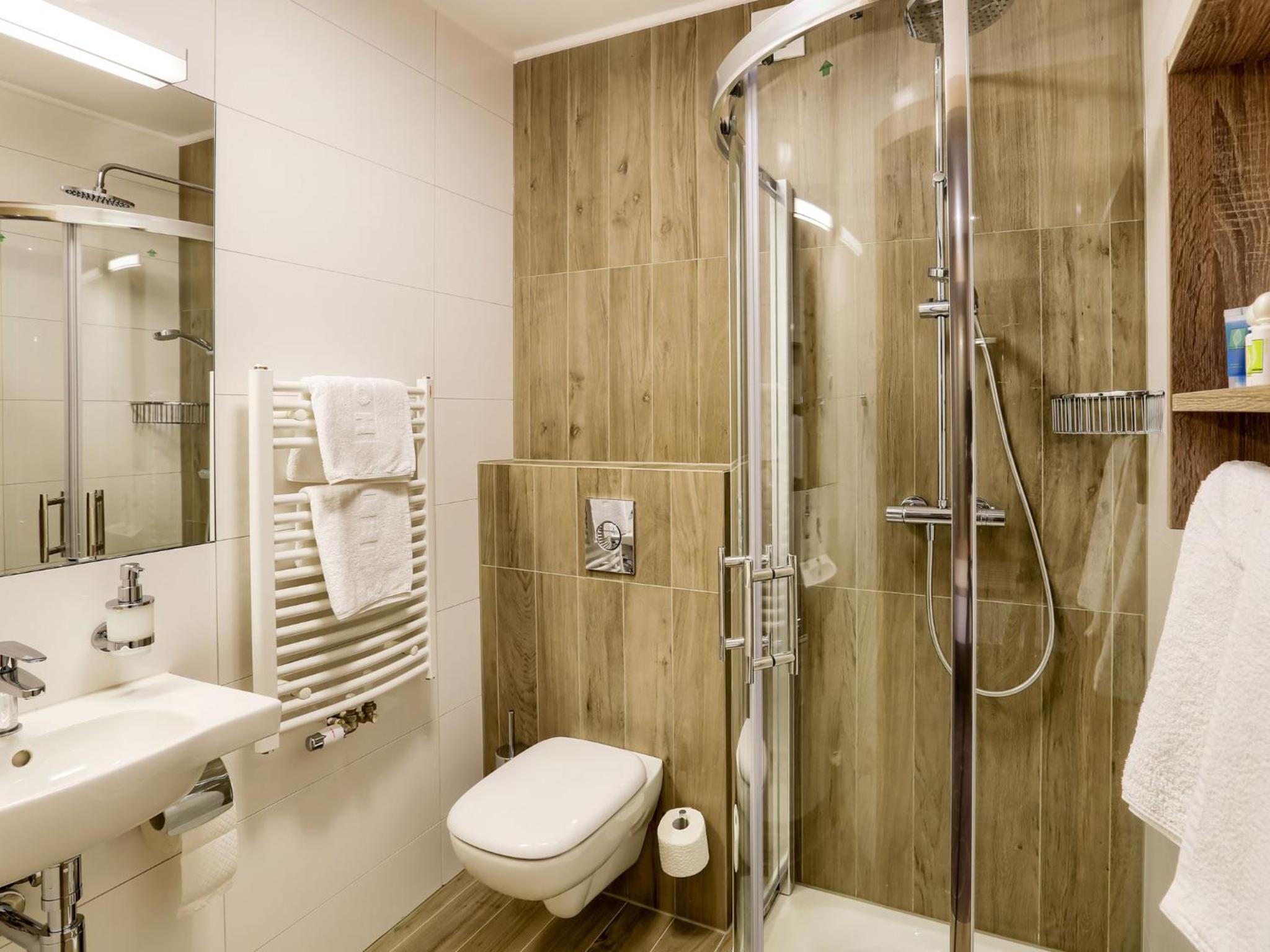 W pokoju było ciepło i cicho. Dostępna jest woda, czajnik, kawa, herbata. W łazience mini produkty do kąpieli. Rano, już od godziny siódmej w cukierni hotelu serwowane jest bardzo smaczne śniadanie. Na życzenie przygotowywana jest jajecznica, lub omlet. Pyszna kawa. Skorzystaliśmy również z okazji i kupiliśmy świeżutkie pieczywo. Można też kupić smakowite kołacze, torty, lub ciastka.
