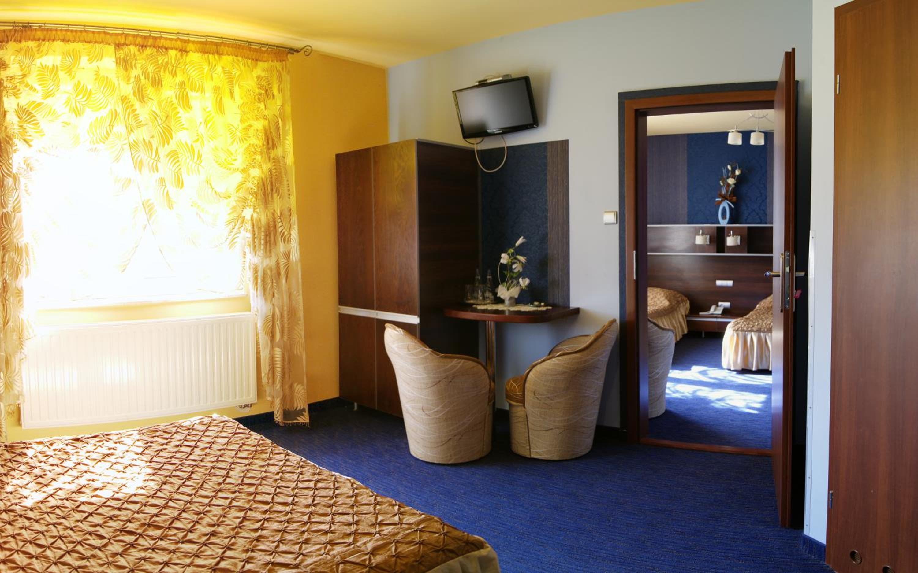Wygodny pokój, czysto i przyjemnie. Nie przeszkadza nawet impreza w obiekcie. Dobre śniadania, bardzo przyjemny personel. Bardzo przestronny parking, w okol cisza i spokój.
