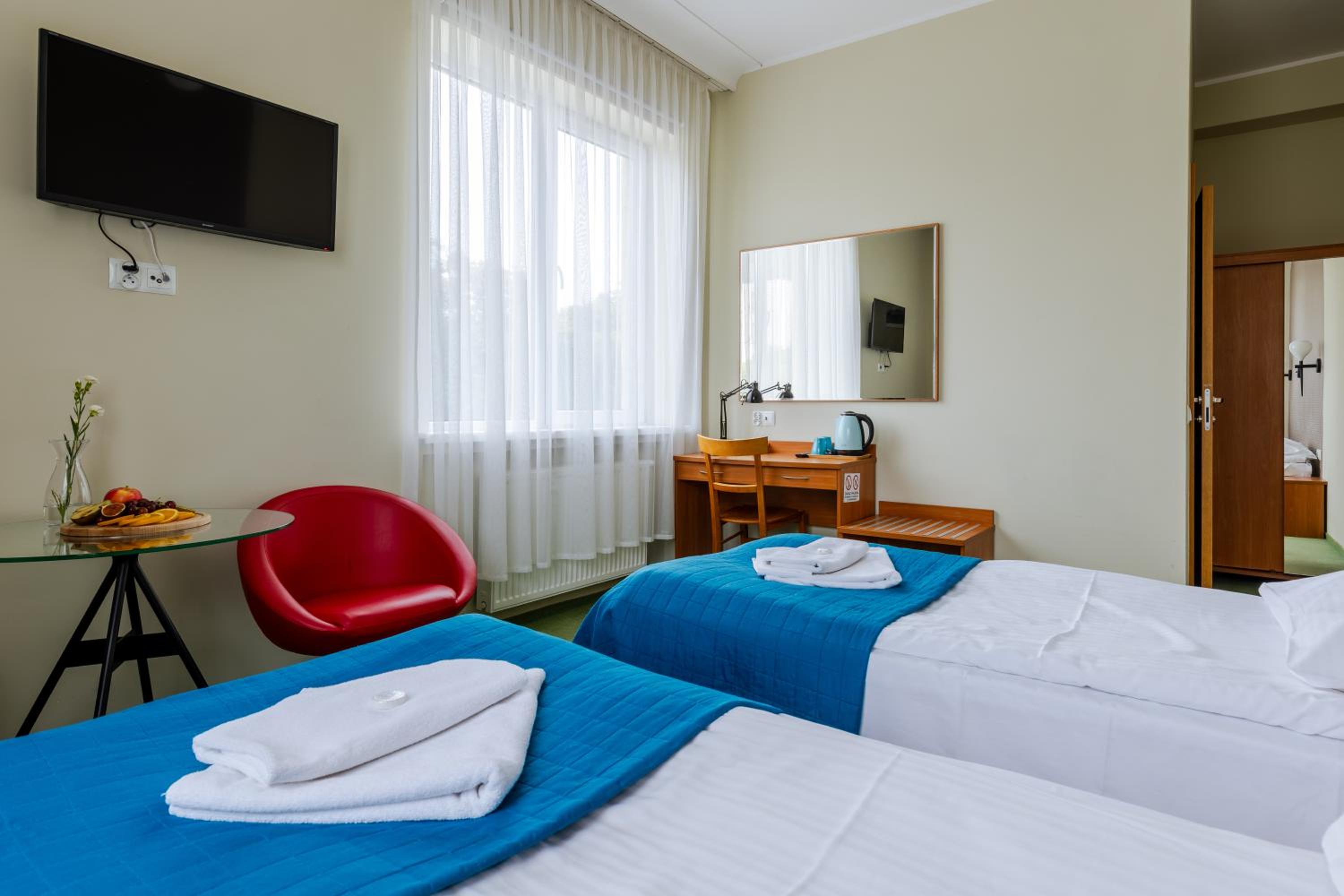 Чудове розташування, набережна міста в одній хвилині від готелю. В номері чисто і охайно, вид на море, білосніжна білизна та рушники. В номері є чайник і чашки, але відсутній чай і кава… туалет, ванна чисті, є засоби гігієни. Ванна трохи похмура через стару плитку, але все справне.в вартість харчування включений сніданок.