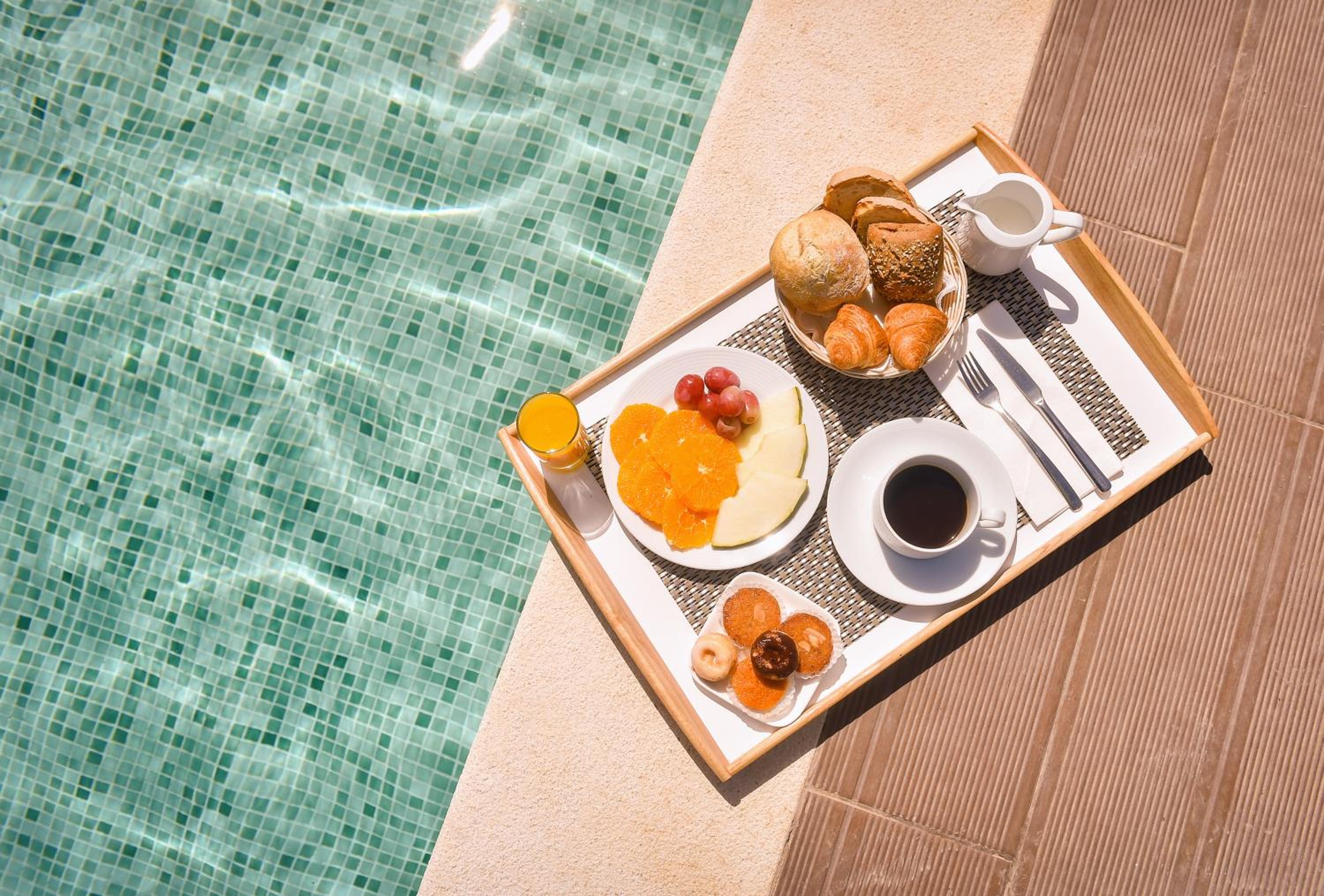 A piscina q o meu marido desfrutou e a variedade do pequeno almoco.