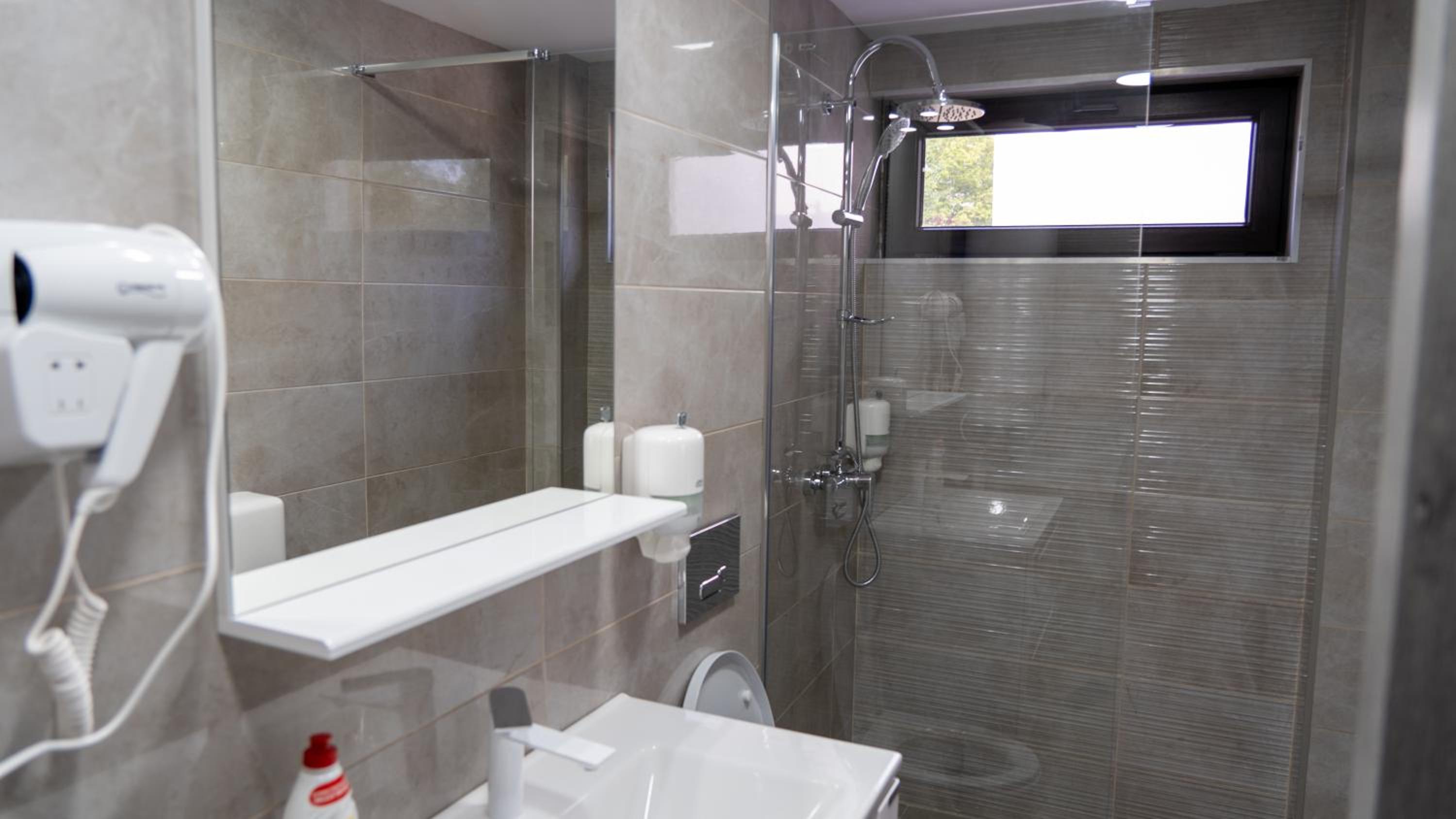 This is a self checkin hotel/motel, so there is no reception. Not an issue with that, but you need to use a code to get in the building and in the room. This code you have to enter on the “smart” door handles, which can be very annoying!!! They just don’t work good enough, and it quickly becomes frustrating when you have to enter the code 3-4 times, then it blocks you for a while until you can enter it again….We had to wait by the door at least 2 times, for a few minutes, until we were able to get it.