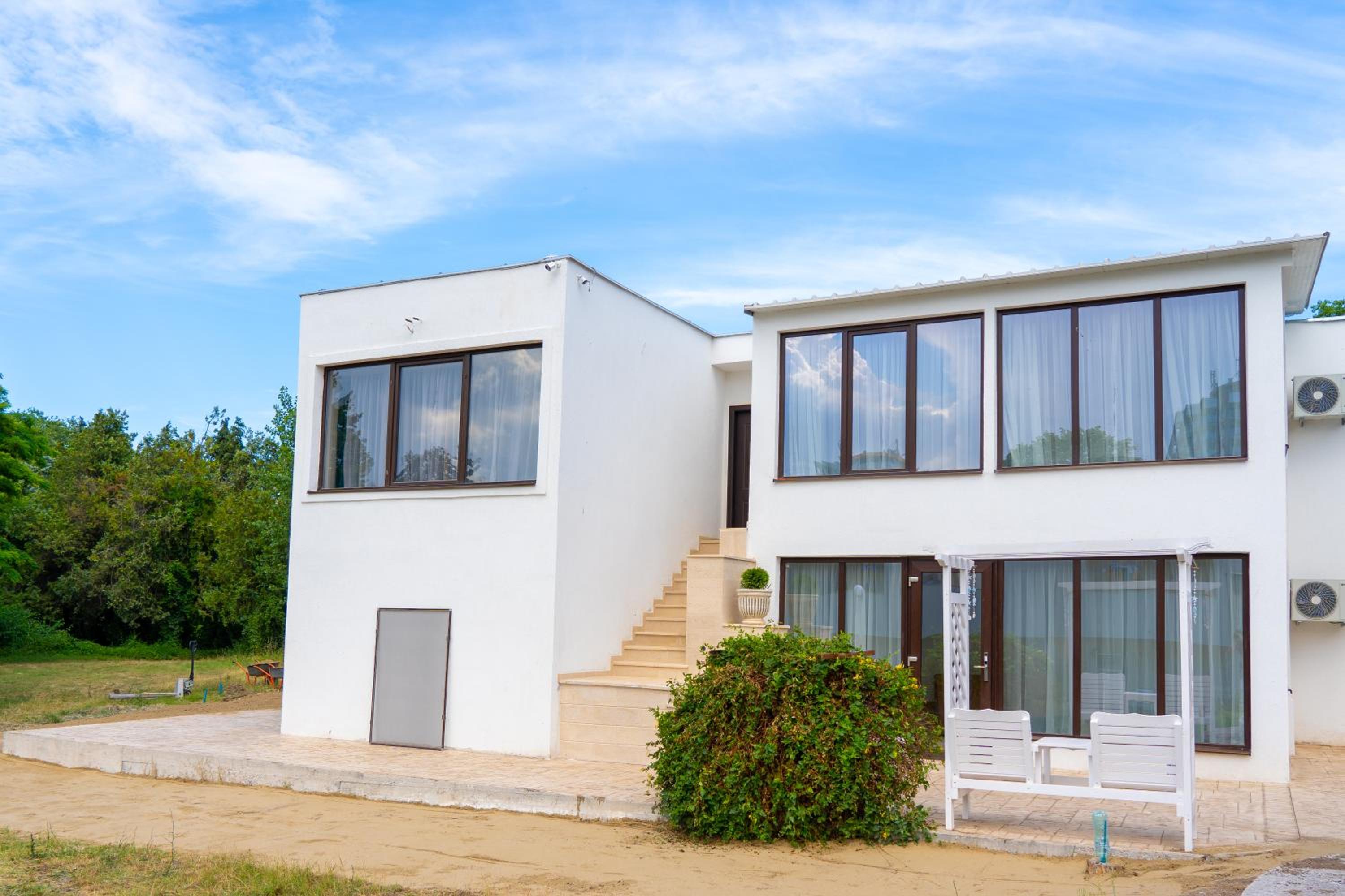Nu iti dai seama din prima pe unde trebuie sa intri. Vila este in aceeași curte cu alte spatii de cazare. In jurul vilei este un peisaj cam dezolant, cu mizerie si o curte neamenajata... garduri lipsa, o poarta rupta, etc.