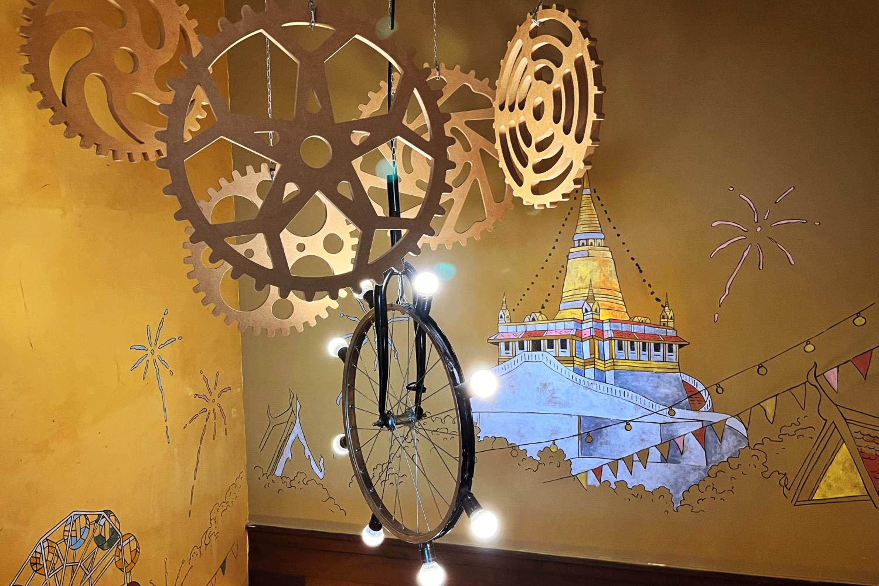 The whole hotel is a quirky theme. We are not cyclists, but loved it.