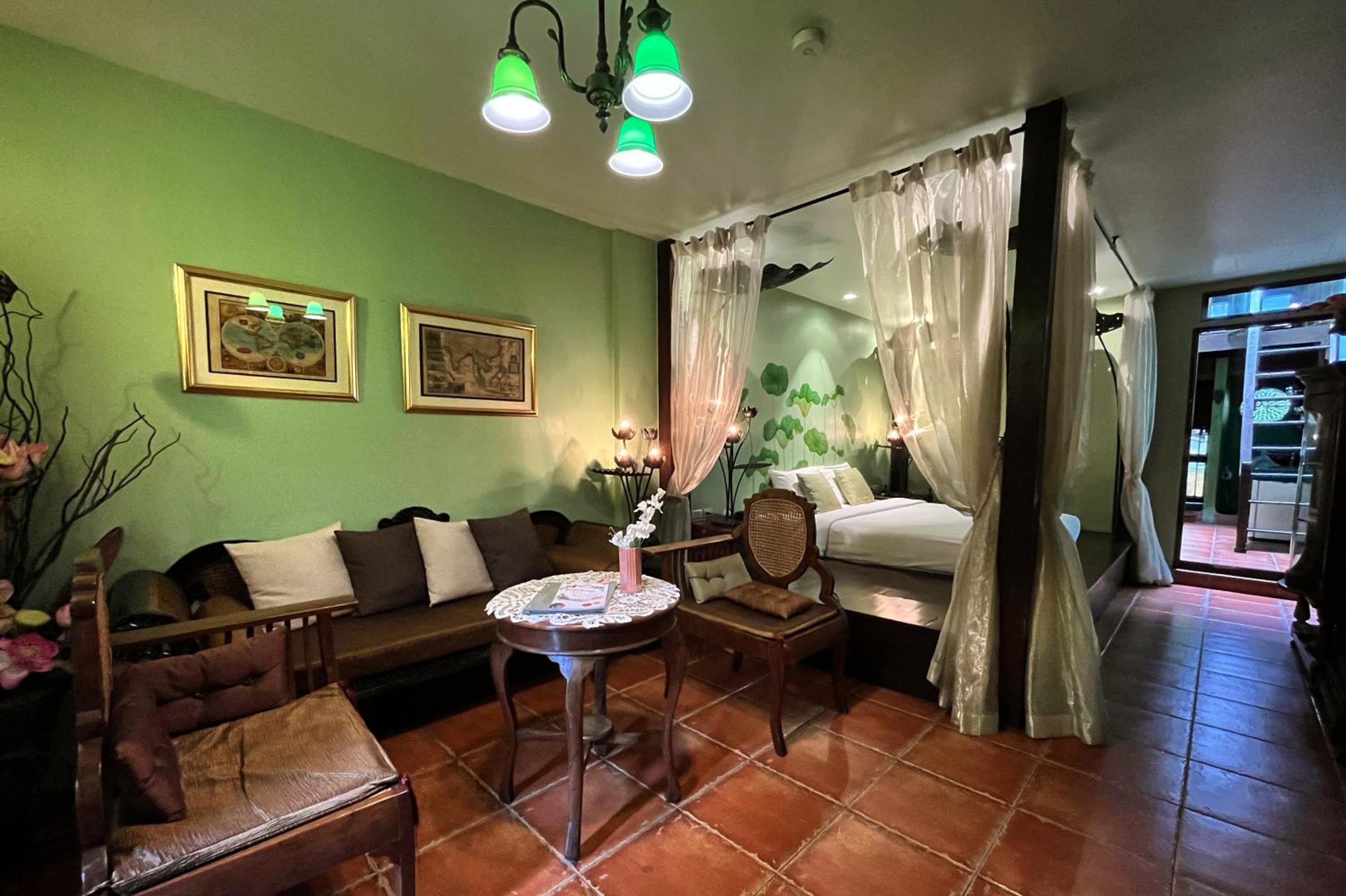 The Green Room with bathtub is delightful.