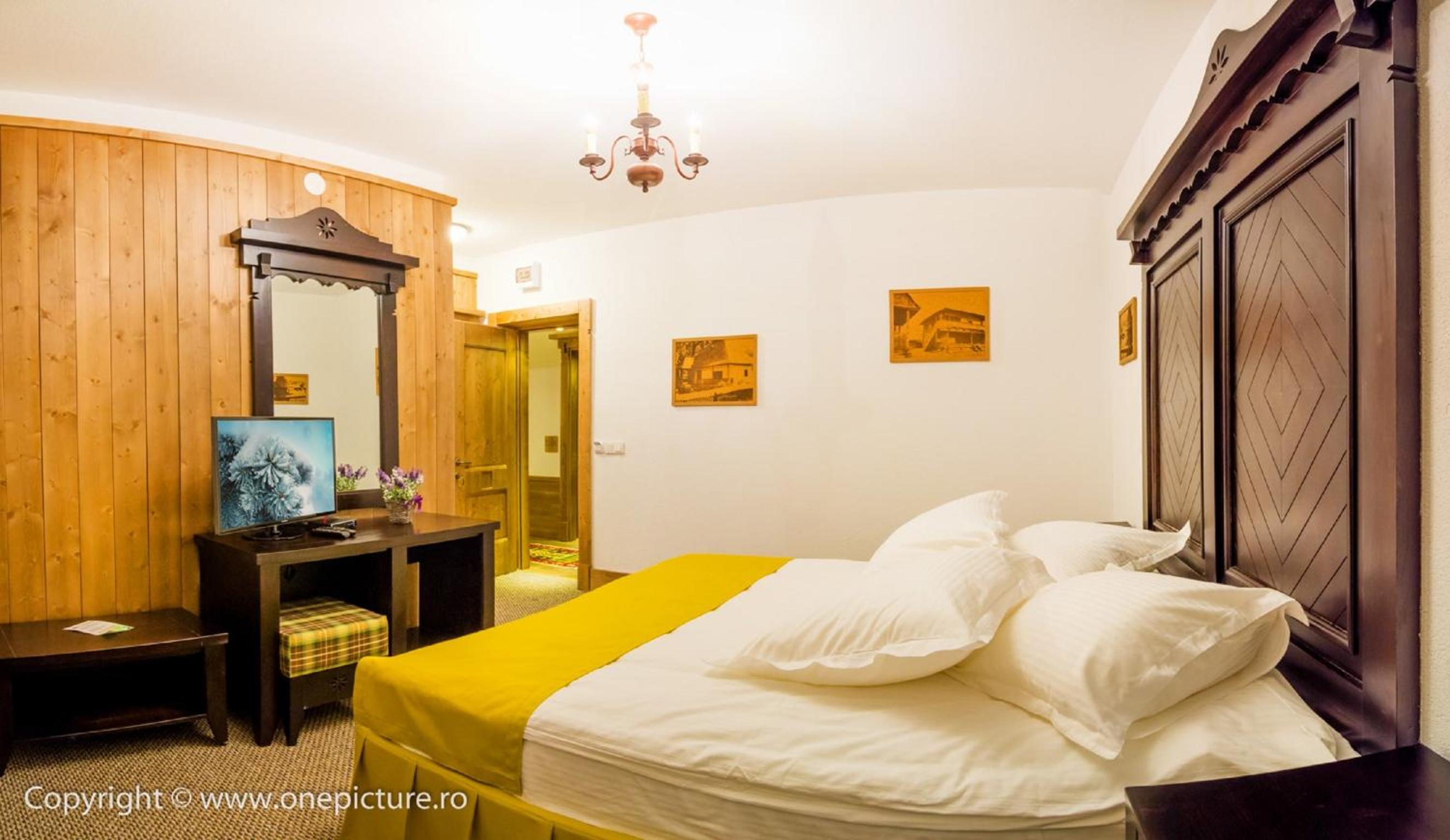 Each room at Hanul Haiducilor features a balcony with mountain views, parquet floors, a flat-screen TV, and a well-equipped bathroom for your comfort.