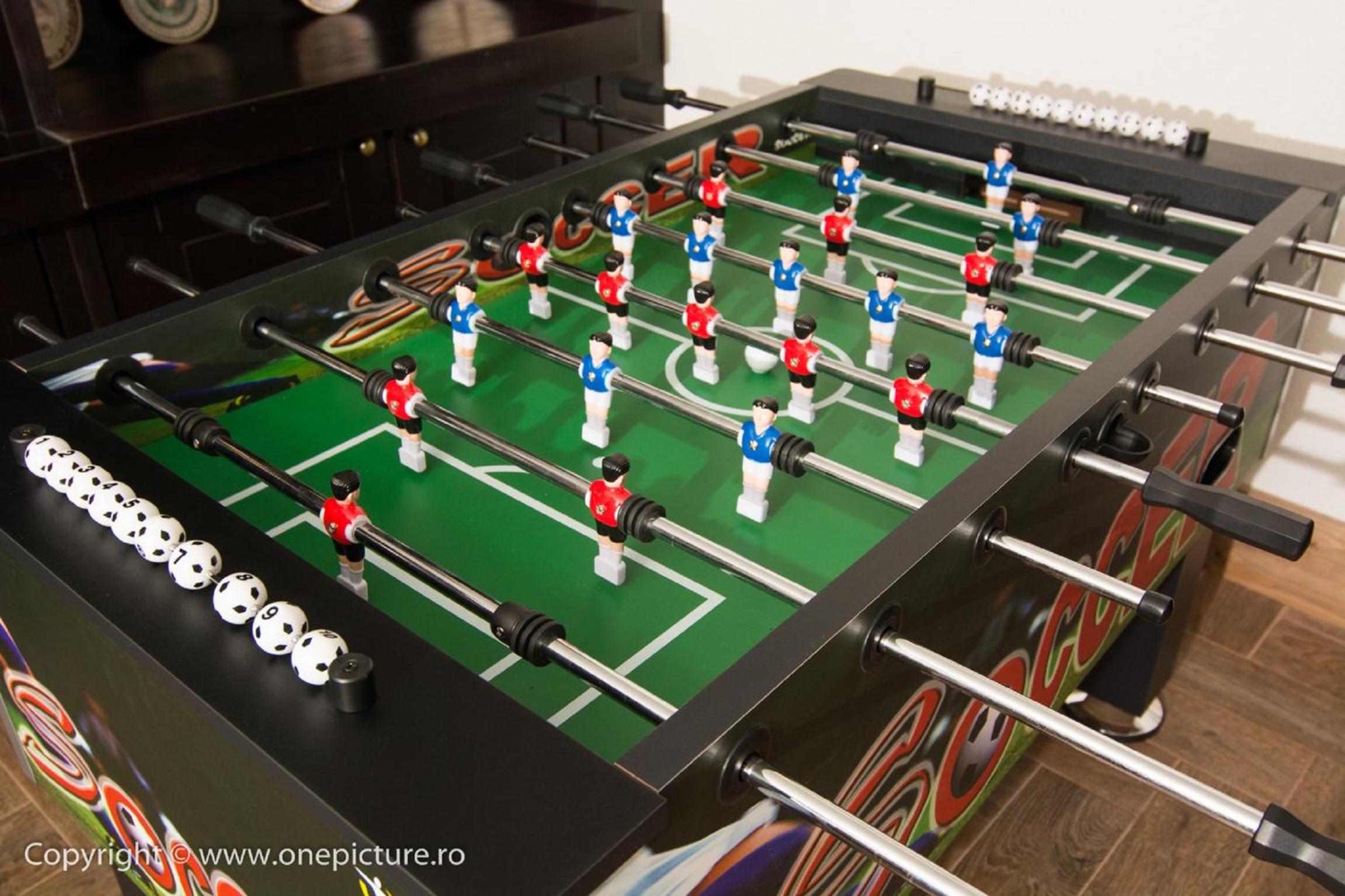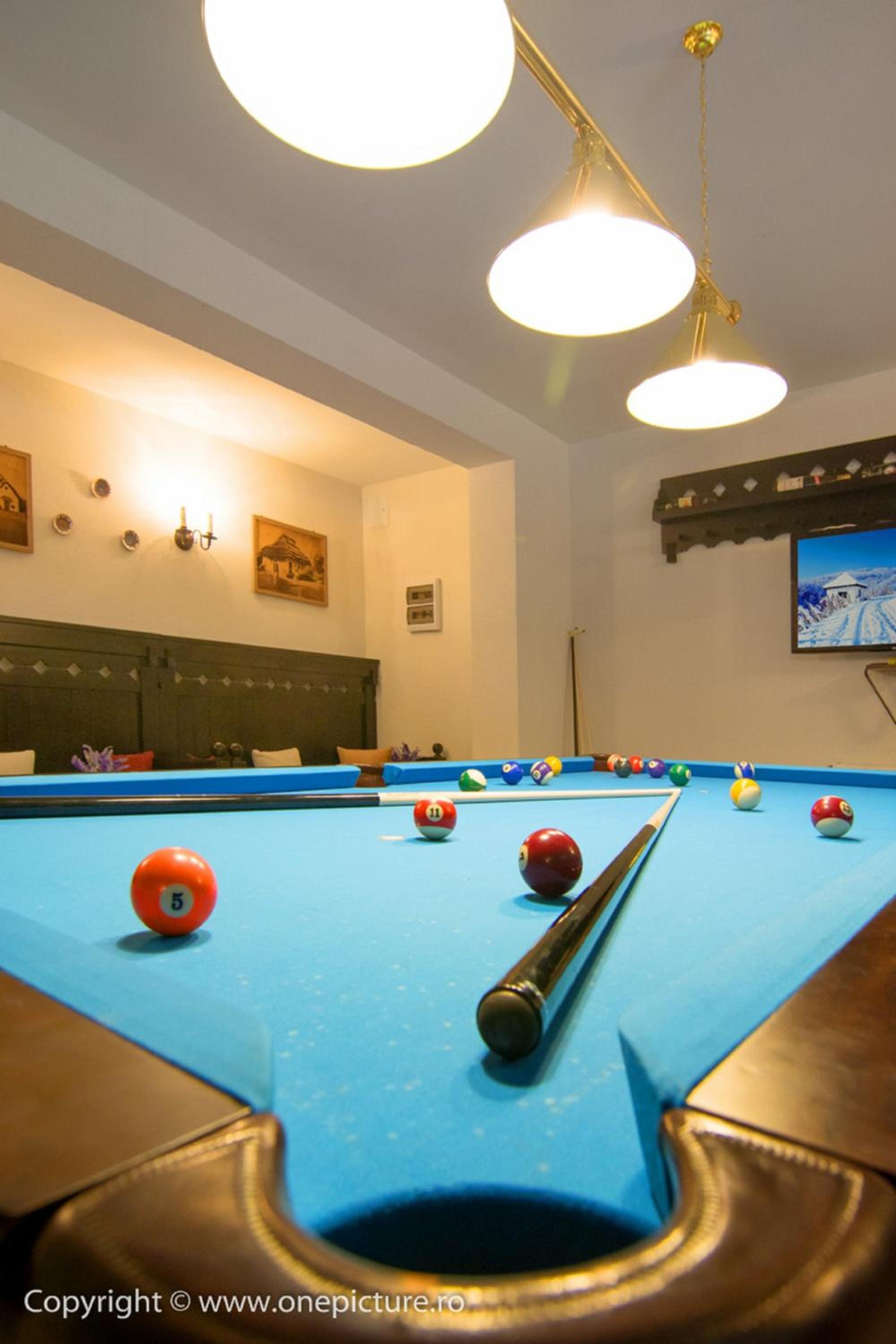 Locația dispune și de un spațiu de recreere unde poți petrece timp cu prietenii, având la dispoziție biliard și masă de ping-pong, ideale pentru socializare.