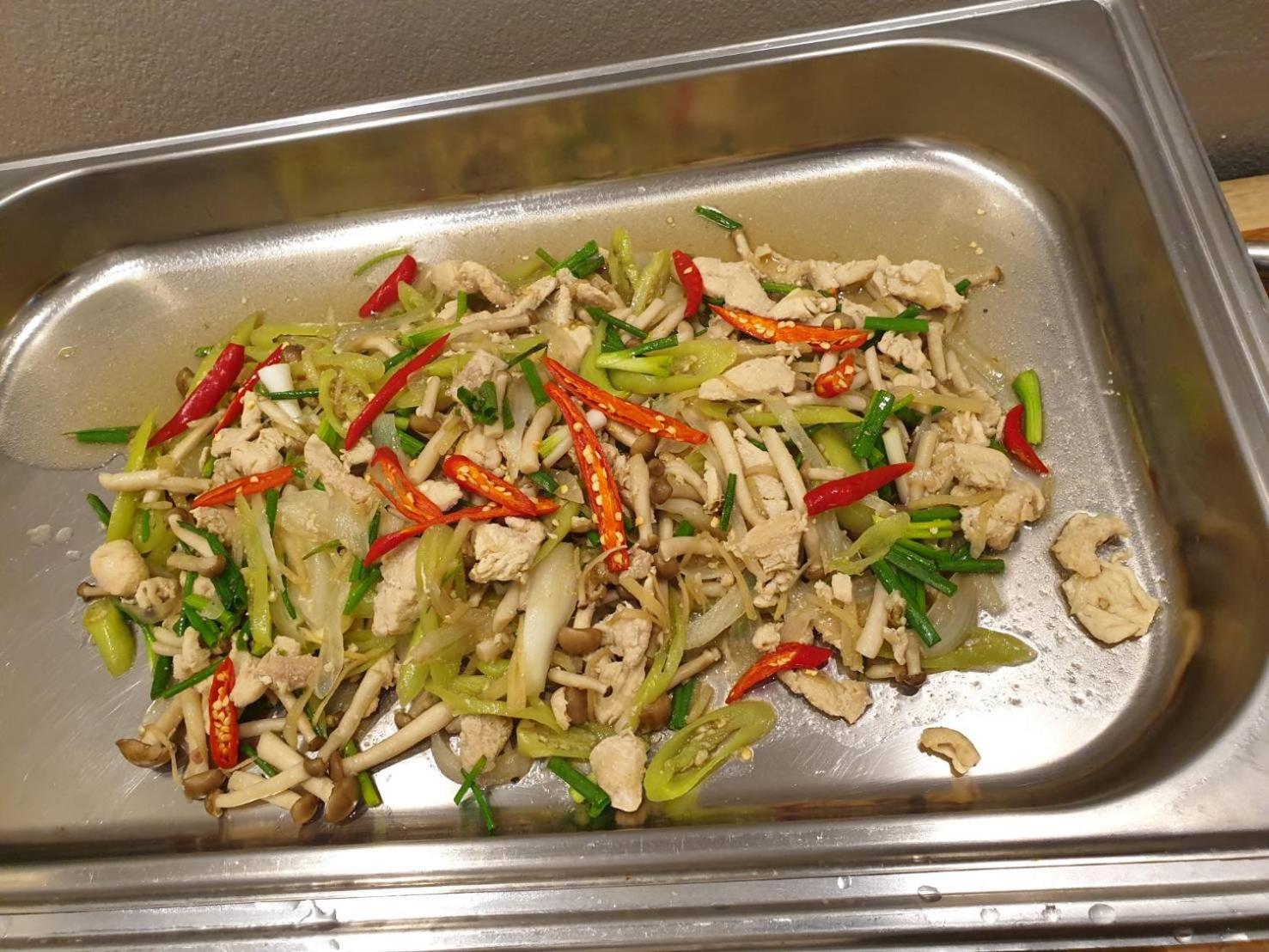Every morning: plane rice, 2 different wok like dishes, fried eggs and some small sausages. Only these 5 every morning. Cannot choose something else. Room temperature orange juice, instant coffee you can make with hot water. And toast. Nothing more!