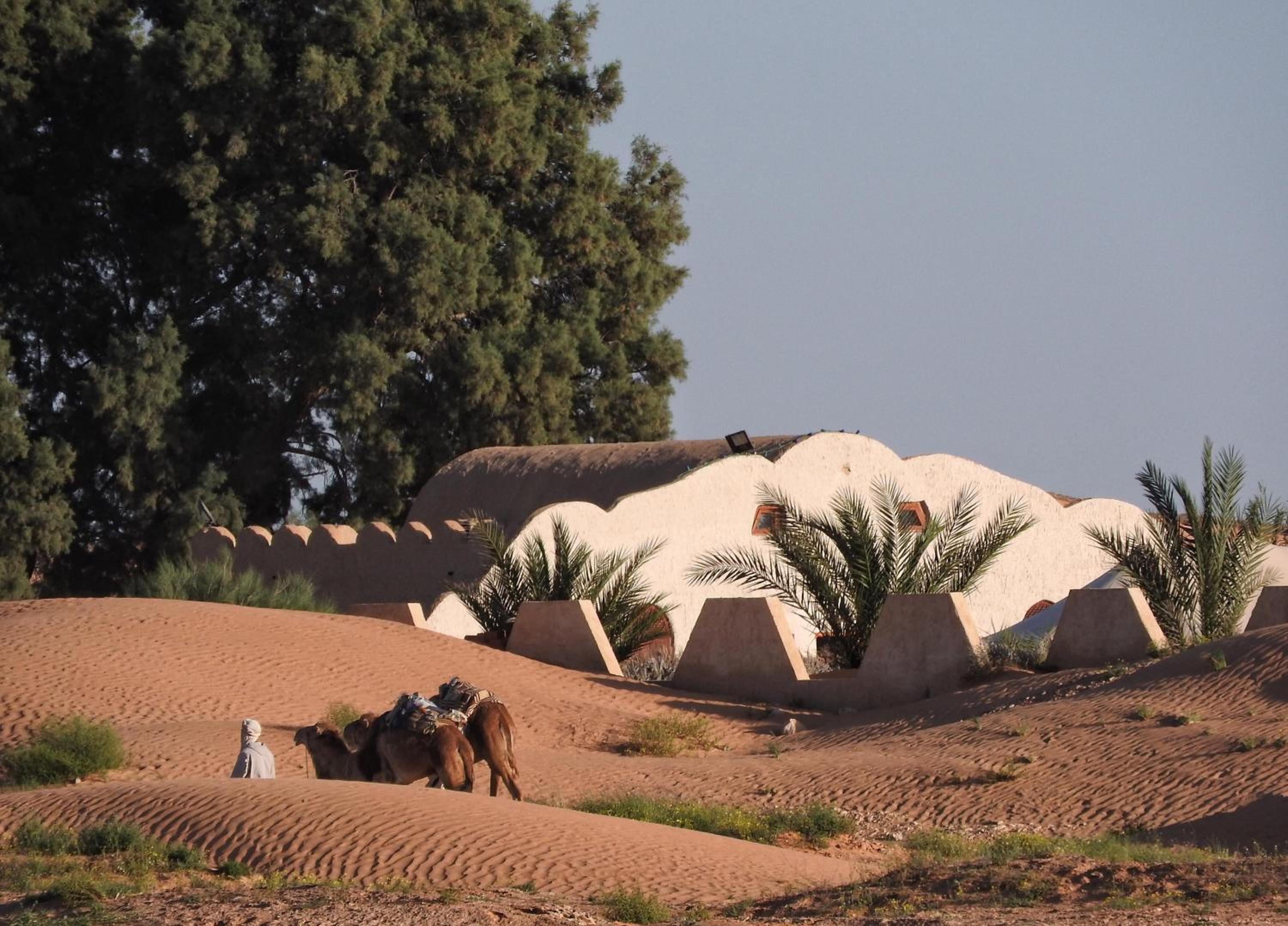 Die Zimmer sind sehr einfach eingerichtet aber sicher etwas weniger kalt als die Zelte. Die Exkursion mit Dromadaire und Essen in der Wüste war wunderbar