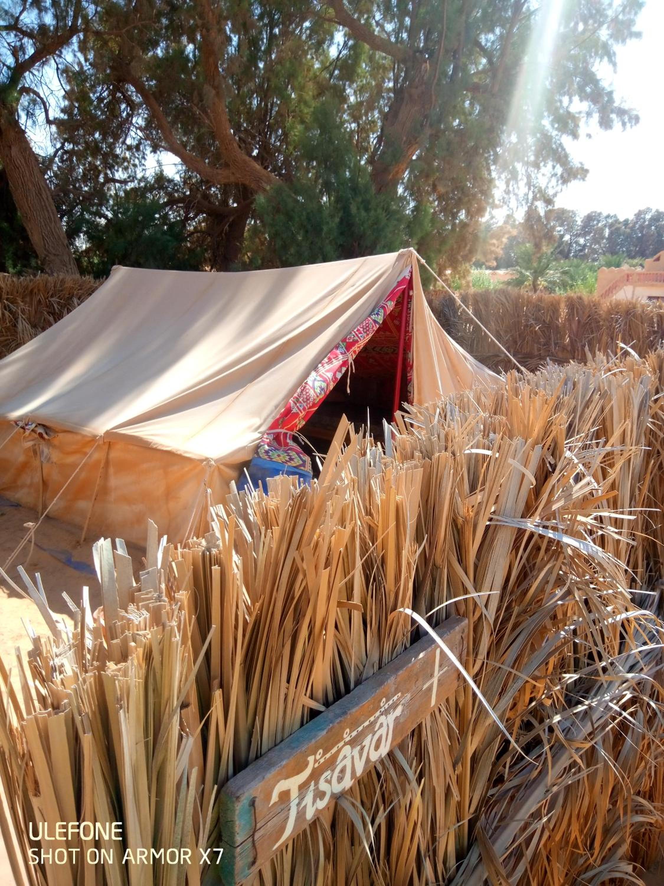 The location on the edge of Ksar Ghilane was perfect. The tents were beautiful and very comfortable and set in little palm frond enclosures to ensure privacy. The demonstration of the pain de sable was brilliant and it tasted lovely. We had the freshly prepared dinner, which was one of the best meals I have eaten in Tunisia. The chicken was cooked in a sealed earthenware pot that kept all of the flavour in. Our host was delightful and very kind. Nothing was too much trouble. The facilities were spotless. An added plus for me travelling with a fog, this encampment was very dog friendly as well. A marvellous experience.