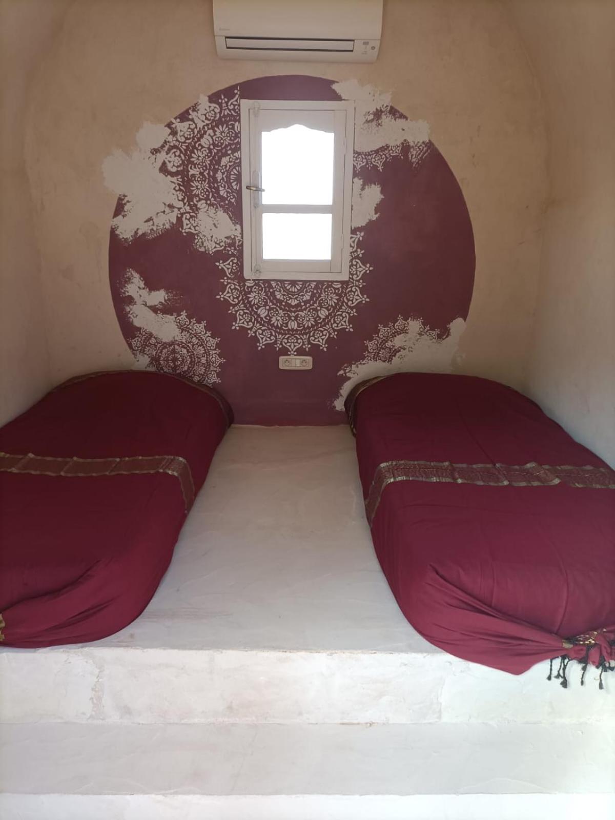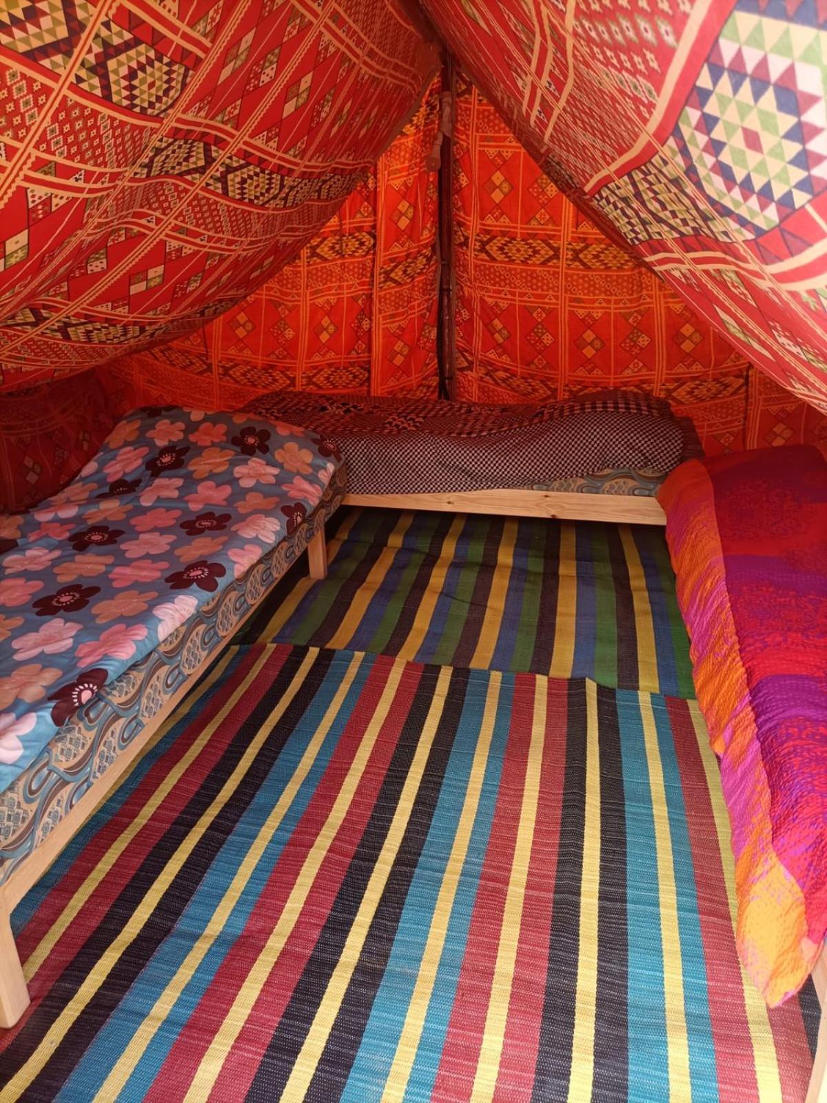 Las haimas son bastante cómodas con dos o tres camas por tienda. Con baños compartidos a escasos metros.