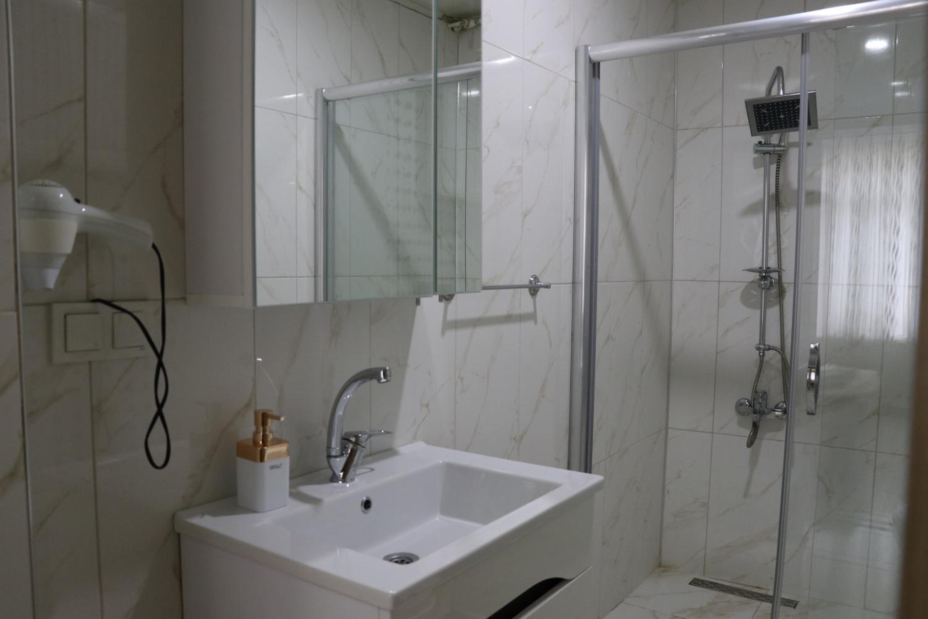 Ultimate Comfort: Relax in style with complimentary toiletries, slippers, and a cozy bathrobe provided in your private bathroom with a shower and hairdryer.