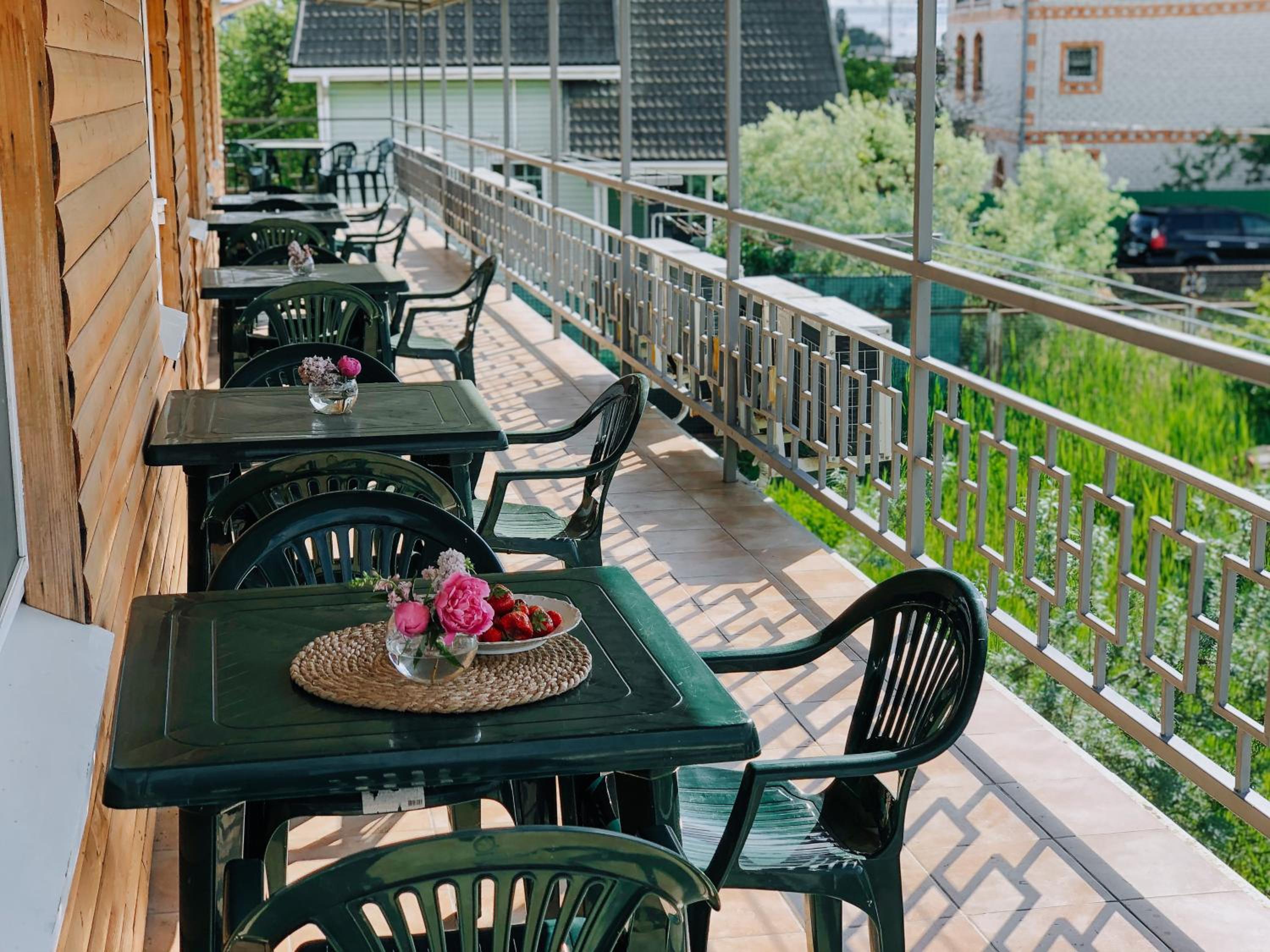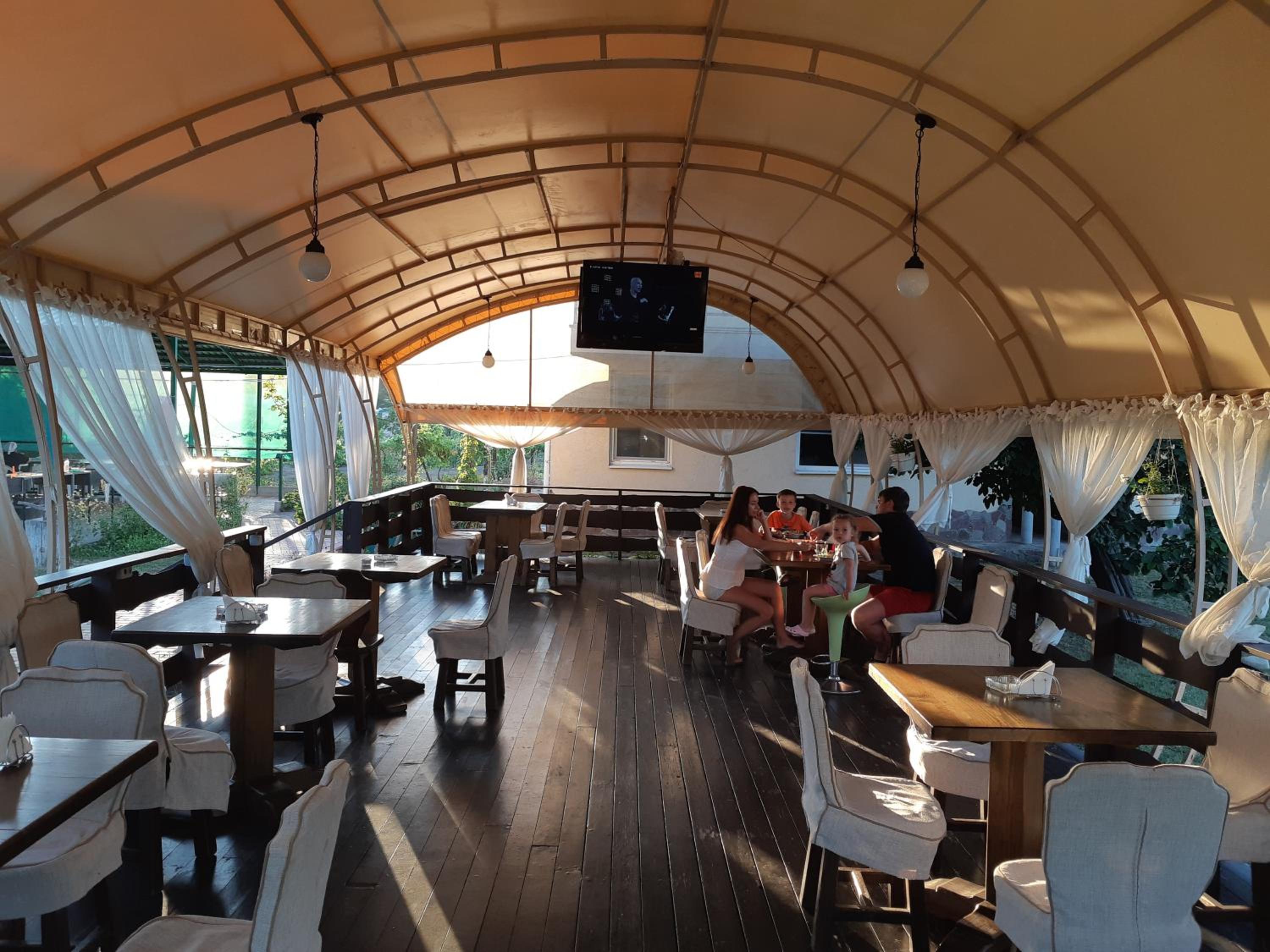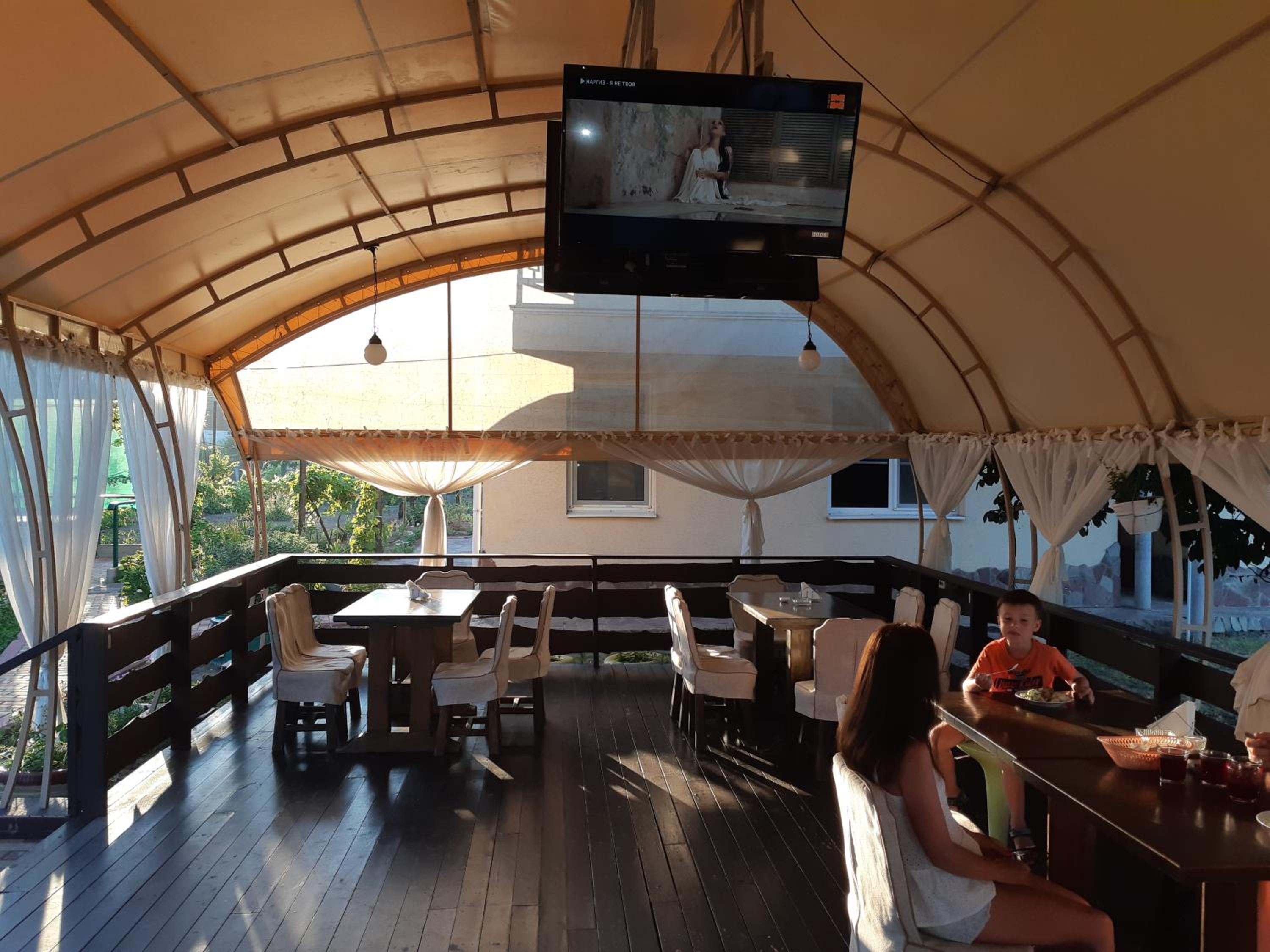Есть мангальная зона, кухня. Всегда есть свет и горячая вода. Можно заказать завтрак, обед и ужин, все очень вкусно (как дома). До моря 15 минут через магазины и МОПы.