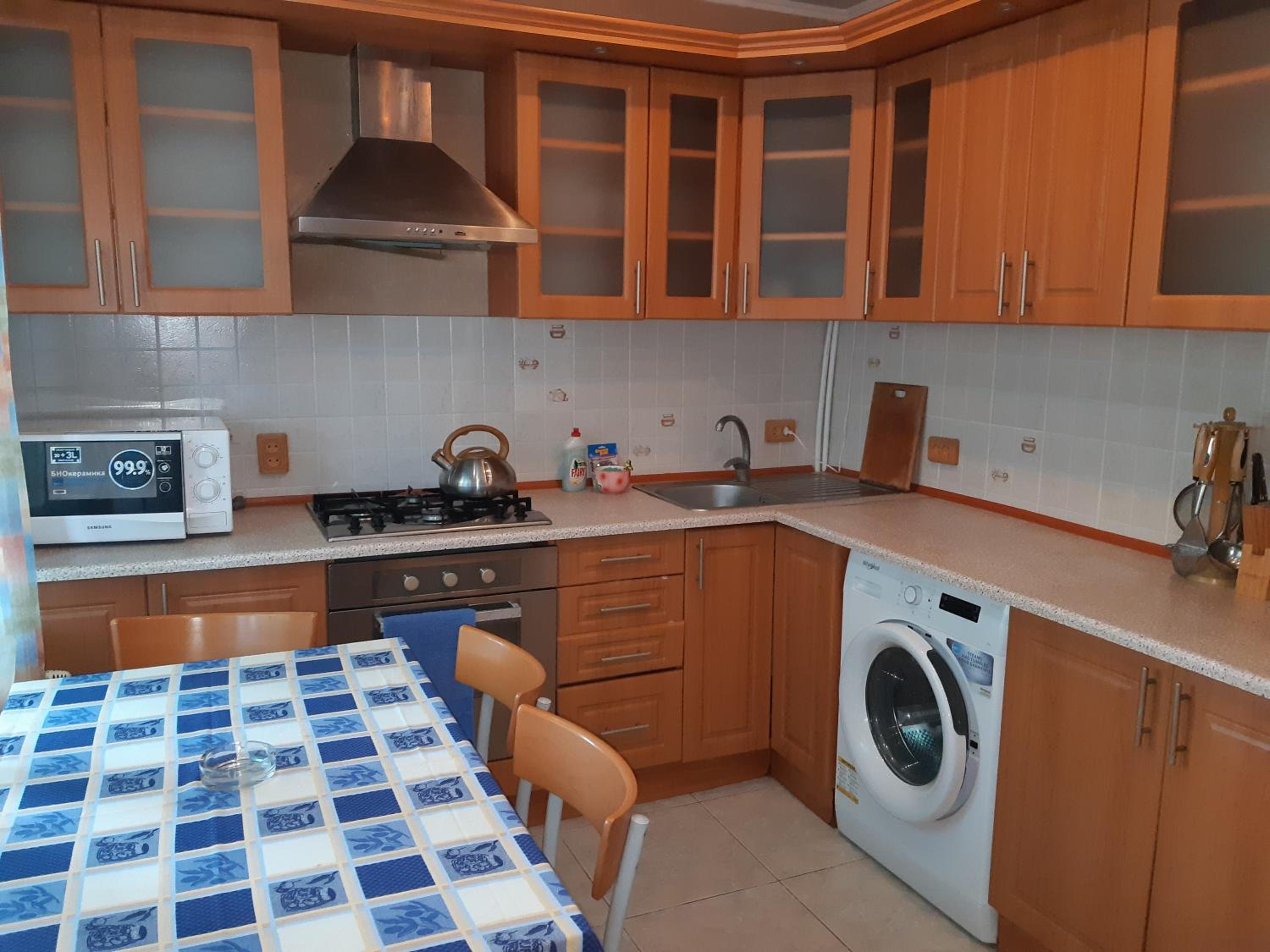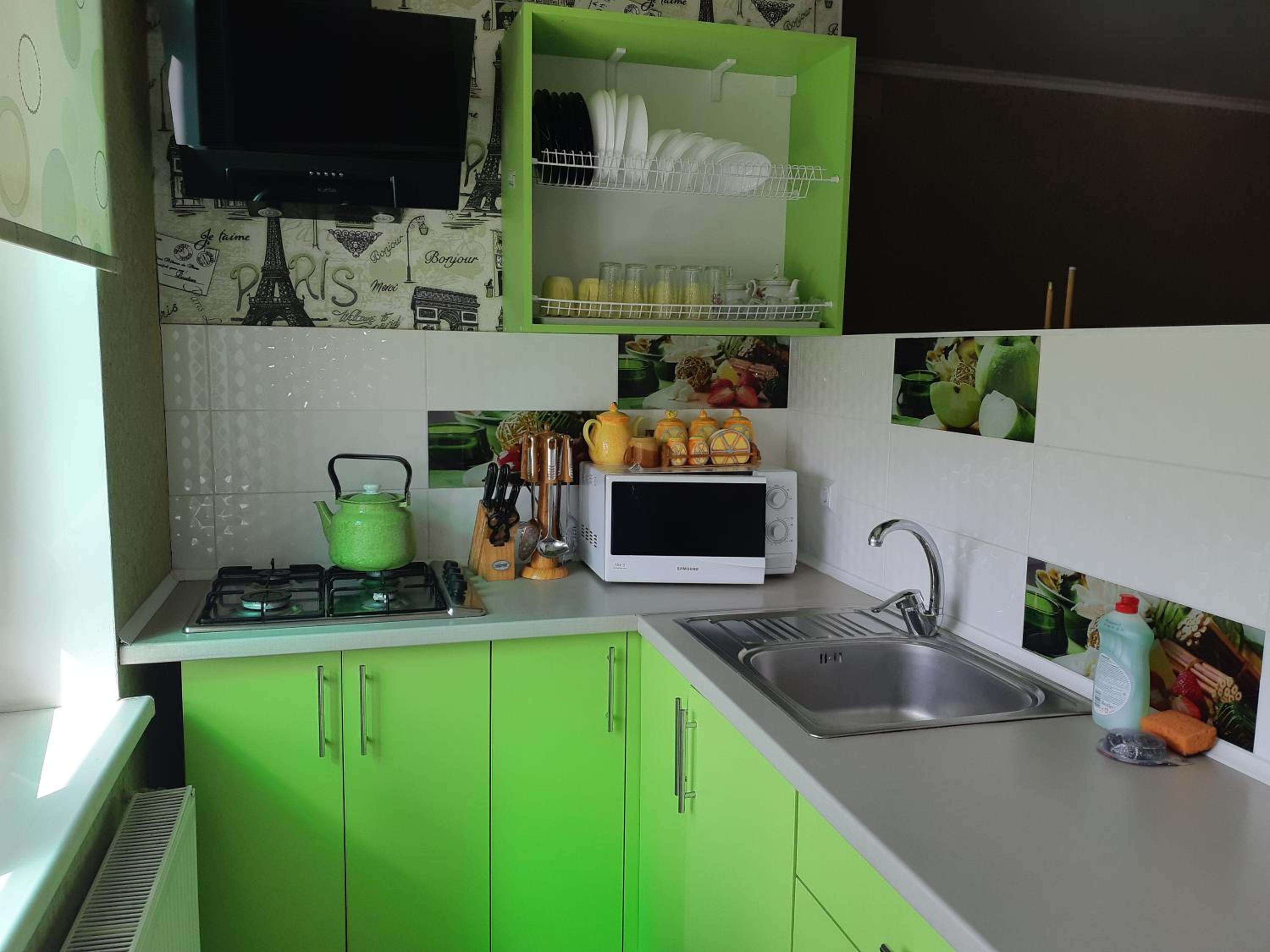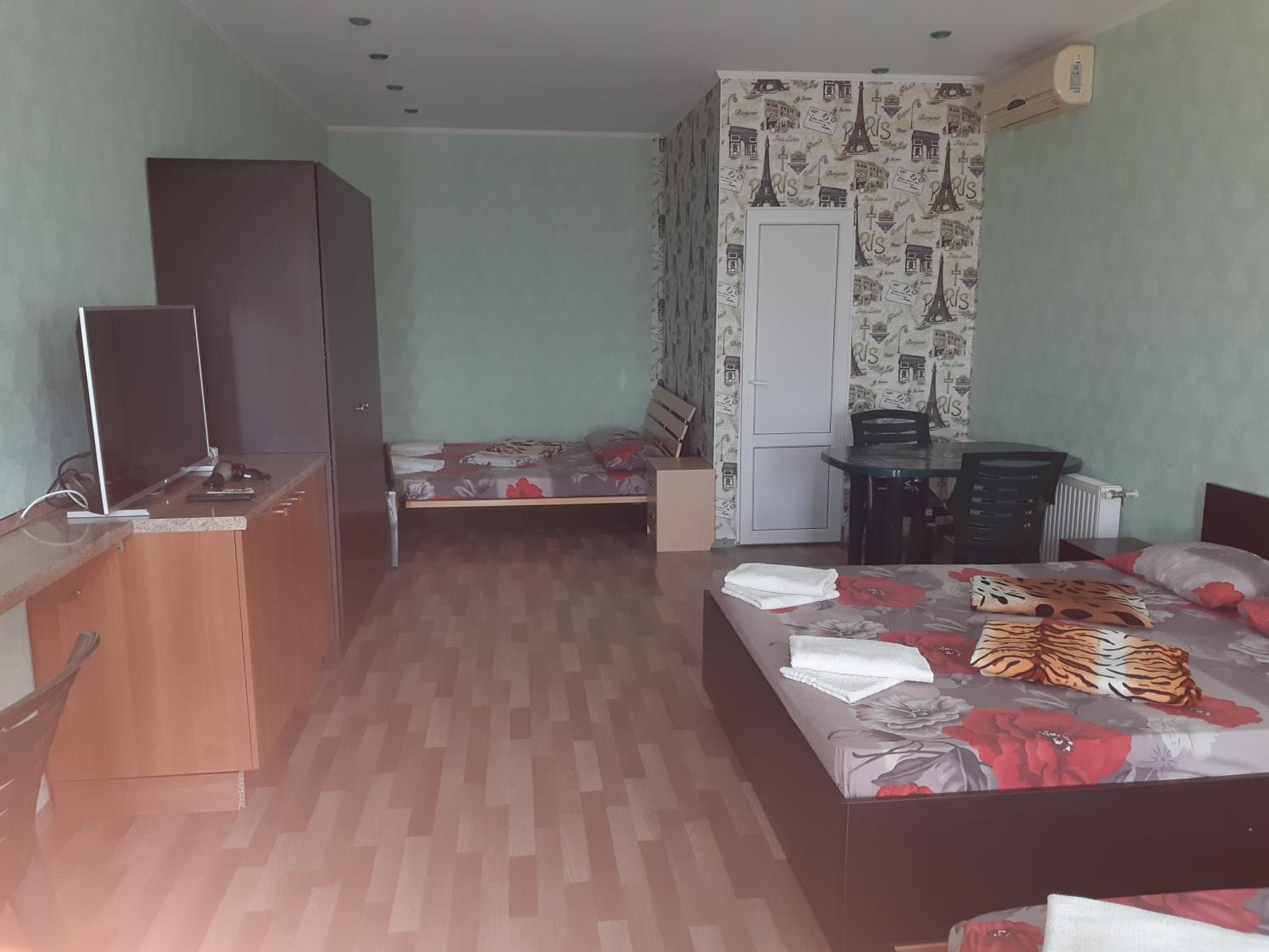 Есть мангальная зона, кухня. Всегда есть свет и горячая вода. Можно заказать завтрак, обед и ужин, все очень вкусно (как дома). До моря 15 минут через магазины и МОПы.
