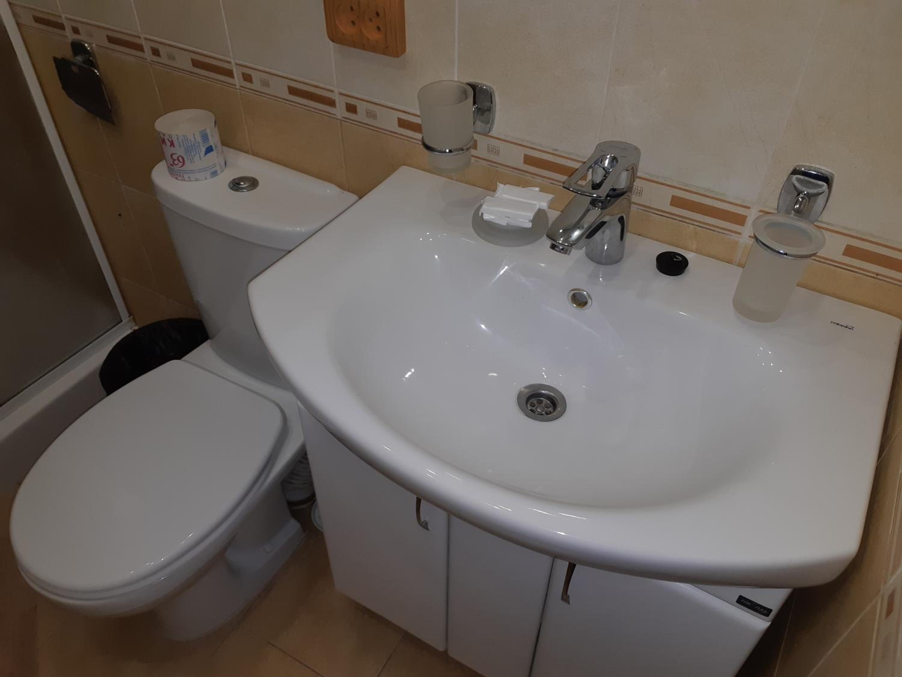 Supplied toiletries were bar soap and toilet paper.