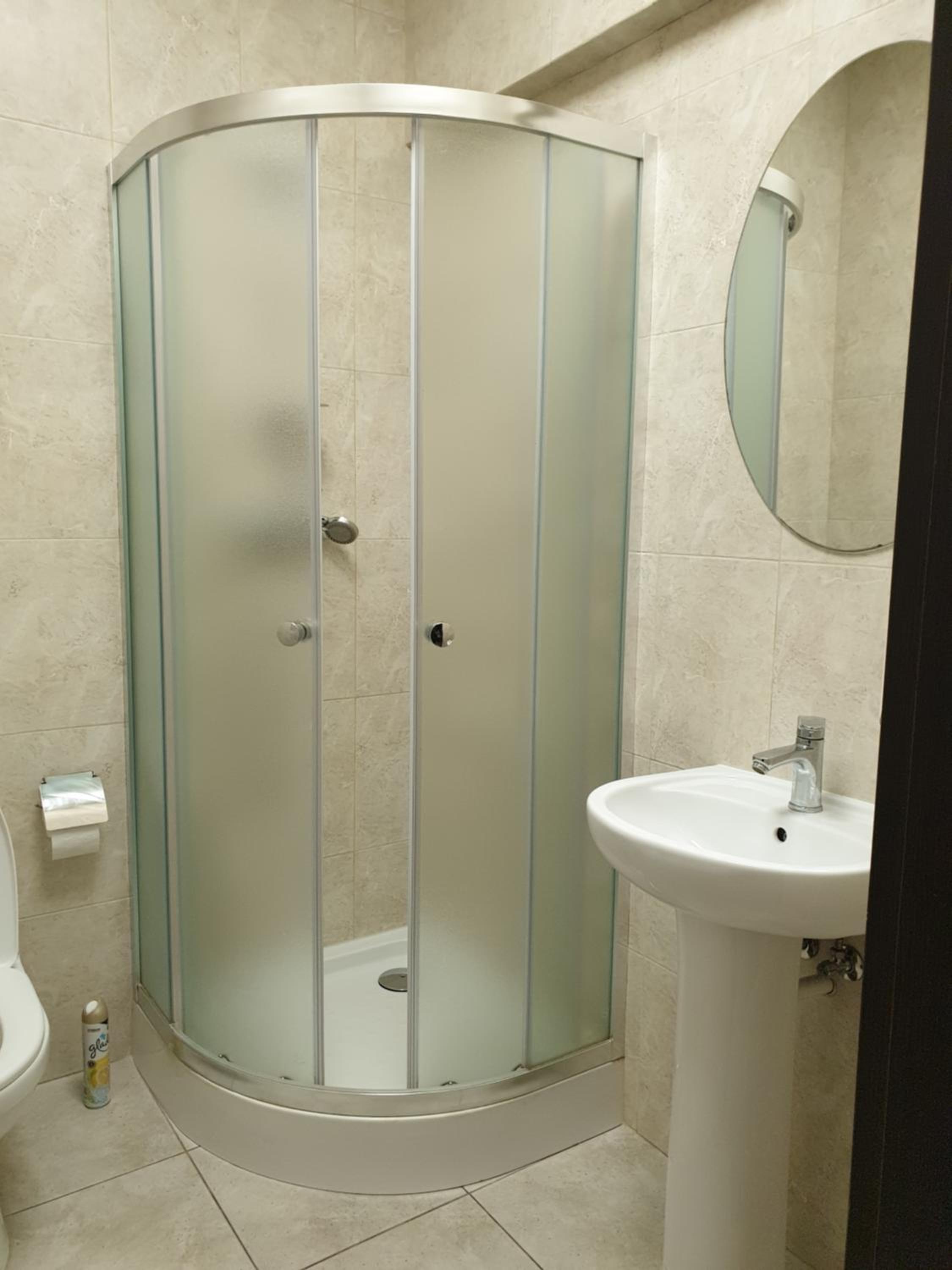 Стан душової кабіни та взагалі сантехніки, користуватись можна, але вона в критичному стані