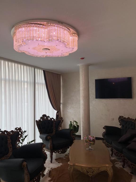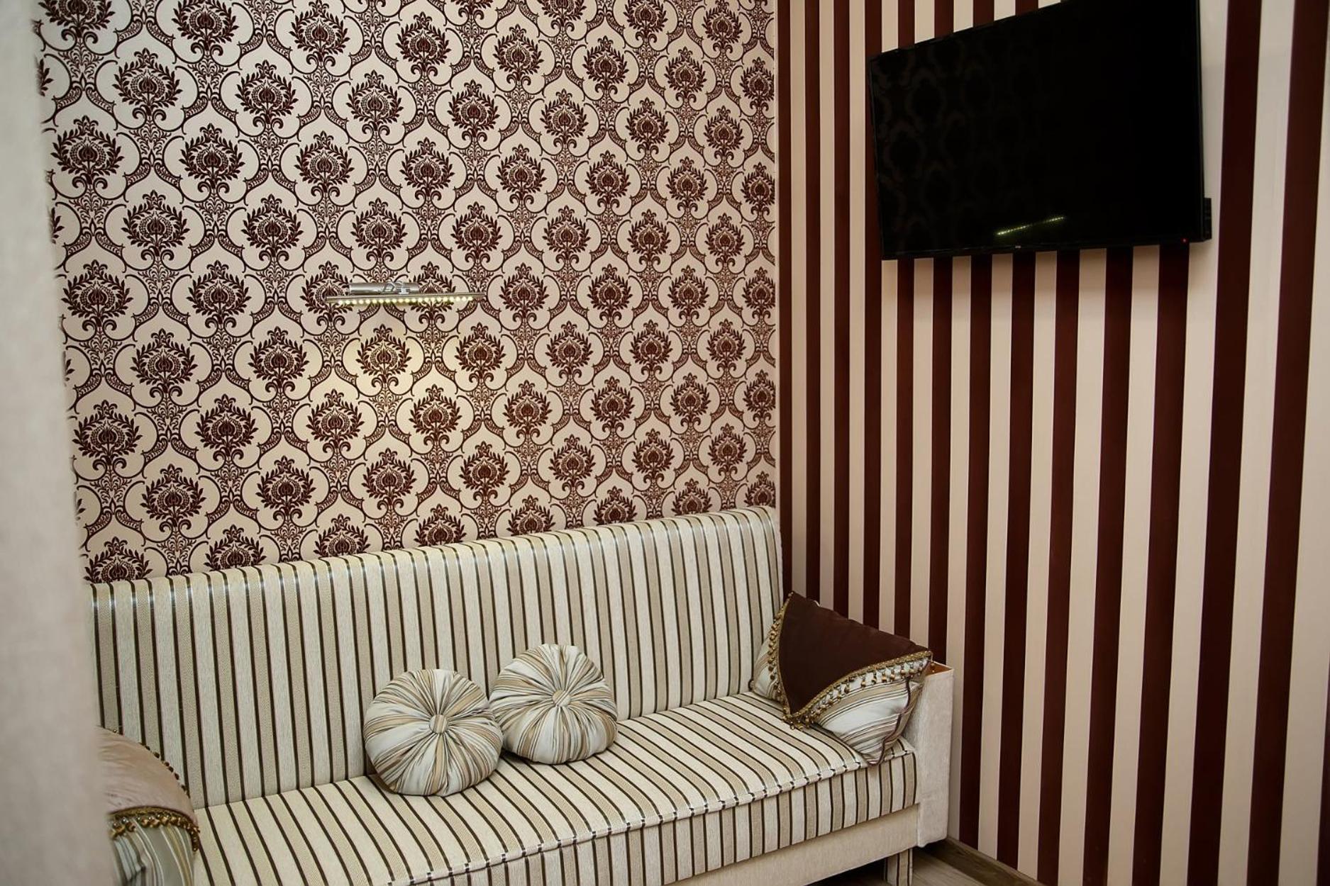 Hotel Перлина, located in Saevka, offers a luxurious stay with well-equipped rooms featuring modern amenities like flat-screen TVs, air conditioning, and private bathrooms. Some rooms even have a cozy seating area for relaxation.