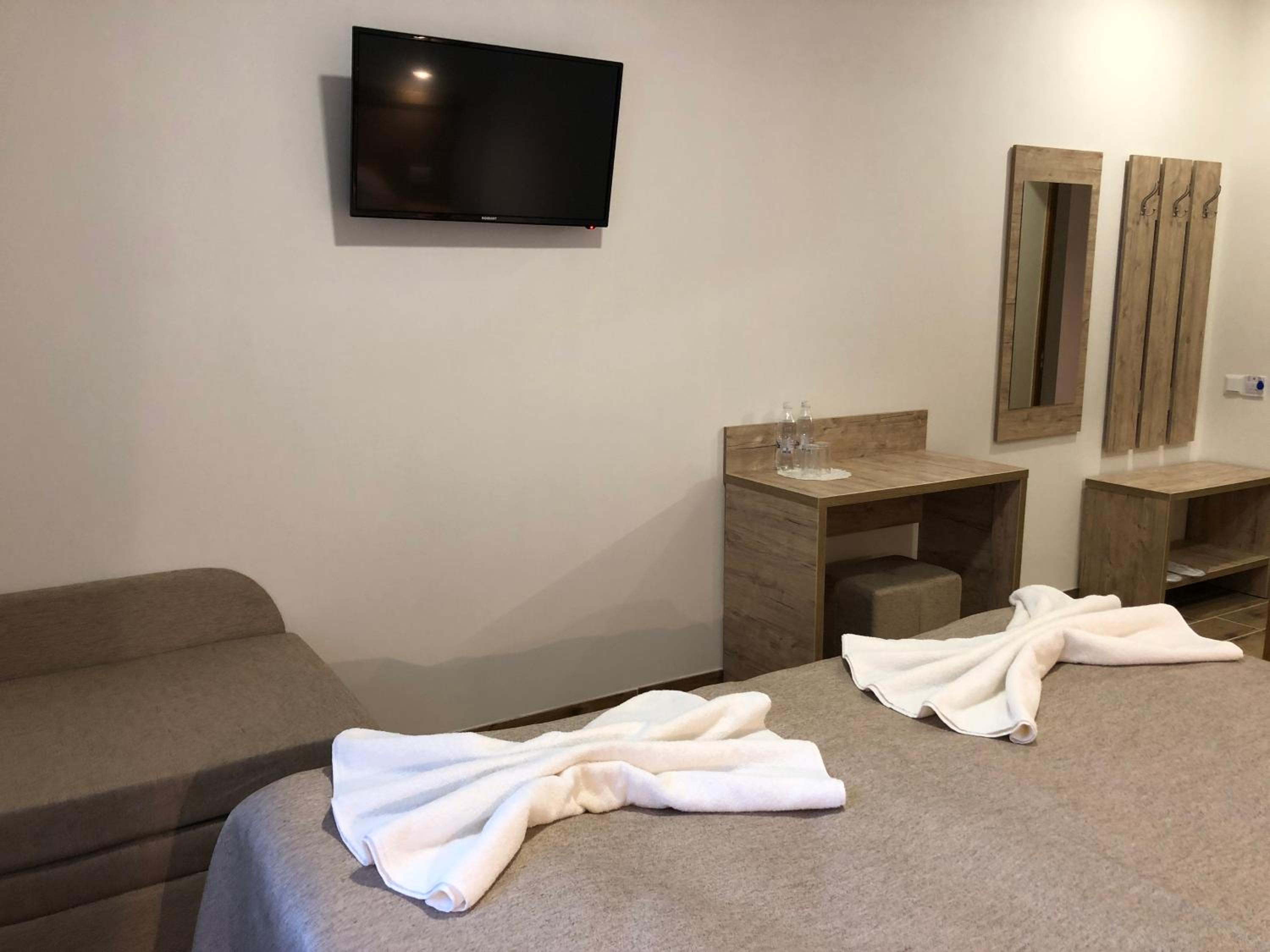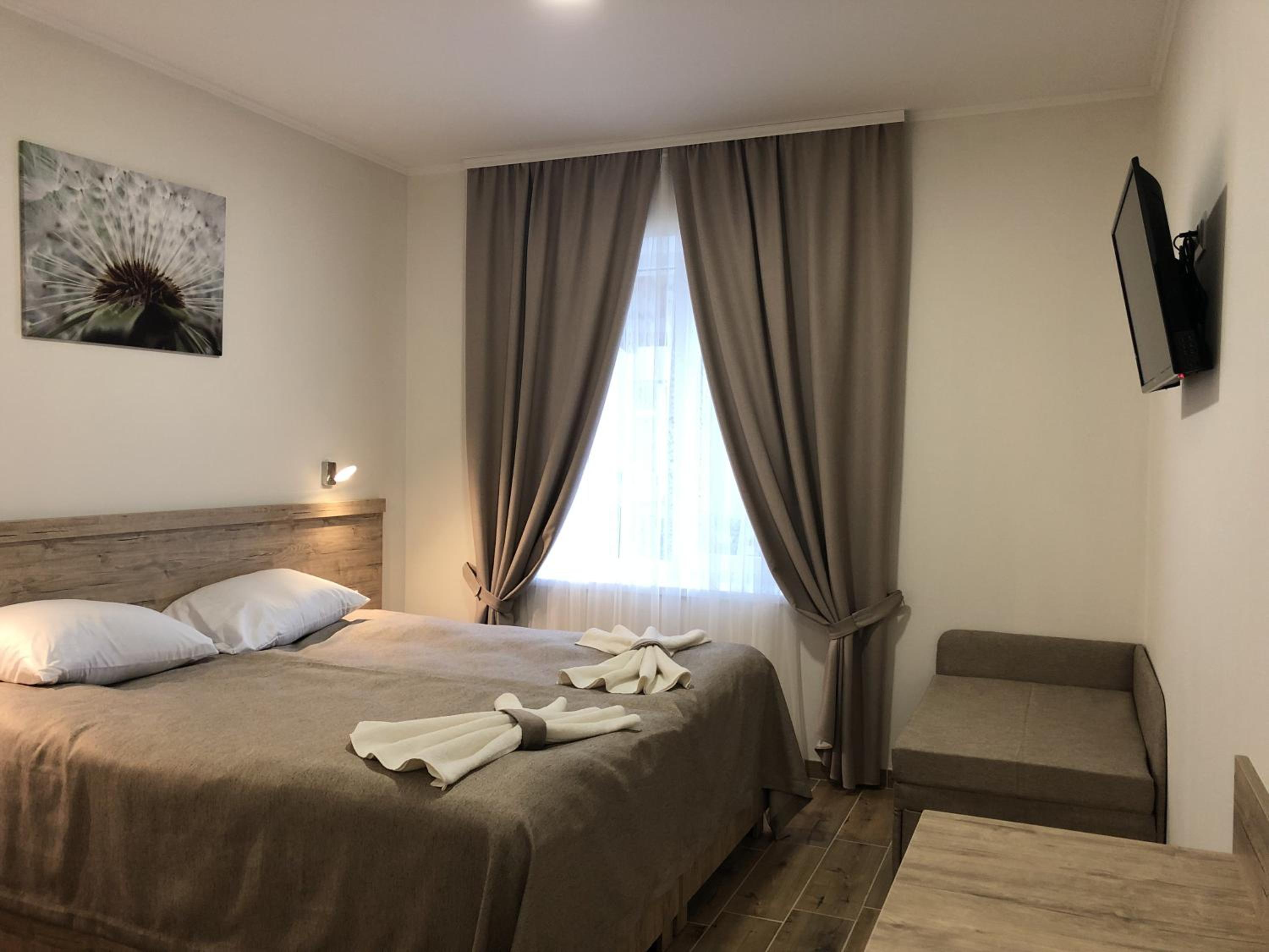 Hotel Bonus in Kolomiya offers a luxurious stay with modern amenities. Each room is equipped with a flat-screen TV, satellite channels, and a convenient kitchen. The cozy bed linen and towels provided ensure a comfortable stay for all guests.