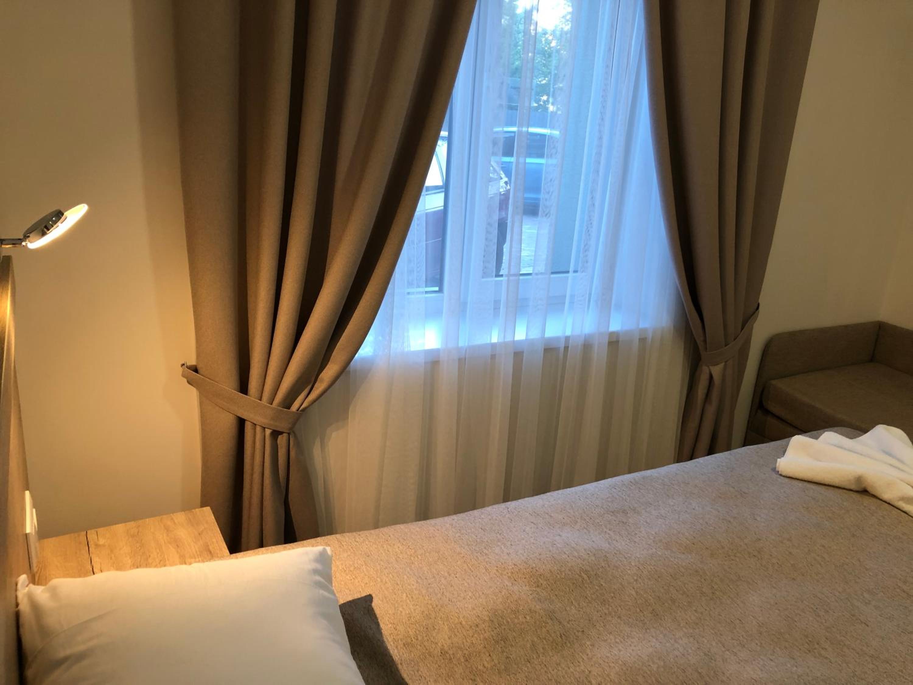 Готель невеликий. Знаходиться поруч з залізничним вокзалом, в 7-10 хв від нього.