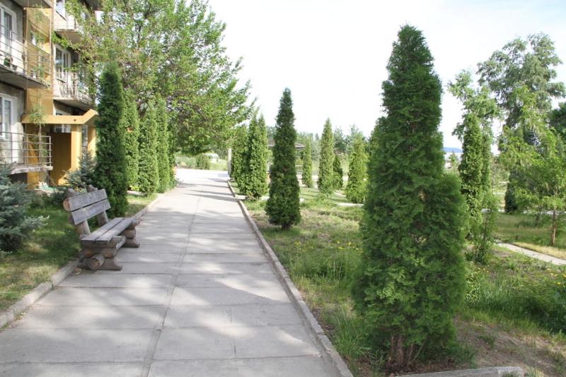 Месторасположение базы просто прекрасное: сосновый лес,огромная гладь Днепра, на которую вечером при закате солнца можно смотреть бесконечно. Персонал очень вежливый, готовый ответить на все вопросы. Номер очень домашний,неожиданное оформление-весь в стелажах с книгами. Отдельная тахта предполагает уединение с книгой. Проживали в центральном корпусе. Увидели очень интересное решение для больших компаний. На одном этаже все 3 номера выходят на общий холл с камином и громадным диванным уголком для отдыха и совместных посиделок.Здорово! Вечером можно развлечься боулингом. Что мы и сделали.