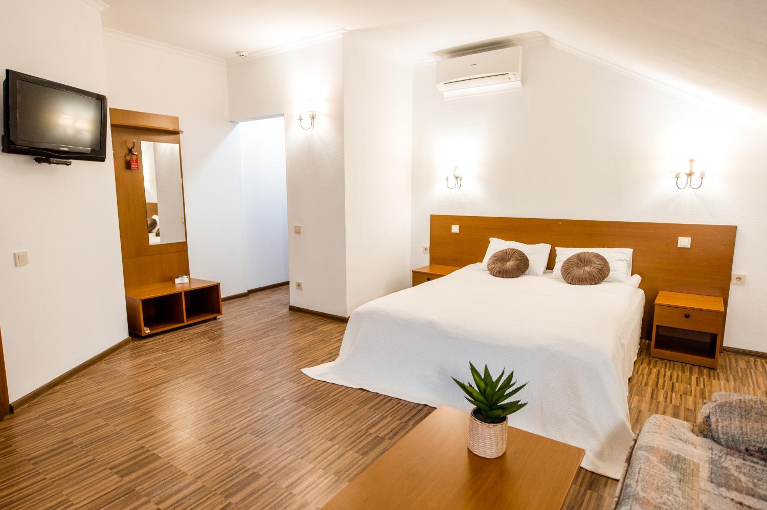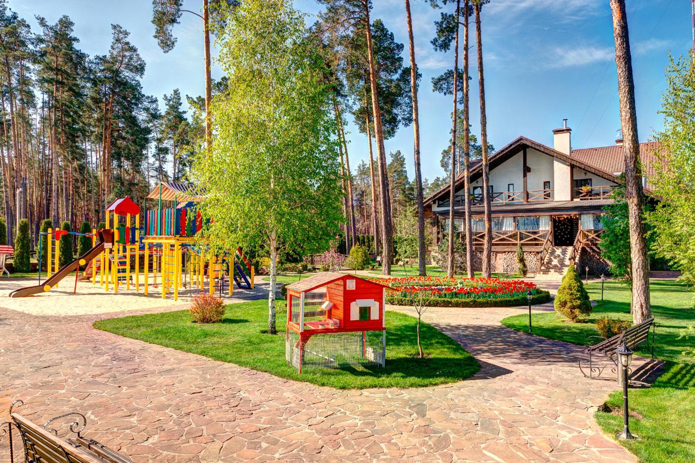 Veselyj Zajets, located in Pirnove, offers a luxurious stay with a seasonal outdoor pool, free parking, and a children's playground. The rooms are equipped with modern amenities such as a flat-screen TV, private bathroom, and cozy beddings.