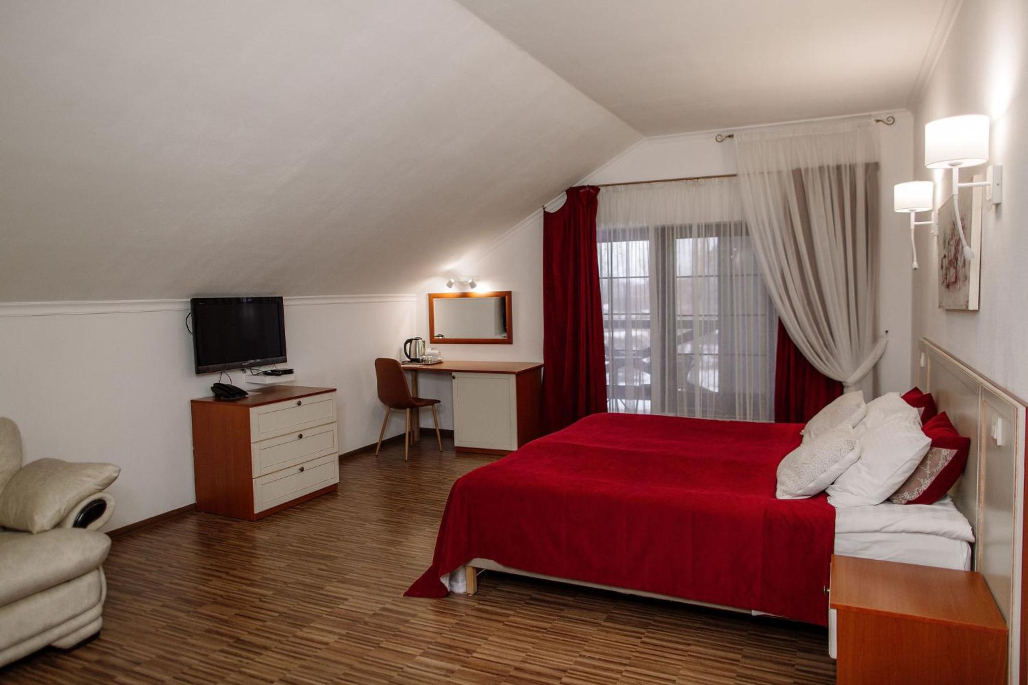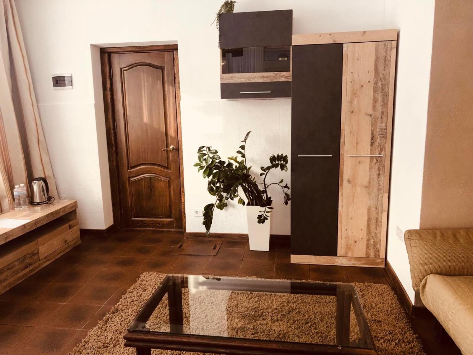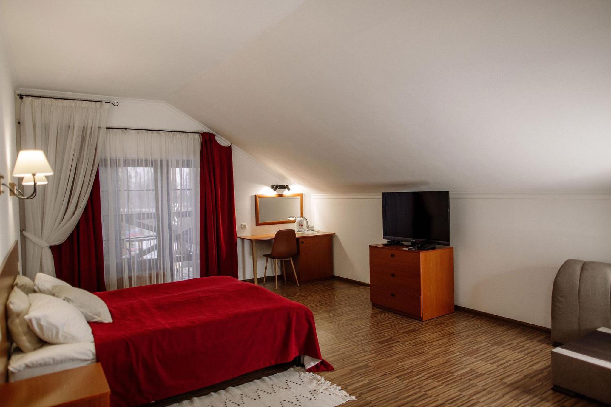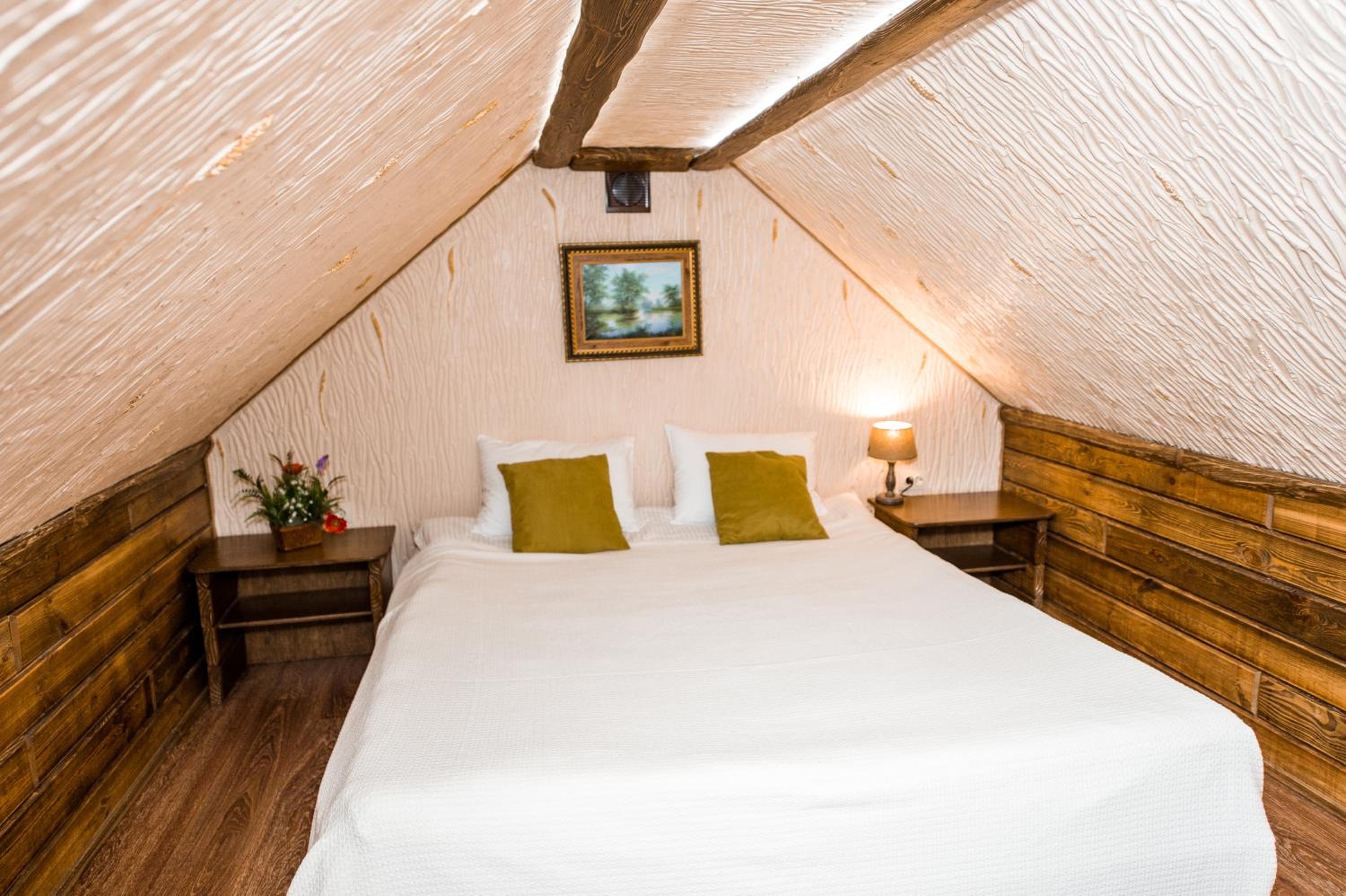 Дуже гарний отель. Все зручно, комфортно і продумано! Номер в дійсності, завдяки розташуванню, здається більший ніж на фото. На другому поверсі величезне ліжко є розетки є широка полка для особистих речей. Додатково брали мангал, дрова були сухі та колоті з розжигом та усім необхідним для приготування м'яса. Також на території є баня, доволі вмістка підійде навіть для великої компанії. Територія готелю прибрана, доглянута, всі дорожки чисті від снігу! Персонал комплексу привітній і йде на зустріч своїм клієнтам! Гарне місце, гарний відпочинок. Дуже рекомендую!!!