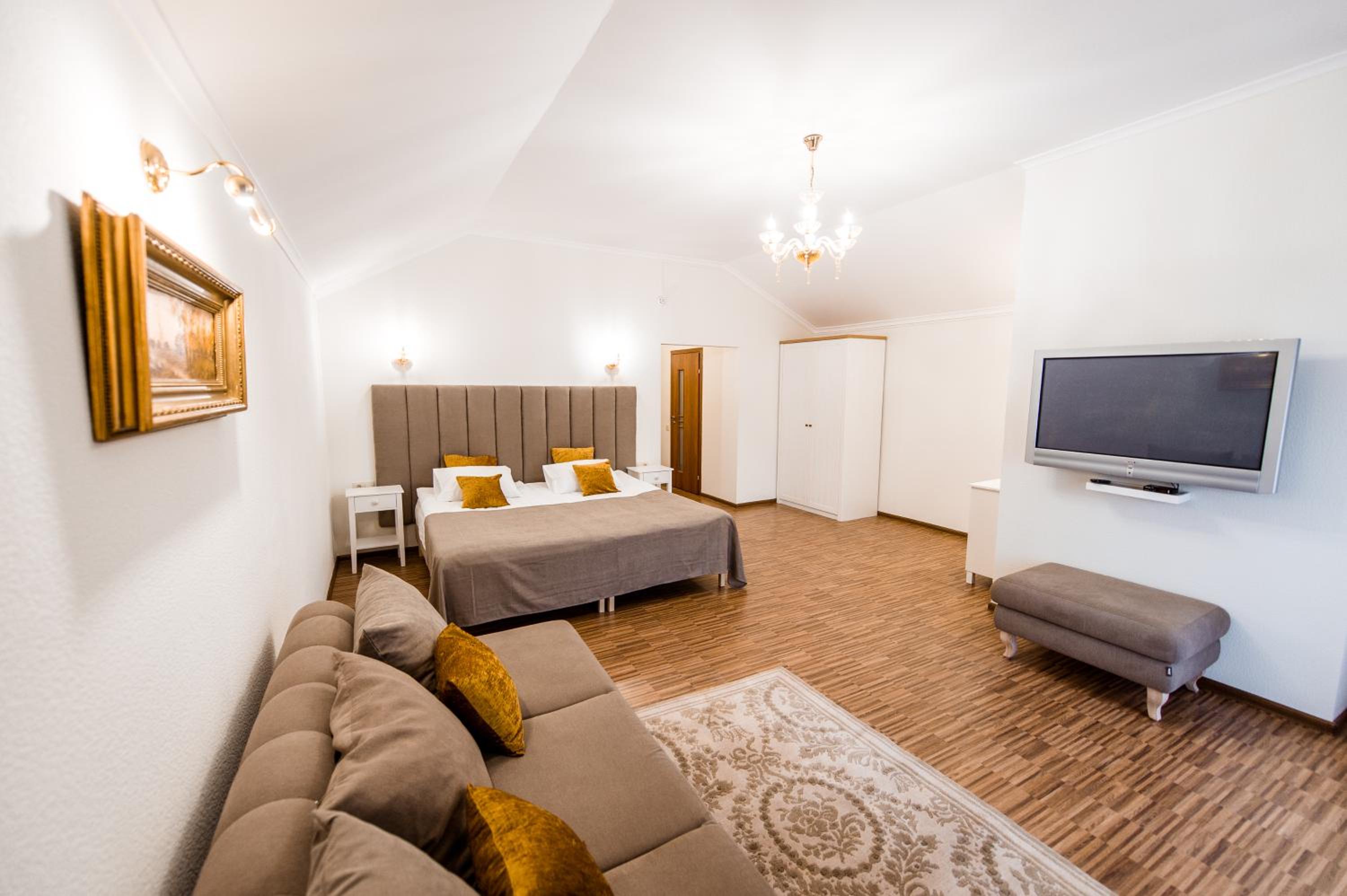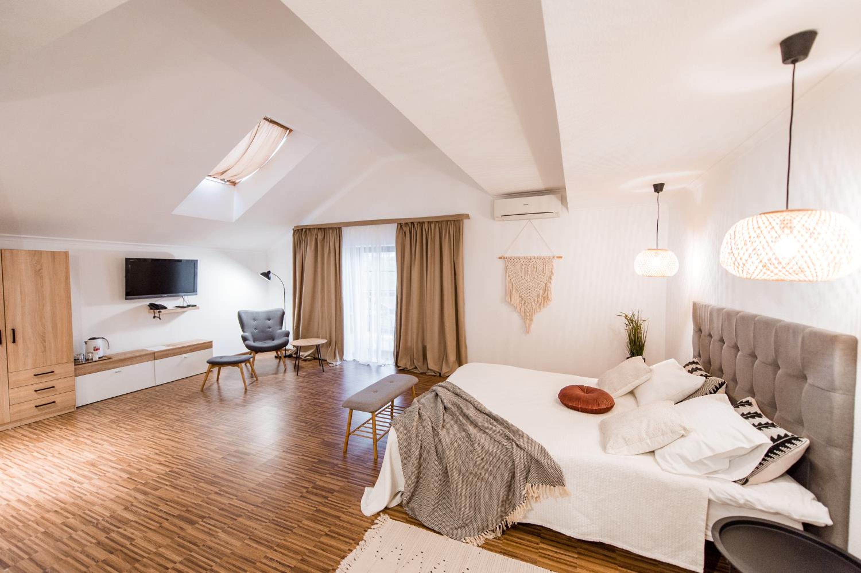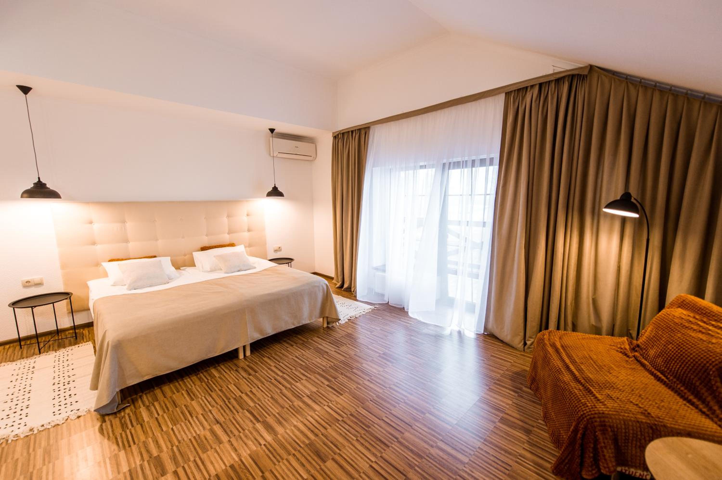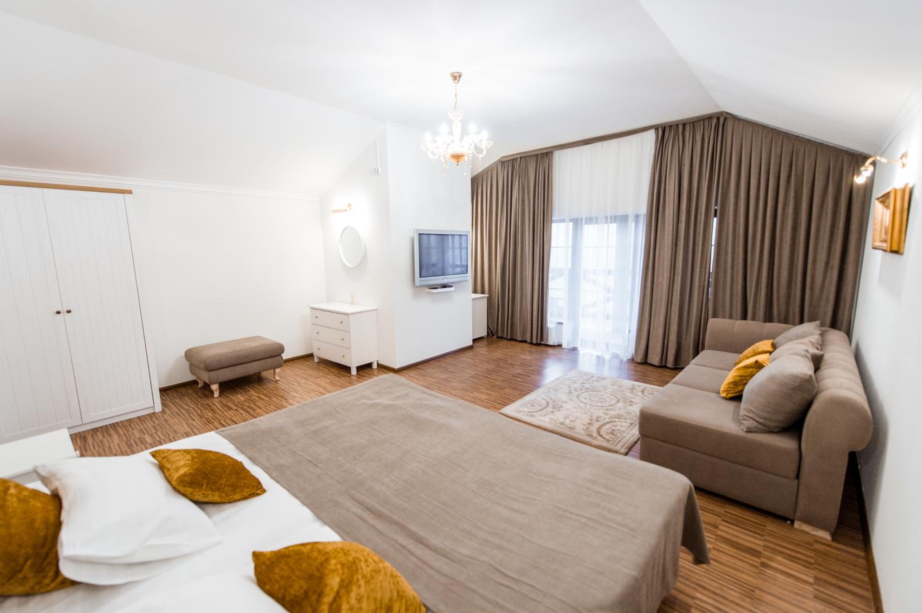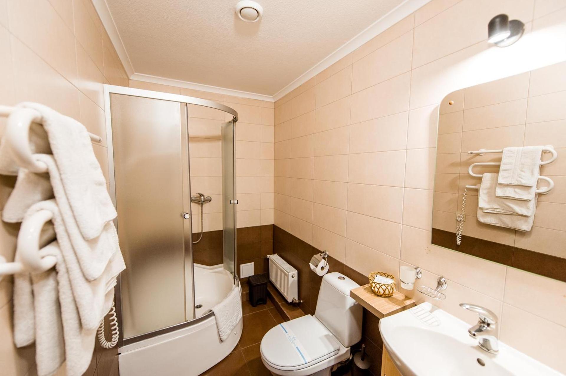 Дуже гарний отель. Все зручно, комфортно і продумано! Номер в дійсності, завдяки розташуванню, здається більший ніж на фото. На другому поверсі величезне ліжко є розетки є широка полка для особистих речей. Додатково брали мангал, дрова були сухі та колоті з розжигом та усім необхідним для приготування м'яса. Також на території є баня, доволі вмістка підійде навіть для великої компанії. Територія готелю прибрана, доглянута, всі дорожки чисті від снігу! Персонал комплексу привітній і йде на зустріч своїм клієнтам! Гарне місце, гарний відпочинок. Дуже рекомендую!!!